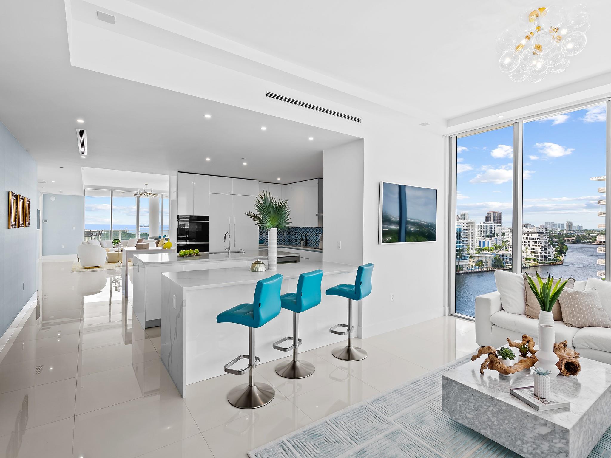 Welcome to AquaBlu, a 35-residence waterfront condo in Ft. Lauderdale, offering exclusivity and privacy you won't find in other buildings. Enjoy a 3-bed, 3.5-bath corner unit with ocean, park, direct Intracoastal, and downtown views. Two spacious terraces facing East/South and west with a summer kitchen and built-in BBQ grill. Built new in 2018, with the finest materials, top-of-the-line appliances, closets designed for convenience, and automated window shades. With over 3,258 square feet of living space, including a den area, oversized pantry room, and laundry room with sink –you won't want to leave this oasis! But if you do, you have two dedicated spaces beside the elevator. Short proximity to Galleria Mall, Las Olas, and beaches. Community dock available for touch-and-go pick up.