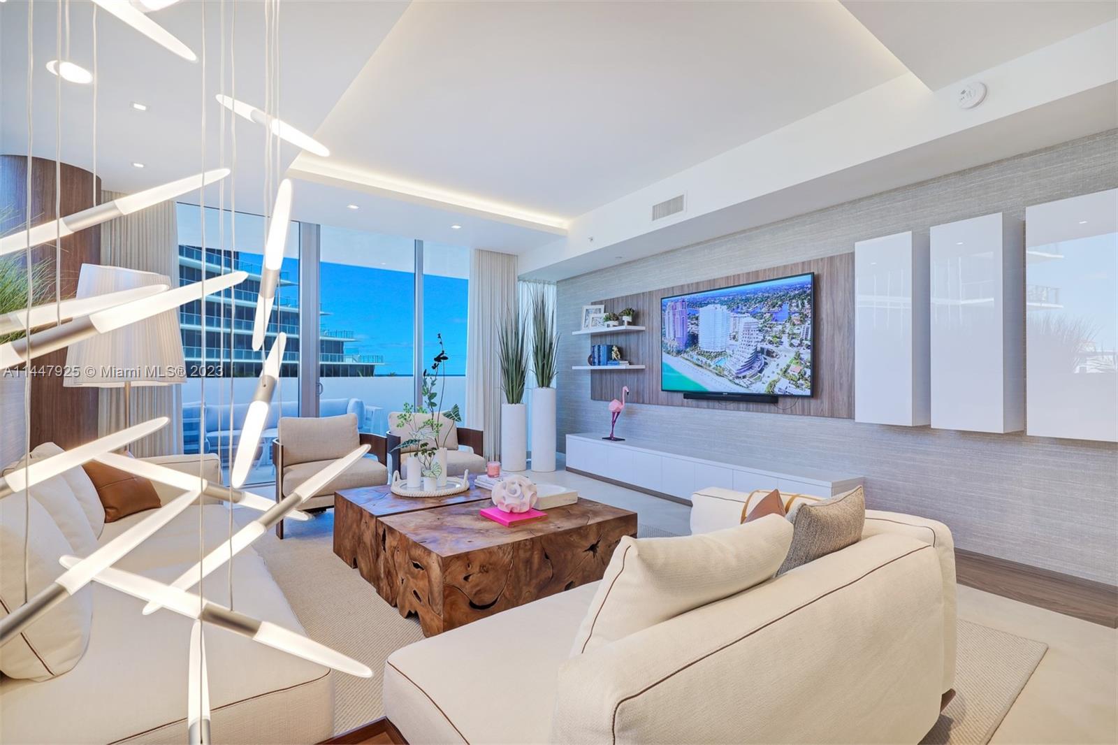 This is it! An incredible opportunity to own a fully furnished residence, designed by Interiors by Steven G, on the sand of Ft Lauderdale Beach at Auberge Beach Residences! This coastal modern masterpiece is located on the 3rd floor corner of the South Tower w/ 180 degress of floor to ceiling glass with an east and west balcony that overlook beautiful views of the resort like property, ocean and city. Complete privacy on the balcony and an incredible interior with amazing entertaining spaces. Spectacular custom porcelain flooring thoughout complimented with custom millwork, wallpaper, lighting, full motorized blinds and a chefs kitchen perfect for large gatherings! Enjoy fine dining at DUNE and the World Class Spa. You will not find another opportunity at Auberge Beach for this price!