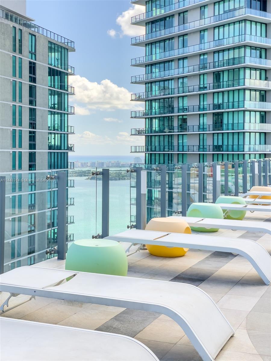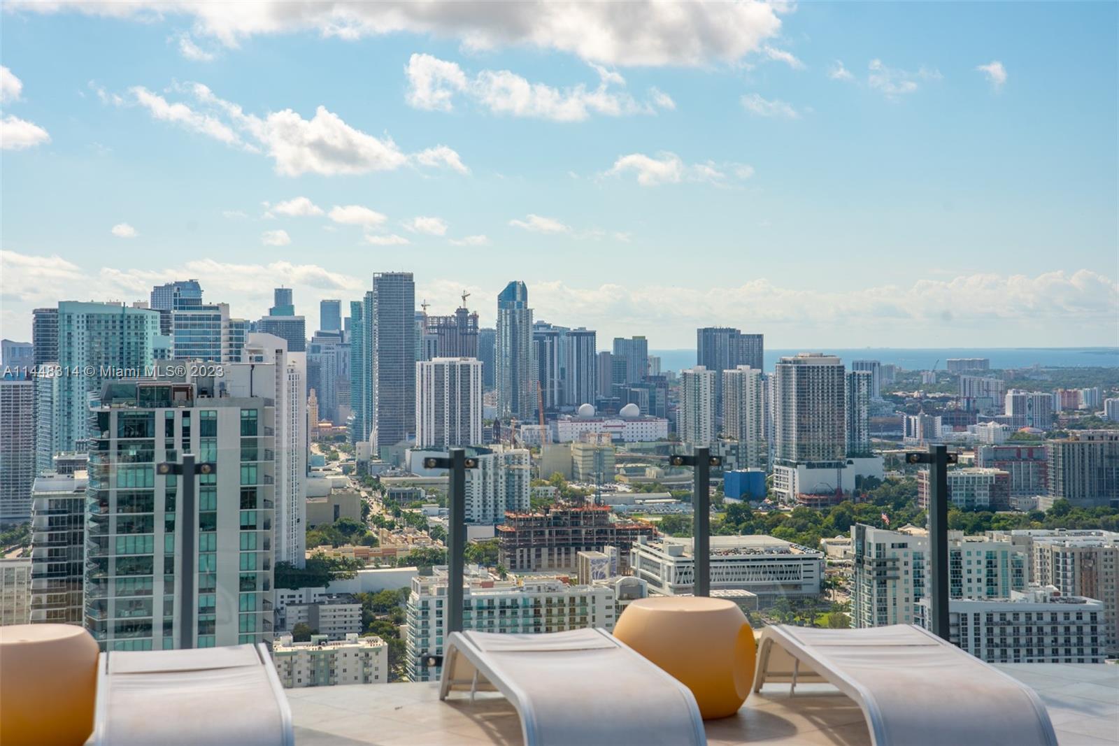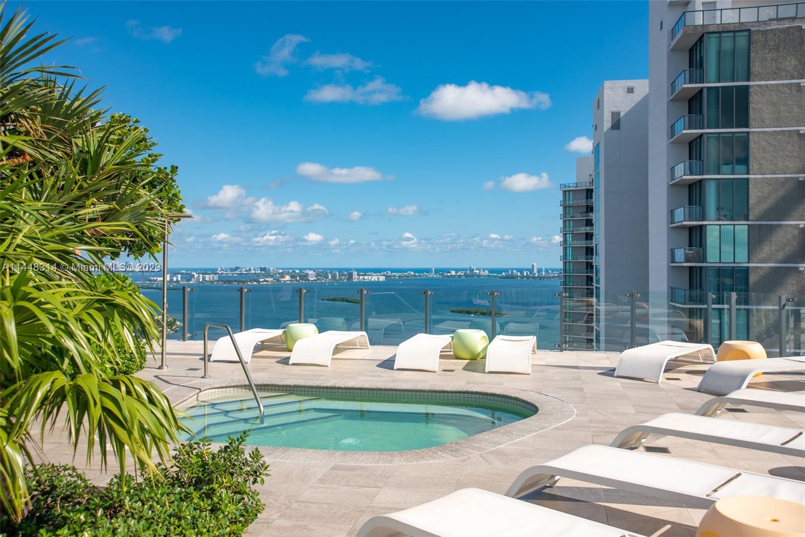 Tastefully designed & furnished 2 bed/2 bath unit on the 20th floor of Paraiso Bayviews in Edgewater with city & water view! Upgrades include built-in closets, wallpaper, porcelain tile floors, and electric blackouts in bedrooms. Enjoy luxurious amenities including 2 pools (5th floor & a rooftop pool), hot tub, spa, bbqs, tennis and paddle court, media room, kids room, game room and state-of-the-art gym. Walk to Paraiso's bayfront park with ladders down to the bay where you can go kayaking & paddle boarding, or savor delicious meal & drinks at the waterfront restaurant, Amara at Paraiso. Fantastic location only 5-10 minutes from Wynwood & the Design District and 15-20 Minutes to Miami Beach & the airport. One parking spot on the 3rd floor.