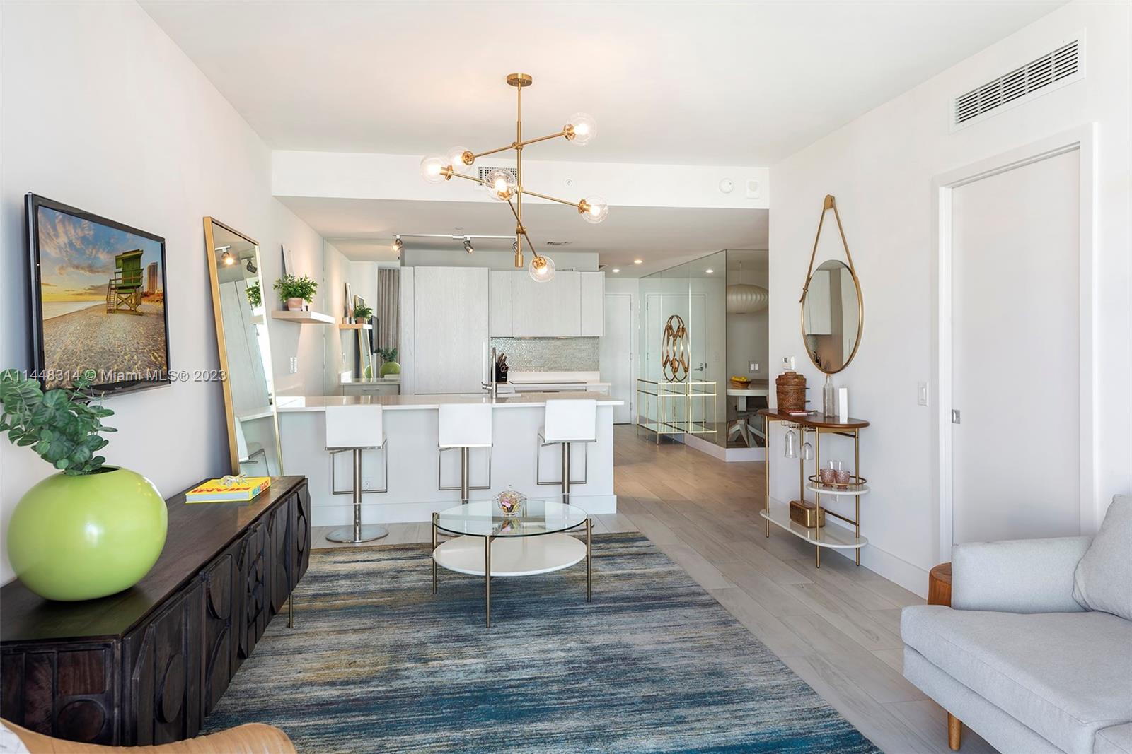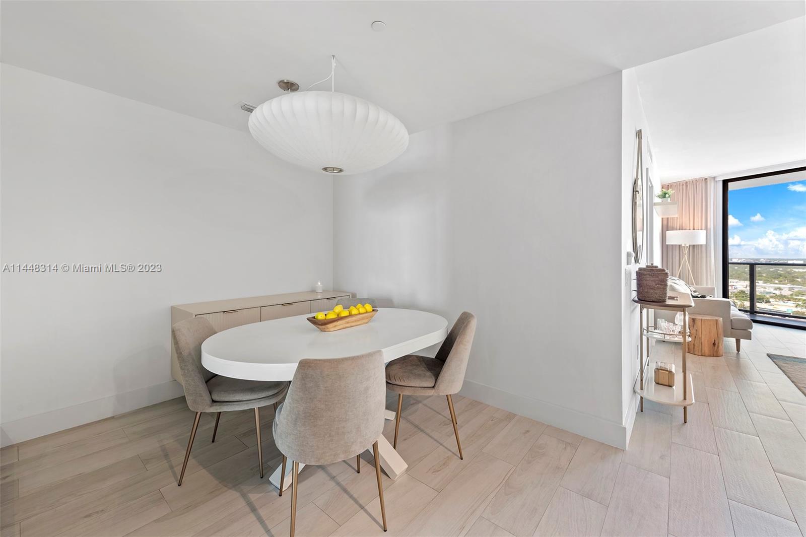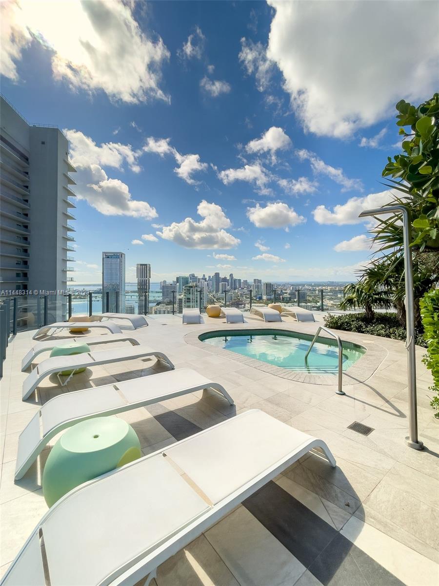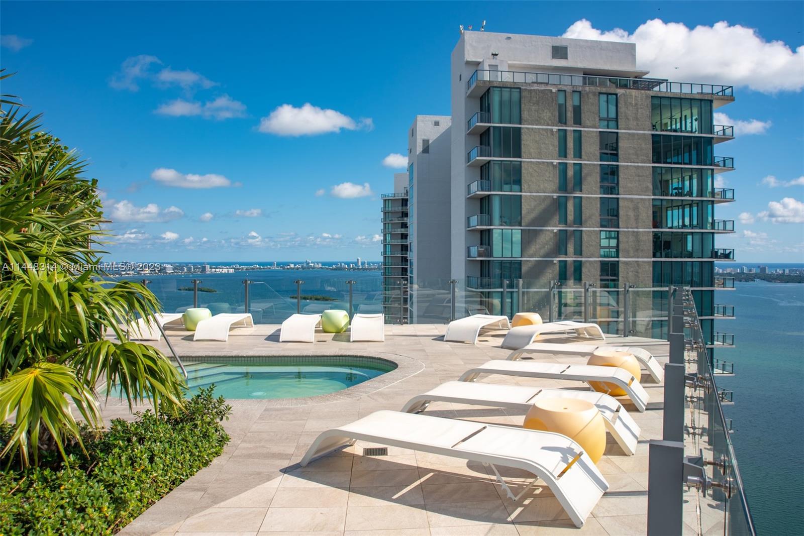 Tastefully designed & furnished 2 bed/2 bath unit on the 20th floor of Paraiso Bayviews in Edgewater with city & water view! Upgrades include built-in closets, wallpaper, porcelain tile floors, and electric blackouts in bedrooms. Enjoy luxurious amenities including 2 pools (5th floor & a rooftop pool), hot tub, spa, bbqs, tennis and paddle court, media room, kids room, game room and state-of-the-art gym. Walk to Paraiso's bayfront park with ladders down to the bay where you can go kayaking & paddle boarding, or savor delicious meal & drinks at the waterfront restaurant, Amara at Paraiso. Fantastic location only 5-10 minutes from Wynwood & the Design District and 15-20 Minutes to Miami Beach & the airport. One parking spot on the 3rd floor.