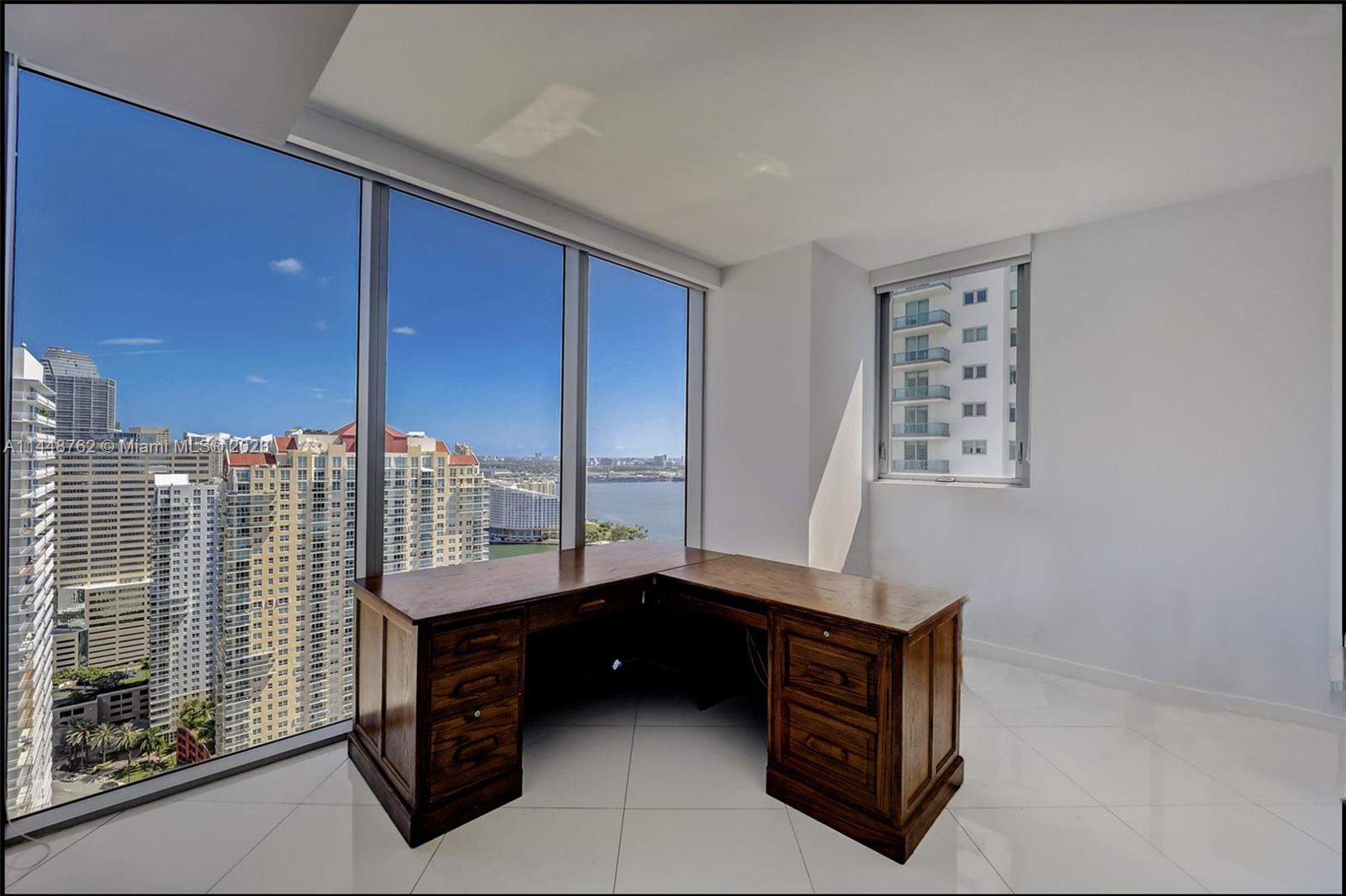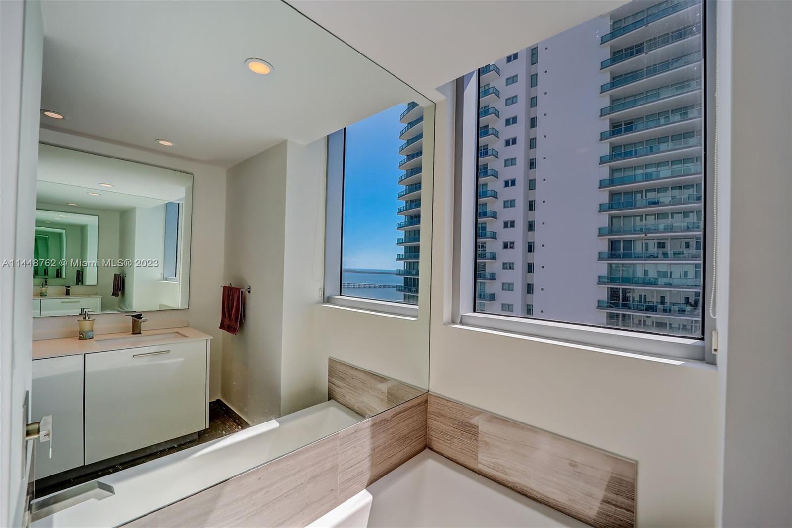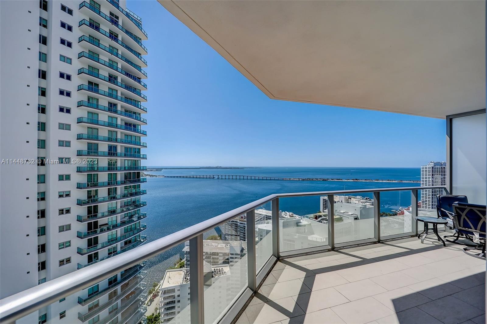 In Brickell, fantastic corner unit, 3 bedroom 2.5 half bath with Intercostal views. Luxury building with 5* amenities. The Unit comes fully built with white ceramic tile floors, custom closets, shades, painted glass kitchen backsplash, 9-foot ceilings, and a flow-through large terrace facing the bay to enjoy sunrises. Brickell House is a 46-story condo building that offers striking views of Biscayne Bay and Miami's skyline. State-of-the-art amenities: modern gym, spa, cabana pool, theater room, kids room, roof-top pool with unobstructed bay & ocean views, 24 HR valet & concierge. Prime location, proximity to Bars, Restaurants, and Shops. Short-term rentals of 30 days could also make this an appealing investment.