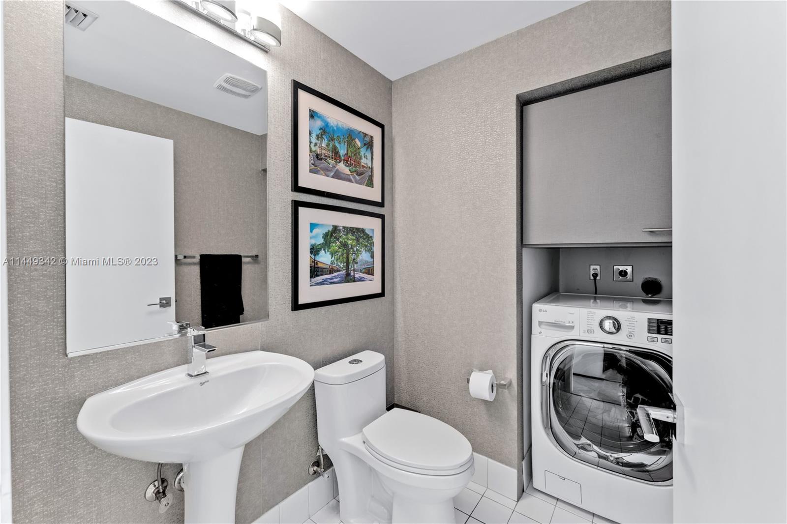 Experience modern luxury in this upgraded 1-bed, 1.5-bath condo with a den and Bay views. 2023 AC, upgraded bedroom flooring, blackout blinds, a spacious kitchen island, updated cabinets, new hardware, and a modern refrigerator. Elegant touches like wallpaper accents and updated lighting fixtures create a welcoming ambiance. Den adds versatility, and closet buildouts enhance storage. Prime location within Miami Worldcenter, where the city's finest dining, shopping, and entertainment are at your fingertips. Enjoy the vibrant lifestyle of this world-class destination, right in your backyard. Whether you're looking for a comfortable home or an investment property, this condo has it all. Washer/dryer in unit, 1 parking spot, and storage cage. First contract cancelled due to buyers financing