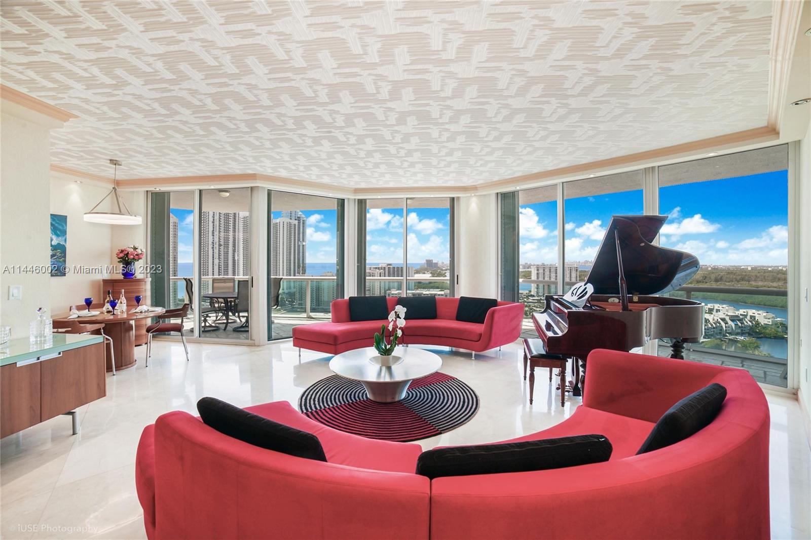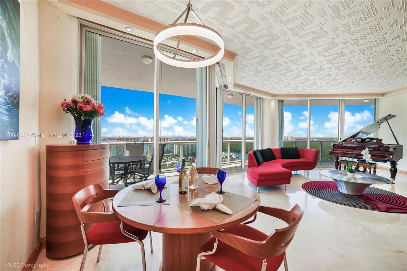 Don’t miss this opportunity to call this Oceania Island condo home. Higher ceilings and extended balcony make this one extra special. Great layout with 2 bedrooms plus a den and 2 bathrooms with a fabulous flow for everyday living and entertaining. From the moment you walk in, you notice the expansive views of Atlantic Ocean, intracoastal waterway, Oleta River State Park and the downtown Miami Skyline. This home features an architecturally unique ceiling treatment with beautiful wood moulding and strategically placed spot lighting along with timeless marble flooring. Resort-like amenities including private beach club, health club & spa, 2 oceanfront dining choices, yoga and fitness classes, tennis courts, marina and more! Vacant and easy to show
