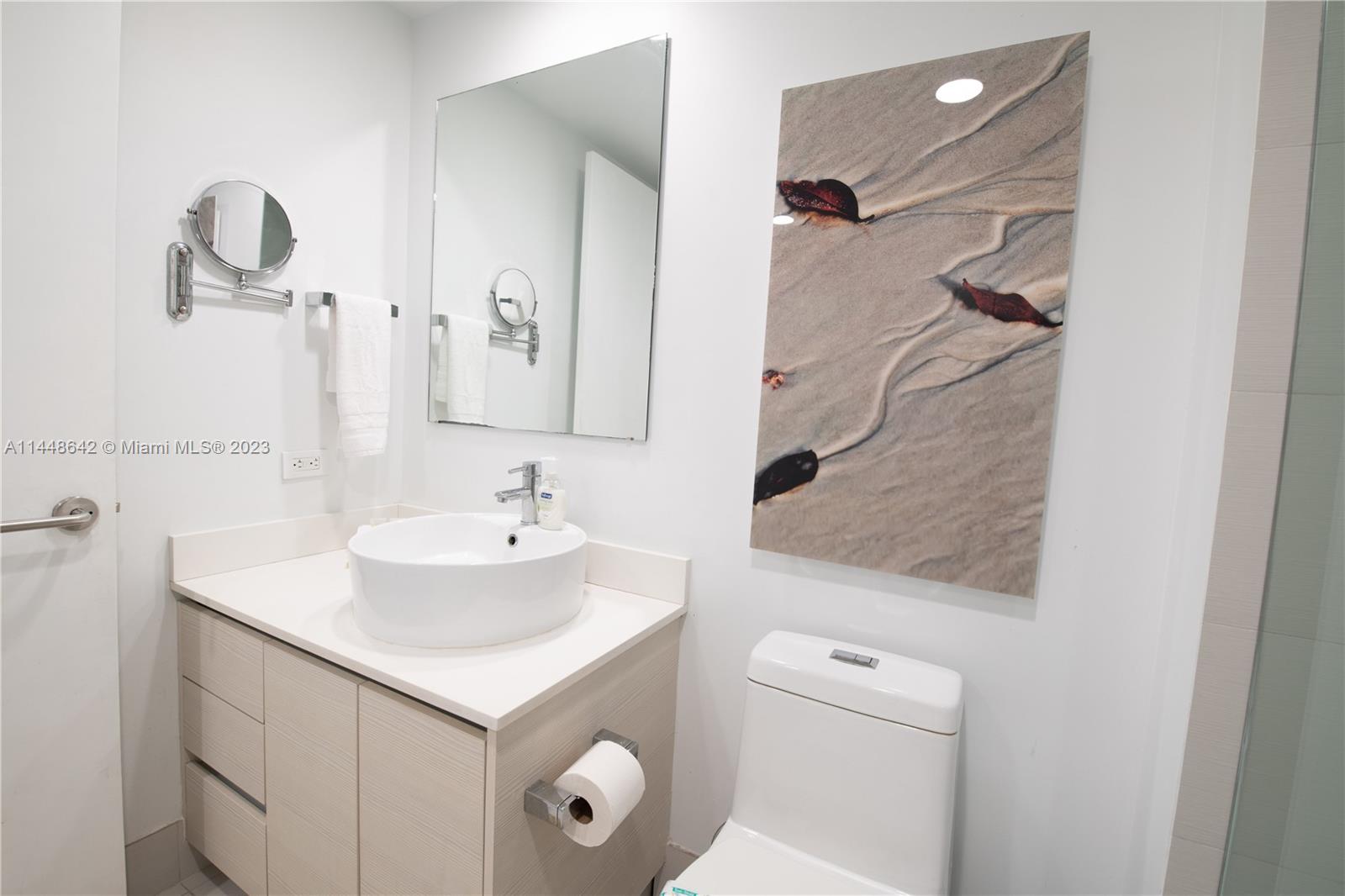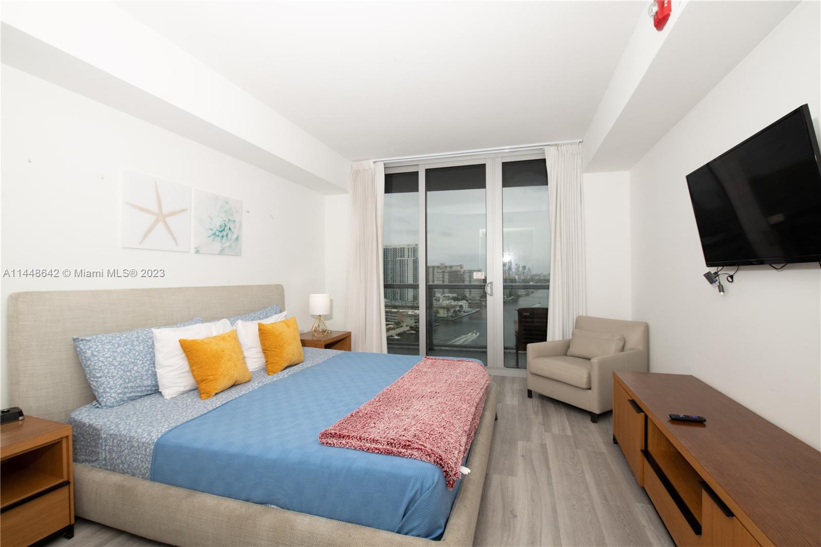 EXCEPTIONAL INVESTMENT POTENTIAL! Flexibility for Daily, Weekly, or Monthly SHORT-TERM RENTALS. This turnkey 2 bed / 2 bath unit is situated in a high-rise featuring on-site Restaurant, Dual Swimming Pools, Round-the-Clock Gym. Option to divide into two separate living spaces for diverse rental possibilities. The one-bed, one-bath suite comes with a well-appointed kitchen featuring stainless steel gadgets, in-unit laundry, a master bedroom with a luxurious king-size bed, and a renovated bathroom complete with a modern shower. The studio layout offers two queen beds, a dedicated bathroom, and ample closet space. Enjoy breathtaking vistas of both the Intracoastal Waterway and the Ocean, by day or night.