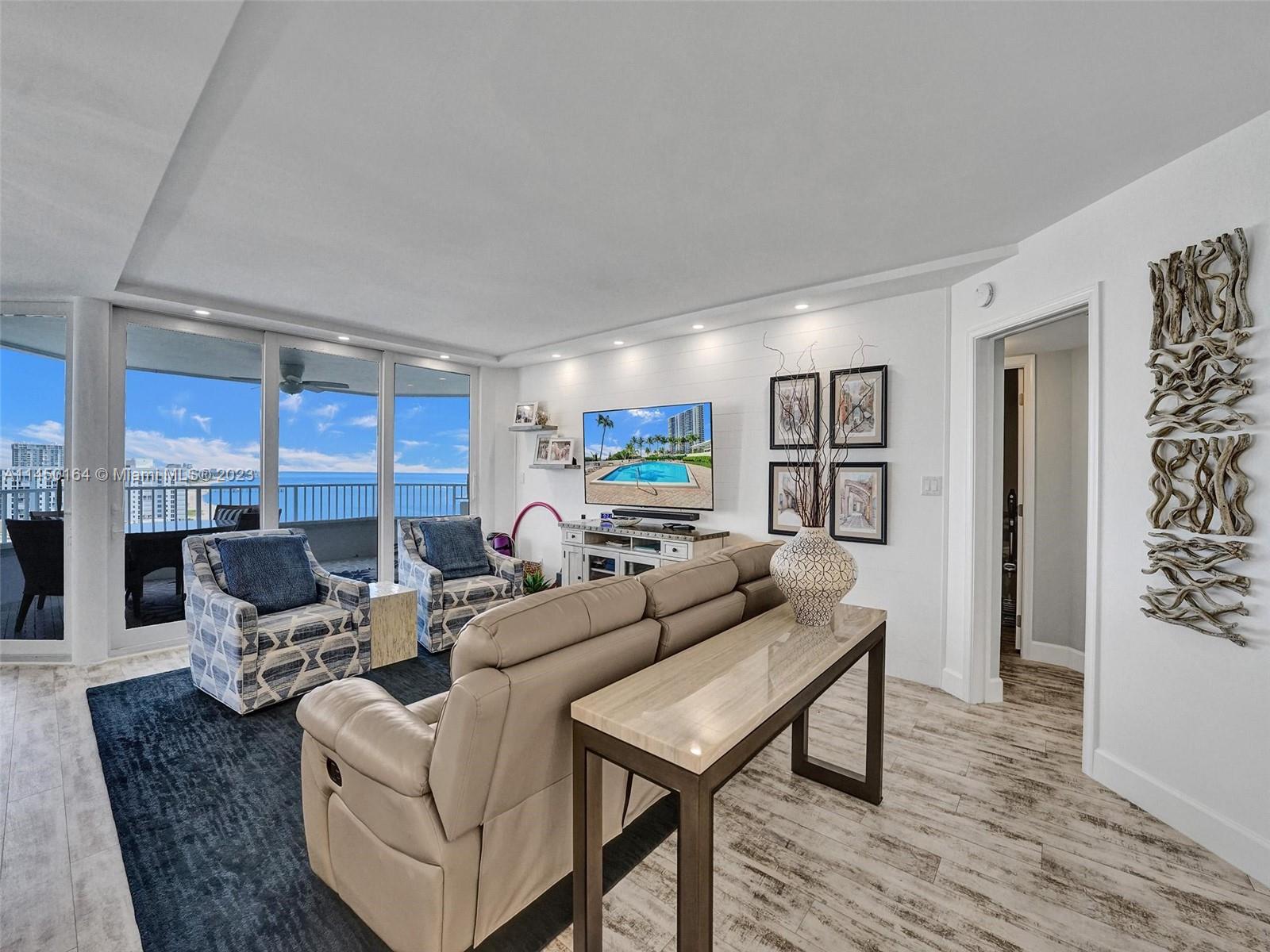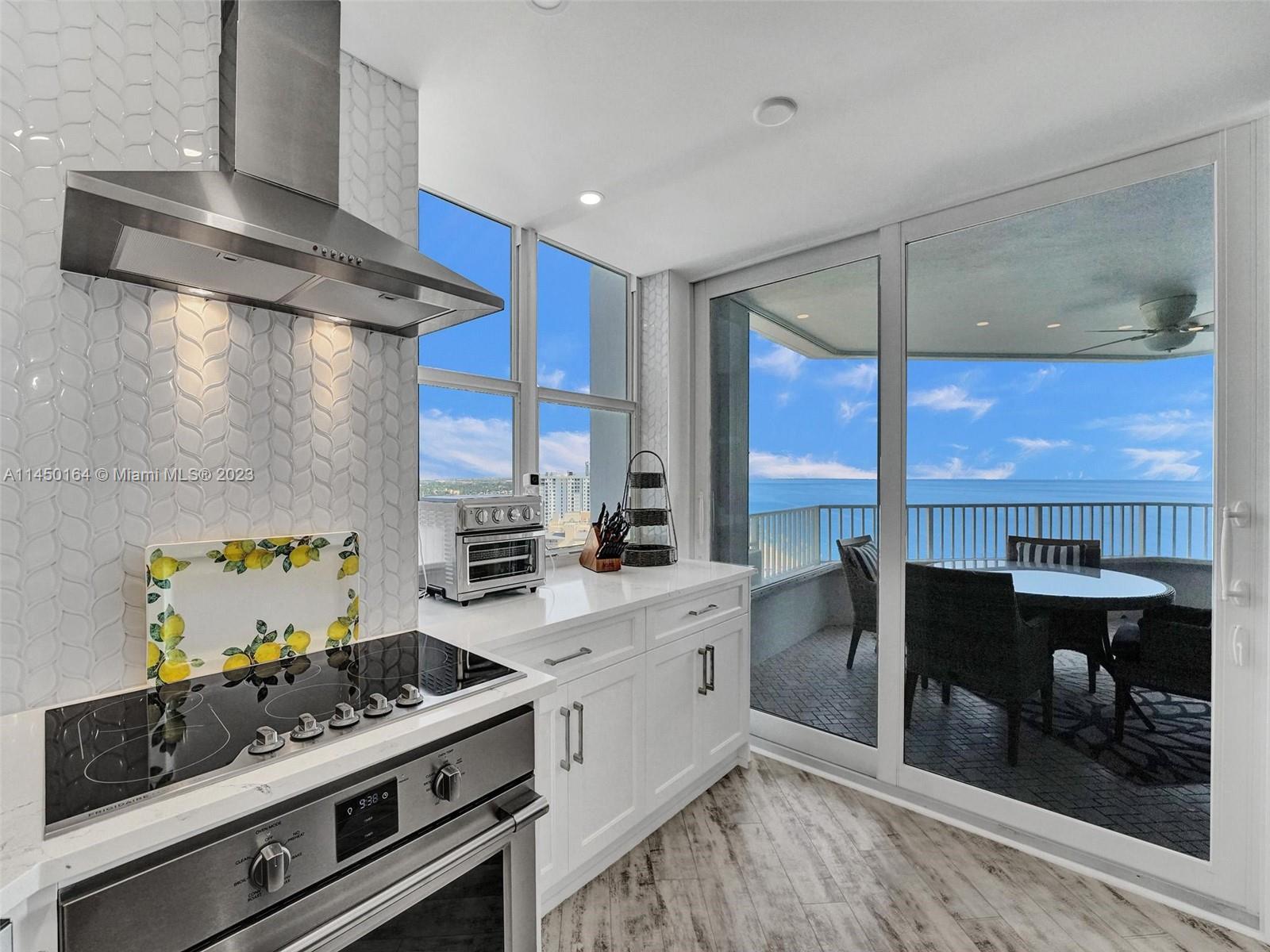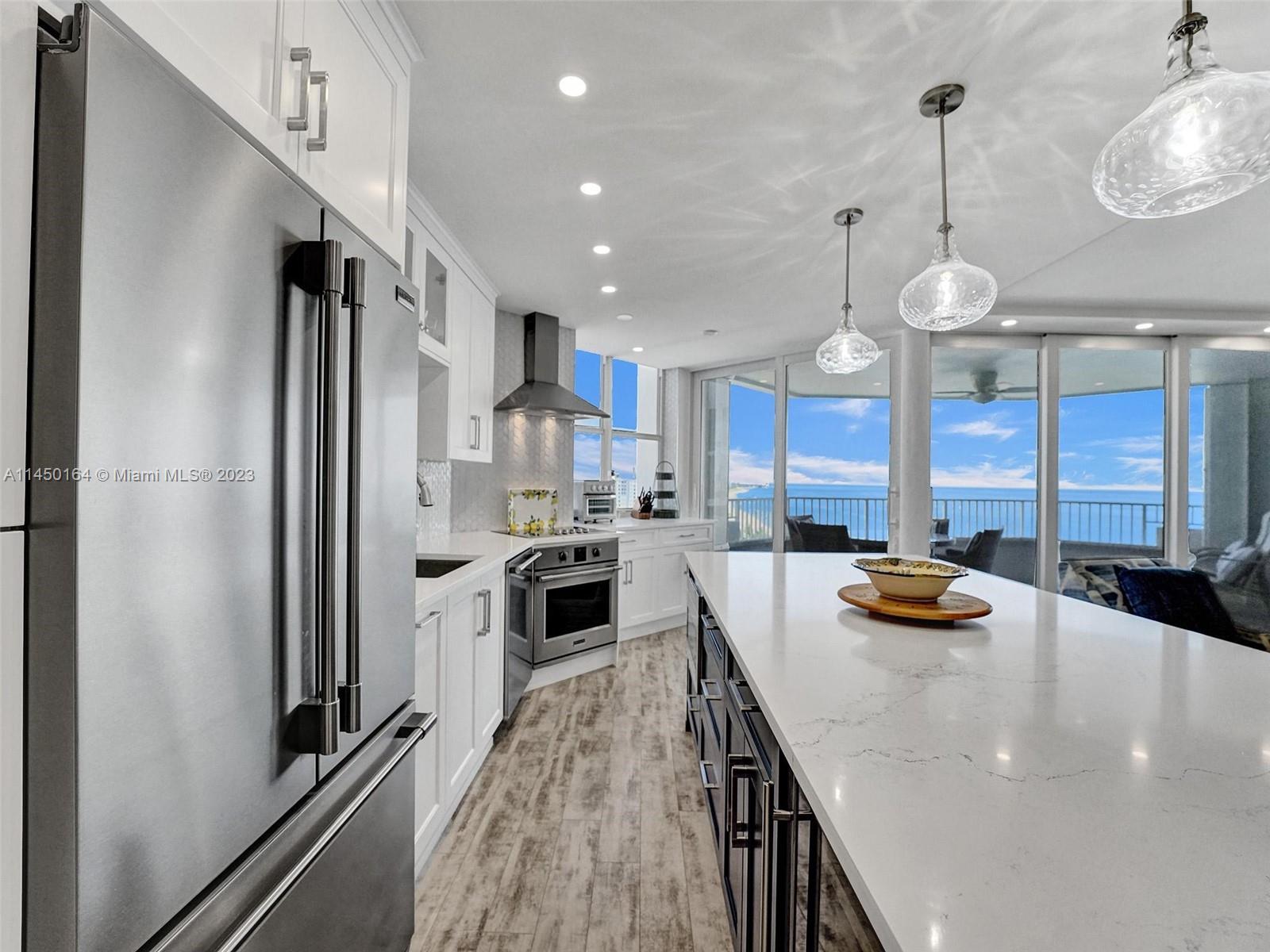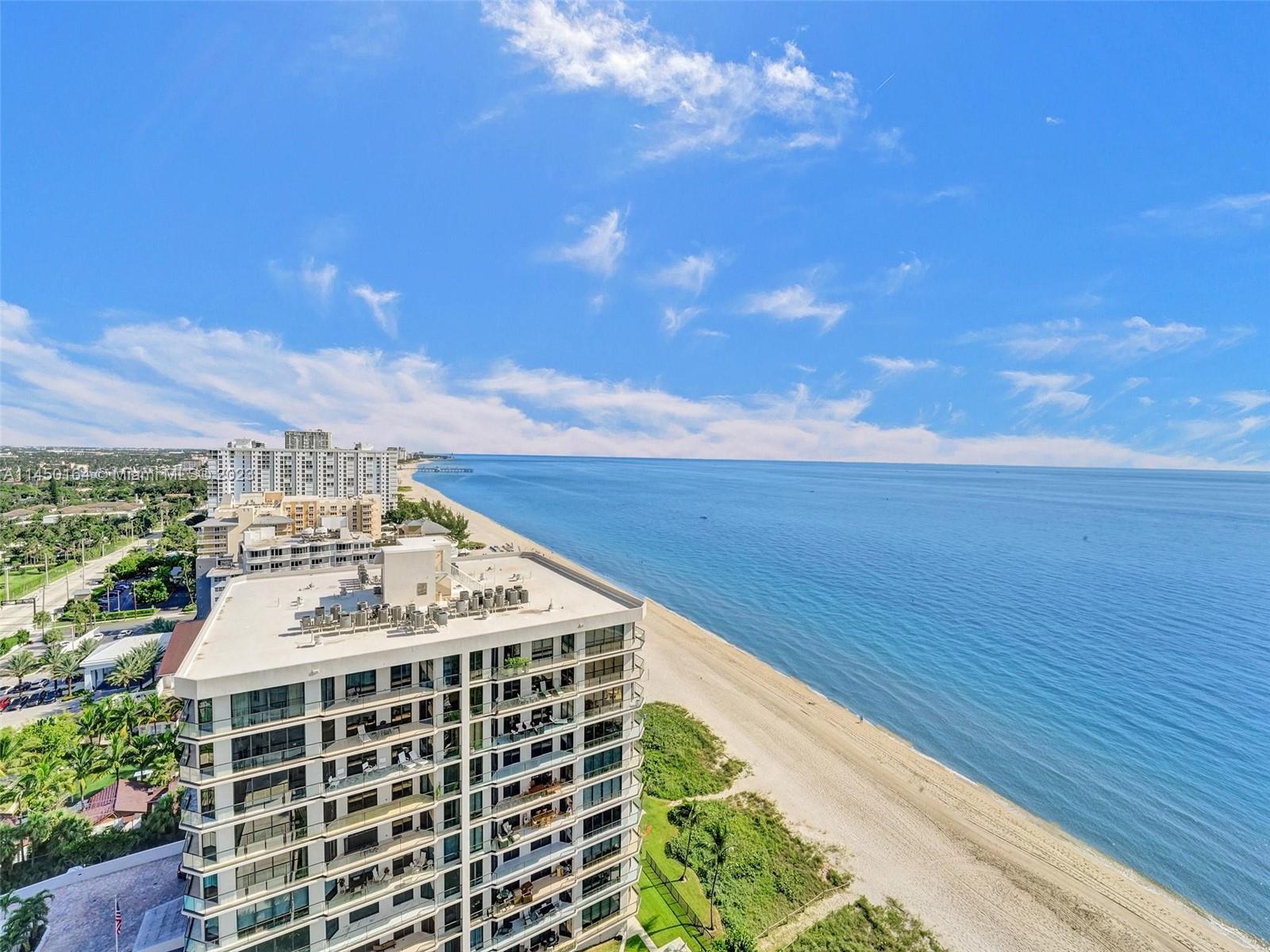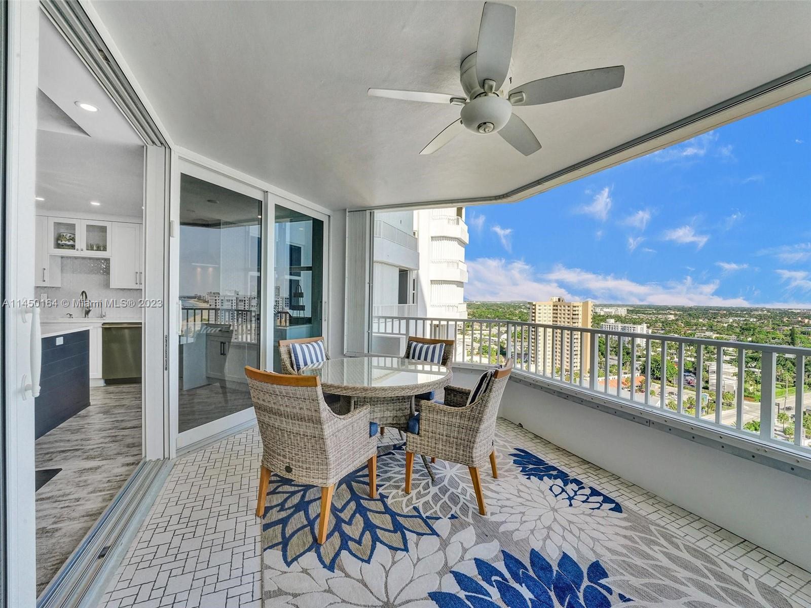 STUNNING VIEW OF THE OCEAN, INTRACOASTAL AND SKYLINE FROM UNUSUALLY LARGE BALCONY 23' x 12'. ACCESSABLE FROM THE LIVING AREA, KITCHEN AND PRIMARY BEDROOM. IMAGINE ENJOYING YOUR COFFEE EVERY MORNING WITH THIS BEAUTIFUL VIEW OF THE BLUE OCEAN, WHITE SANDY BEACH, MILES OF COASTLINE, POMPANO BEACH PIER AND THE LIGHTHOUSE! TOTALLY REMODELED, EVERYTHING NEW. FURNISHED! SPACIOUS OPEN FLOOR PLAN. KITCHEN OFFERS LARGE ISLAND, CUSTOM CABINETS, QUARTZ COUTERTOPS AND WINE COOLER. SPLIT BEDROOMS. BATHROOMS, CUSTOM CABINETS AND QUARTZ COUNTERTOPS. HURRICANE IMPACT DOORS AND WINDOWS. ELECTRIC BLINDS IN BEDROOMS, TURN KEY, 24/7 SECURITY, POOL, FITNESS CENTER, SAUNAS, LIBRARY, CONFERENCE ROOM, CARD ROOM, BOCCE BALL, BILLIARD ROOM, BBQ GRILLS AND BEACH CHAIRS. GREAT LOCATION.