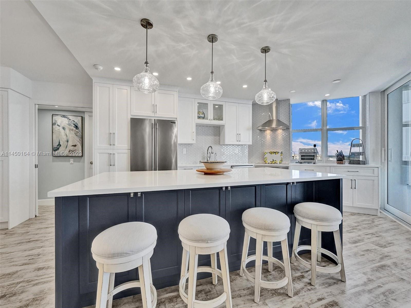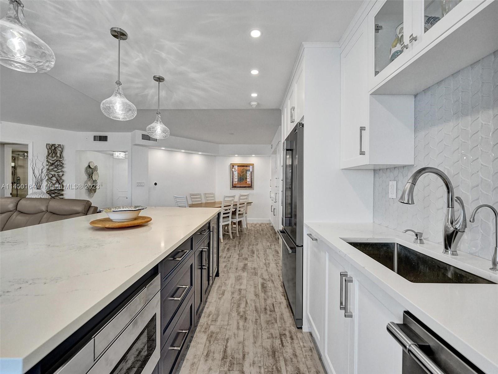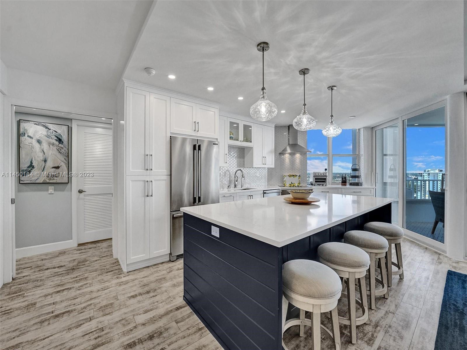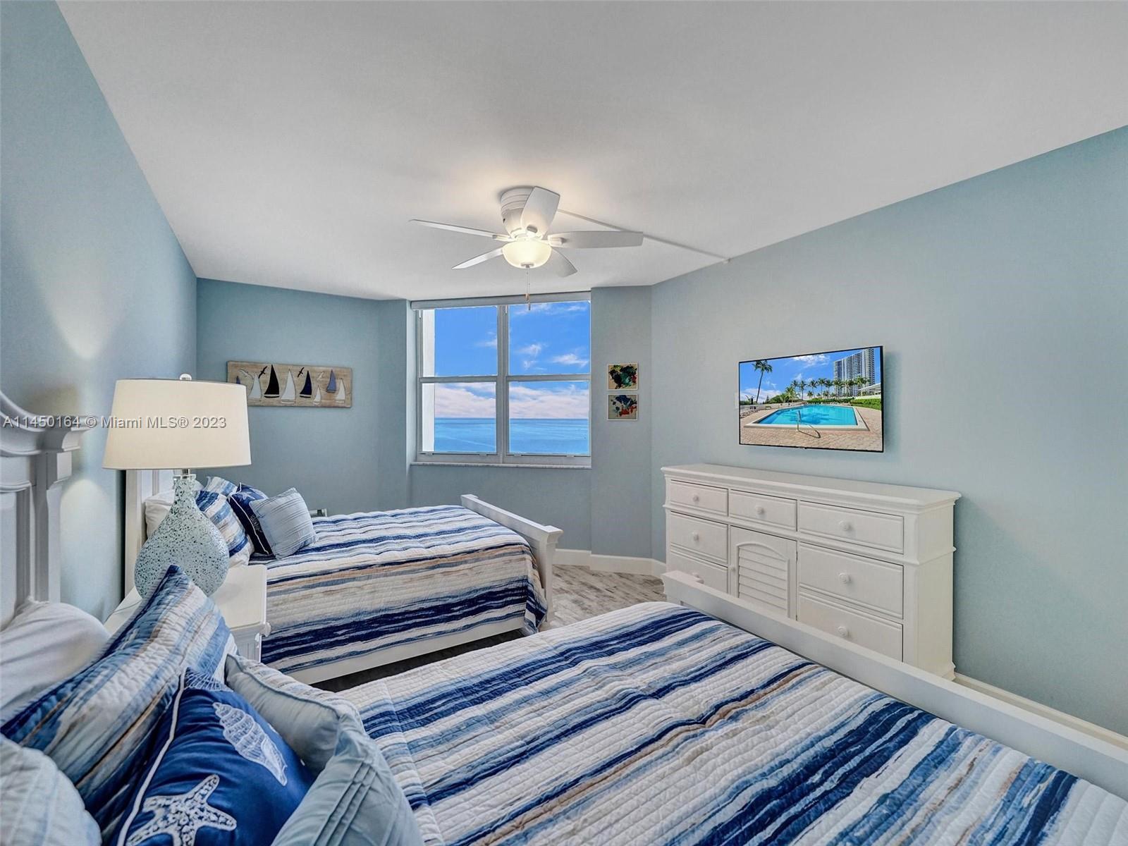 STUNNING VIEW OF THE OCEAN, INTRACOASTAL AND SKYLINE FROM UNUSUALLY LARGE BALCONY 23' x 12'. ACCESSABLE FROM THE LIVING AREA, KITCHEN AND PRIMARY BEDROOM. IMAGINE ENJOYING YOUR COFFEE EVERY MORNING WITH THIS BEAUTIFUL VIEW OF THE BLUE OCEAN, WHITE SANDY BEACH, MILES OF COASTLINE, POMPANO BEACH PIER AND THE LIGHTHOUSE! TOTALLY REMODELED, EVERYTHING NEW. FURNISHED! SPACIOUS OPEN FLOOR PLAN. KITCHEN OFFERS LARGE ISLAND, CUSTOM CABINETS, QUARTZ COUTERTOPS AND WINE COOLER. SPLIT BEDROOMS. BATHROOMS, CUSTOM CABINETS AND QUARTZ COUNTERTOPS. HURRICANE IMPACT DOORS AND WINDOWS. ELECTRIC BLINDS IN BEDROOMS, TURN KEY, 24/7 SECURITY, POOL, FITNESS CENTER, SAUNAS, LIBRARY, CONFERENCE ROOM, CARD ROOM, BOCCE BALL, BILLIARD ROOM, BBQ GRILLS AND BEACH CHAIRS. GREAT LOCATION.