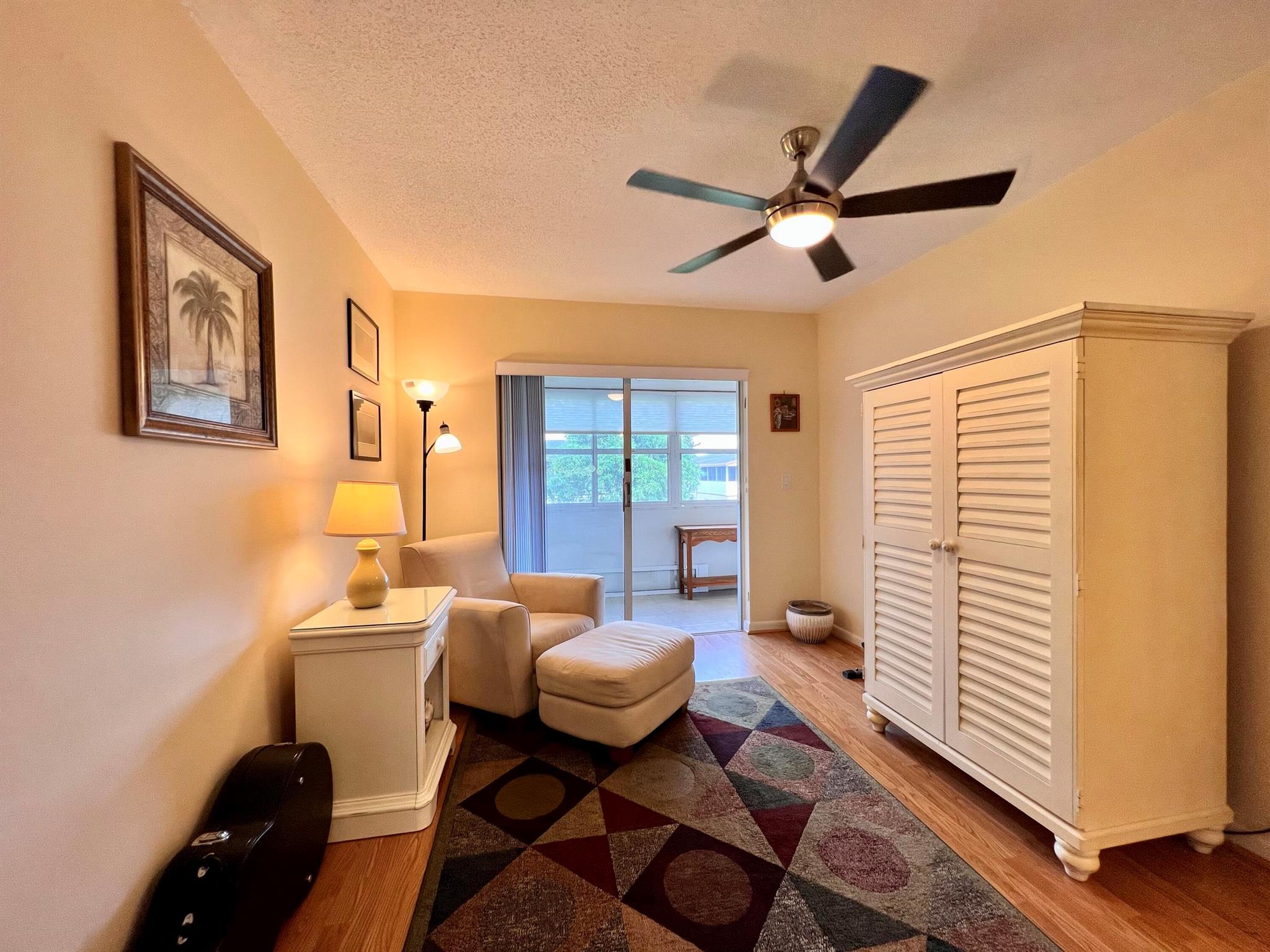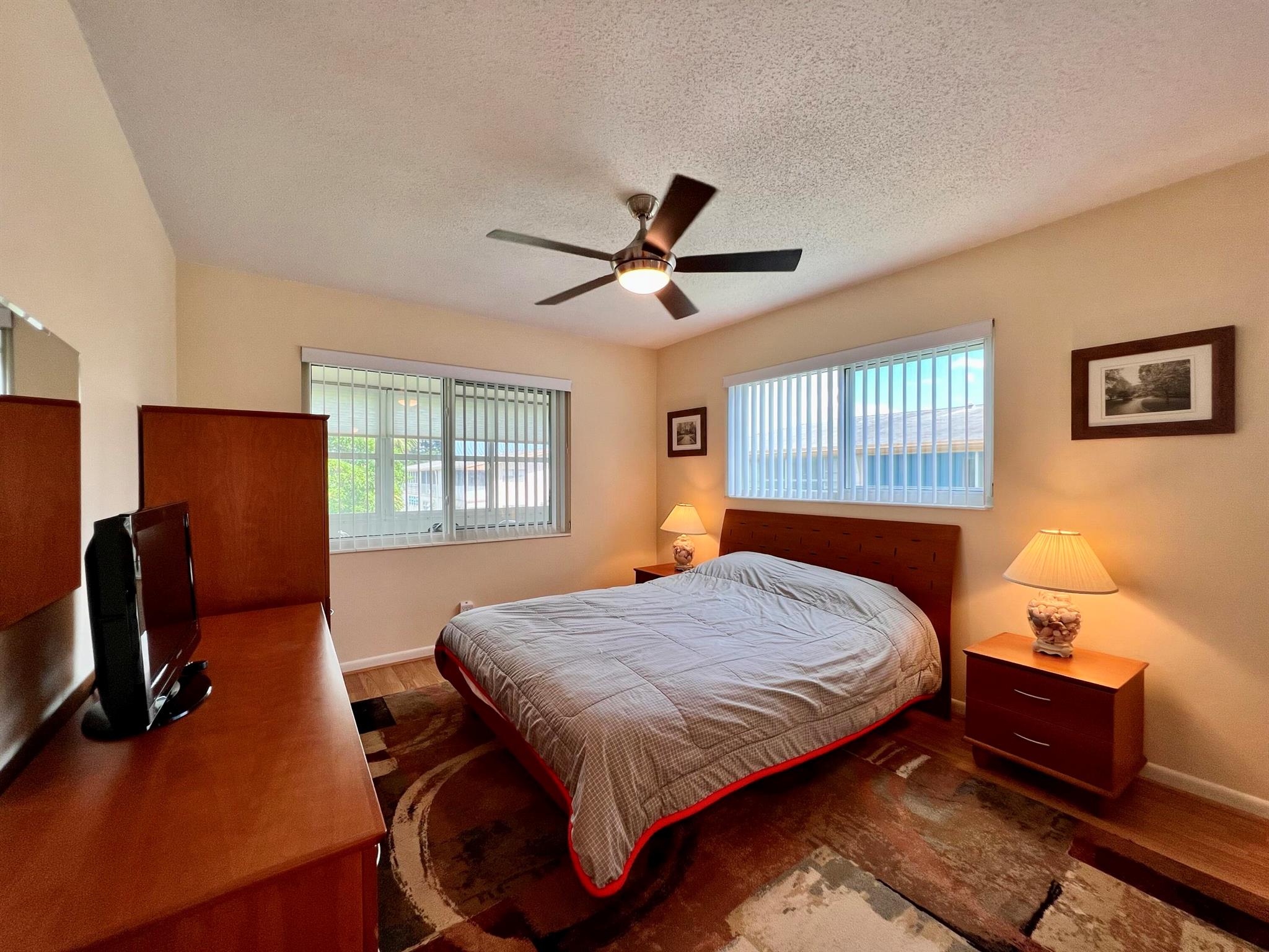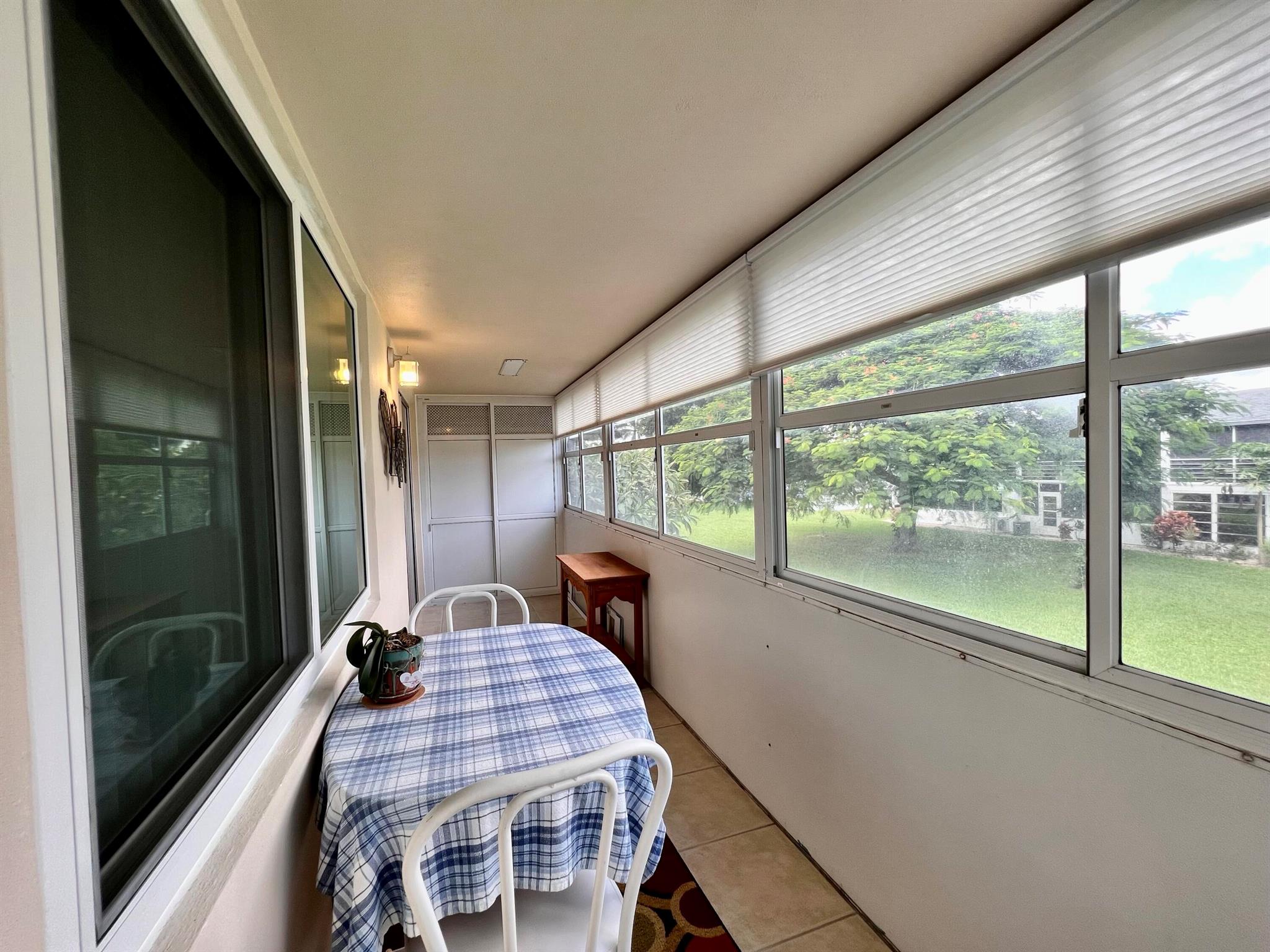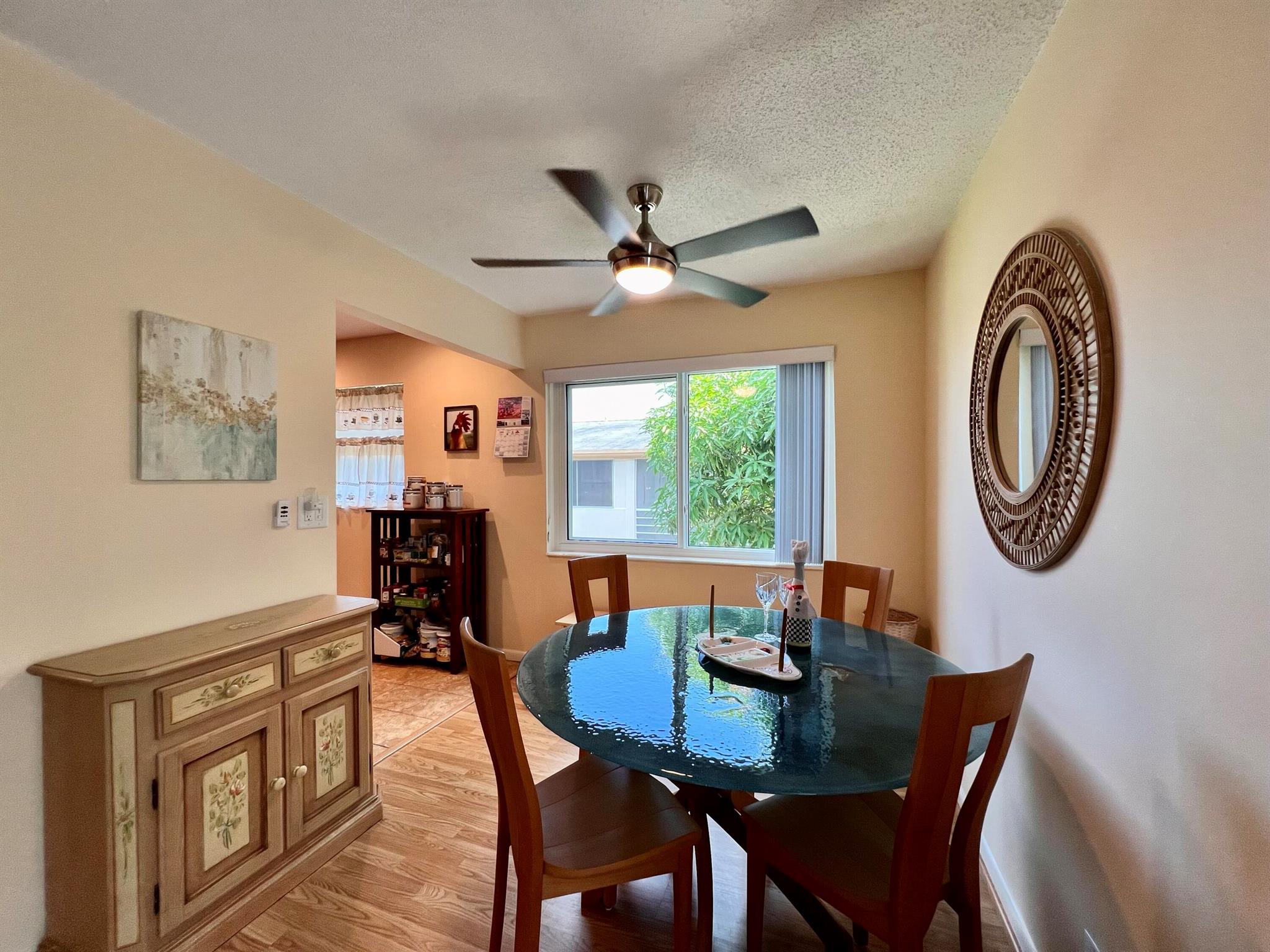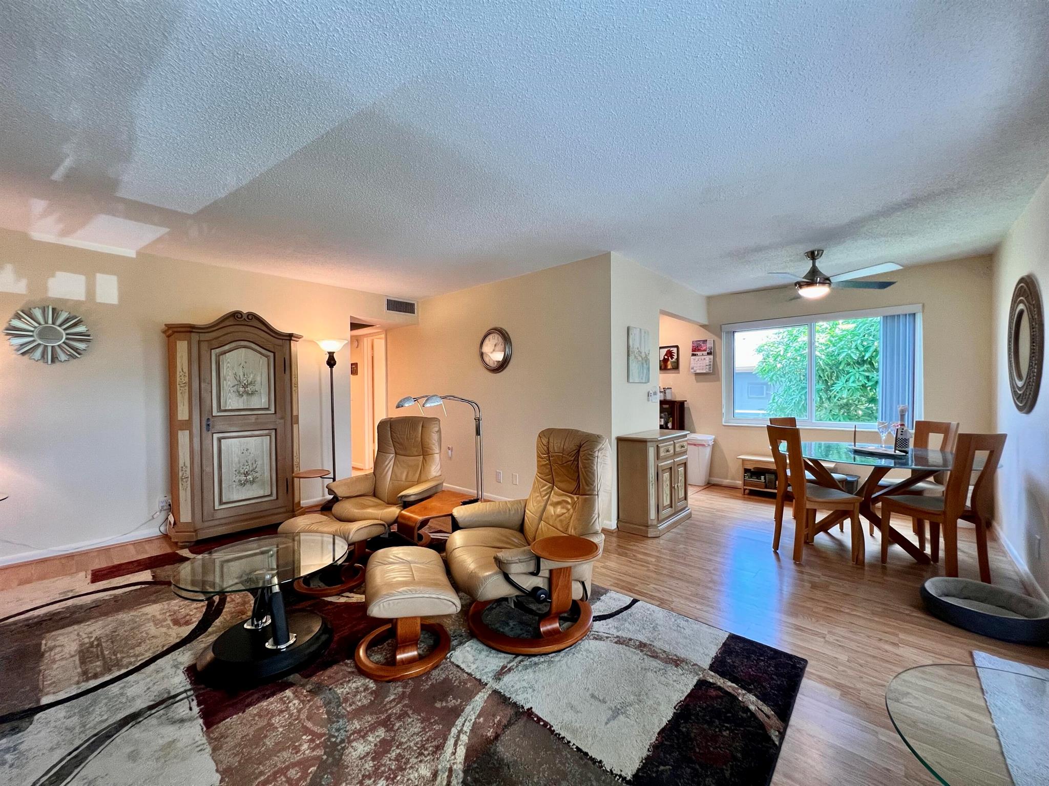 Prepare To Be Impressed! Updated & Beautifully Maintained 2/1.5 CORNER End Unit in 55+ Century Village. Quiet & Private Location Yet Convenient to The Main Clubhouse. Pretty Updated Kitchen W/ Cherry Cabinets, Granite Counters, Upgraded Stainless Appliances, & High-Hat Lighting. Full Bath Refreshed W/Updated Vanity & New Tub Surround. Long-Enclosed Lanai Offers Extra Space, Tile Flooring, Extra Wall Insulation, and New Window Treatments. Natural Wood Look Laminate Flooring Flows Throughout. Freshly Painted (2023) Impact Windows (2022). Well Run Pet Friendly Building W/ New Roof (2023), Reserves, Updated Laundry Rooms, Fruit Trees, & Private Resident Patio. Sold AS IS and With Tasteful Designer Furniture & Contents (some items excluded). Century Village is a 55+ community with so much to