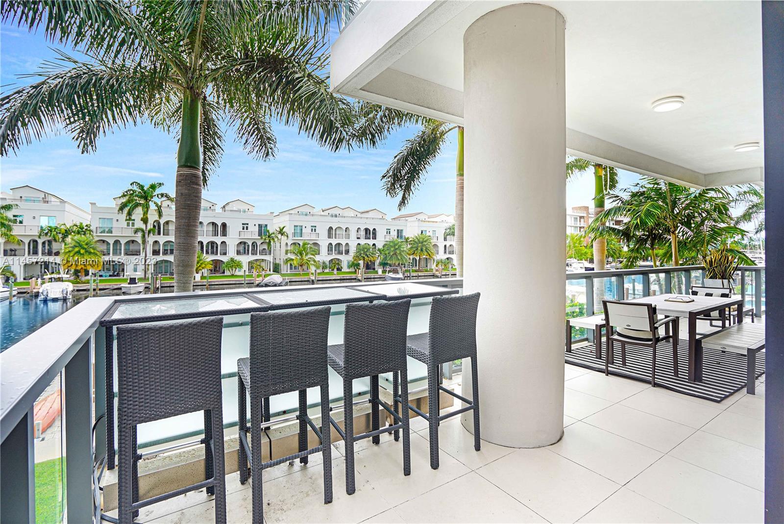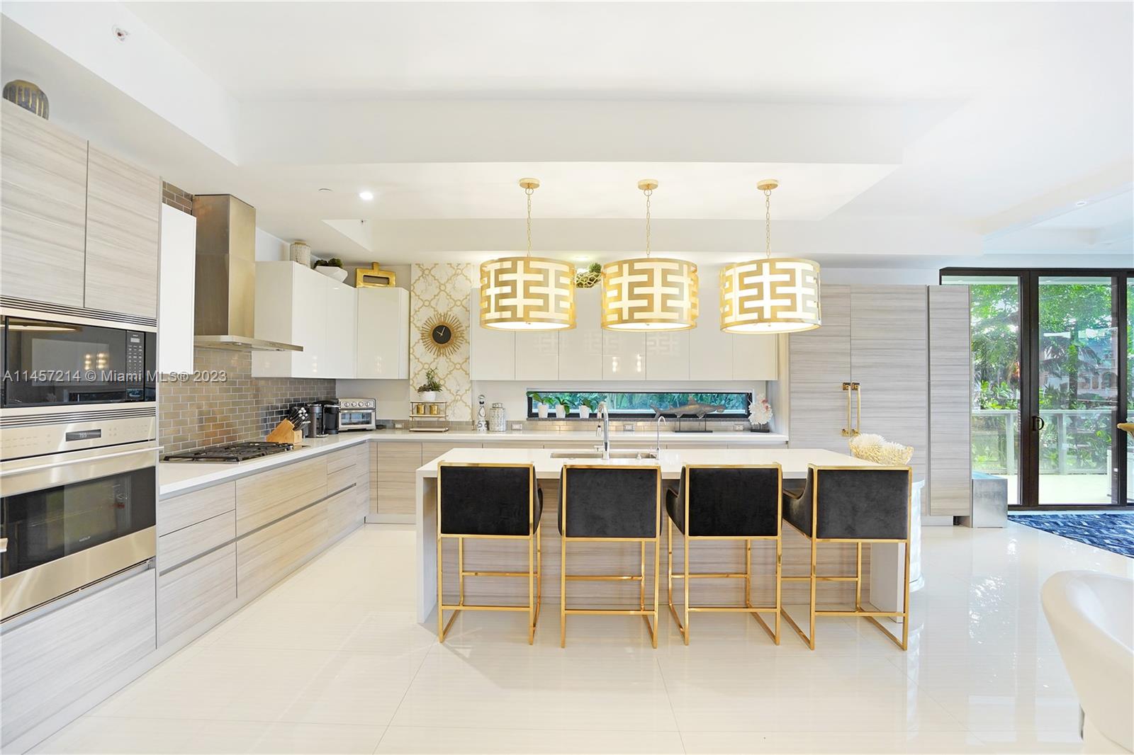 Aquavita is a contemporary, luxury boutique waterfront building with no fixed bridges to the ocean! Private line elevator leads to this exquisite Versace inspired, designer decorated corner residence offering 3 bedrooms & 3.5 baths. A dramatic foyer opens to a flow-through floor plan, with volume ceilings, porcelain tile throughout, & seamlessly integrates with the 990 ft² wraparound terrace! Top-of-the-line Wolf, SubZero appliances, floor-to-ceiling windows and sliders, custom lighting, window treatments, variety of opulent wall treatments. Primary retreat with spa-like ensuite, 2 walk-in closets, terrace. Pet-friendly building provides wide array of amenities; private/owned 50' boat slip, 65' saltwater pool, cabanas, kayak storage, gym, 2 spots in gated/covered garage with guest parking.