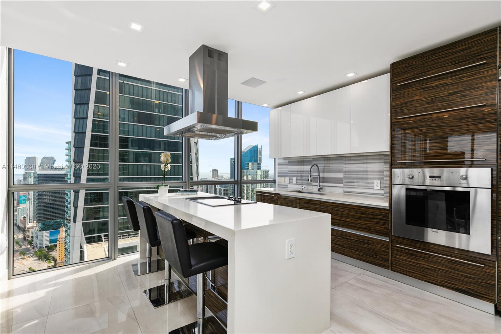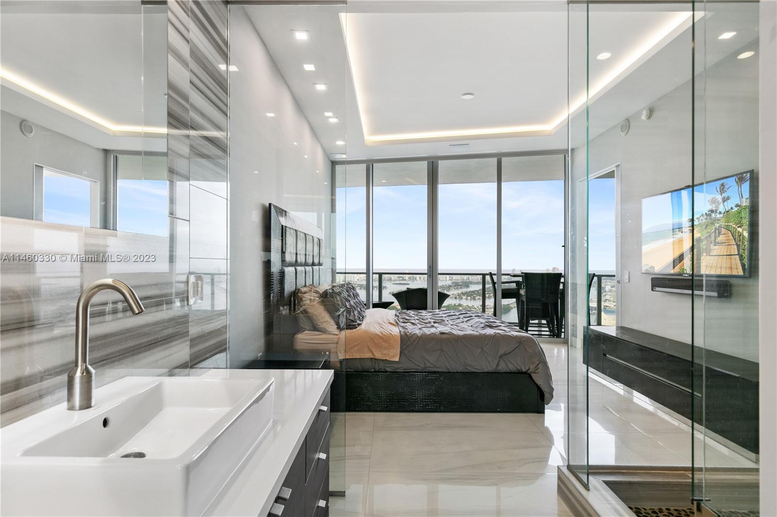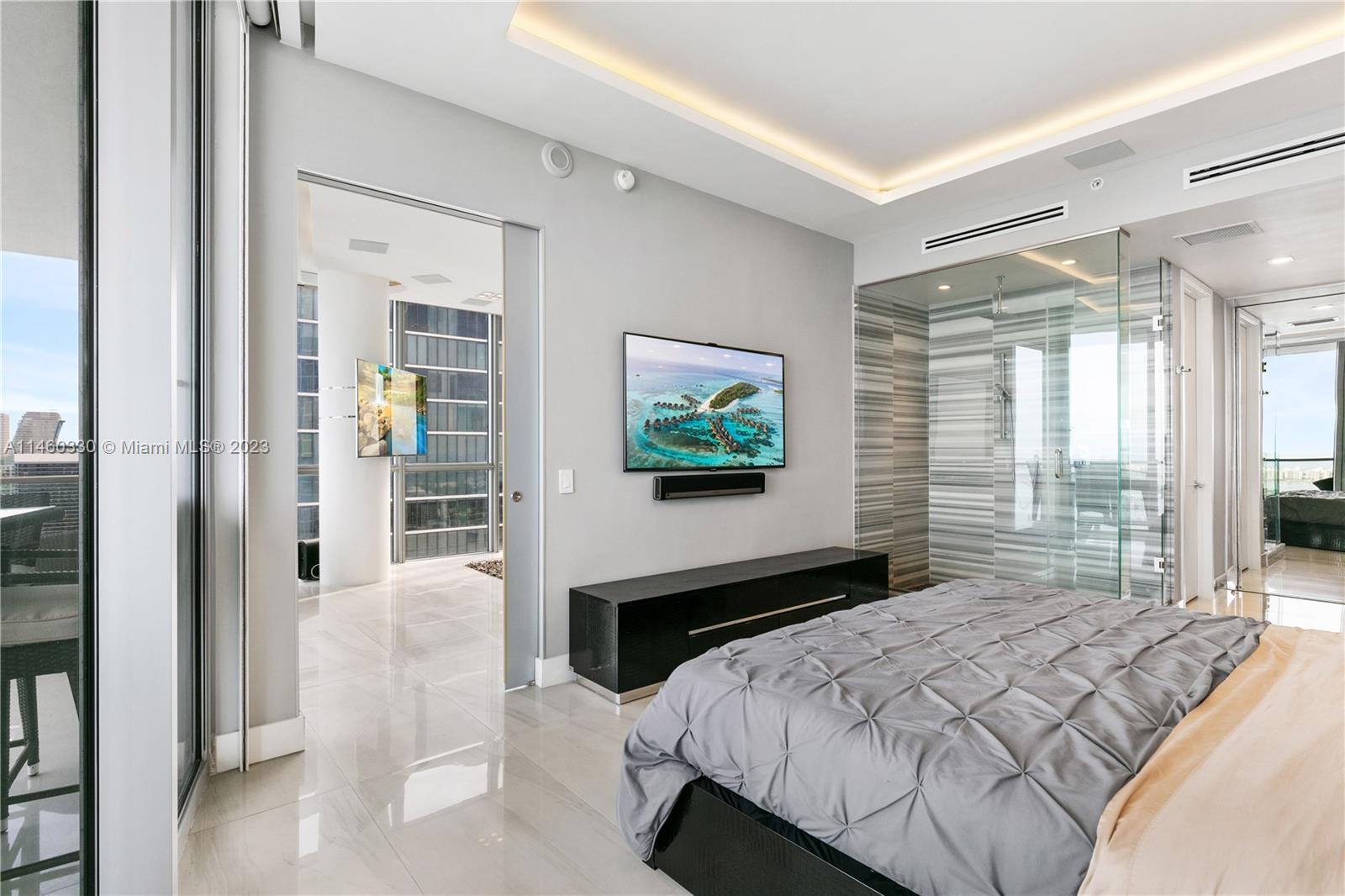 This stunning residence in the heart of Miami has three spacious bedrooms and two and a half custom bathrooms and showers with Duravit fixtures.Sleek and modern design with custom porcelain flooring,custom ceilings adorned with direct and indirect lighting.Modern kitchen with Viking appliances and custom cabinetry.Equipped with a whole home sound system by Creston automation,security cameras,custom wireless blinds all throughout.Convenience six state-of-the-art high-speed elevators opening directly into your unit.Amenities include concierge,two pools,jacuzzis,fitness center,and much more. Residents have the privilege of enjoying the Marquis beach access with free valet parking at Bentley Beach Club. Don't miss out on the opportunity to own this exceptional condo in Miami. Easy to show !