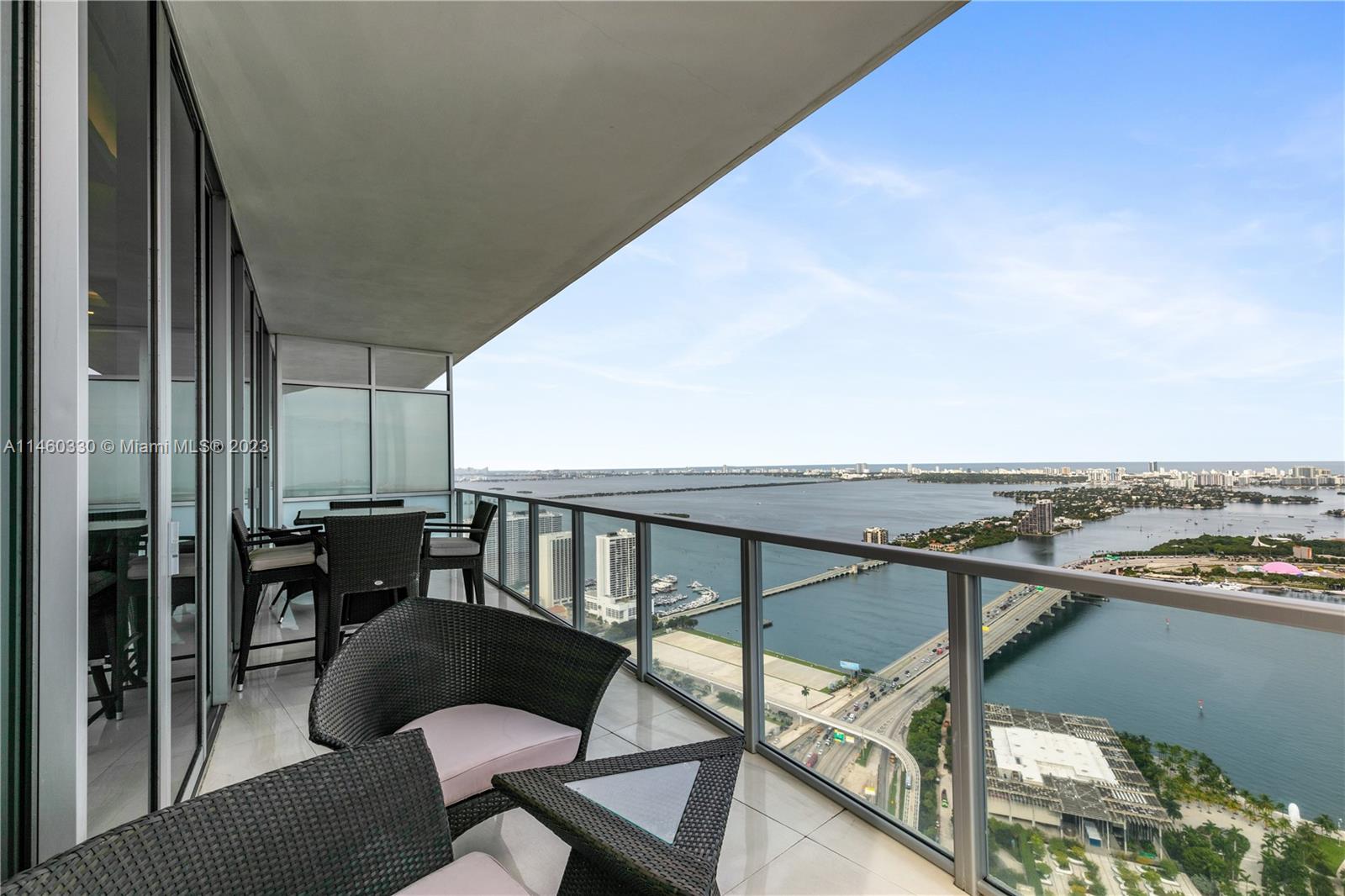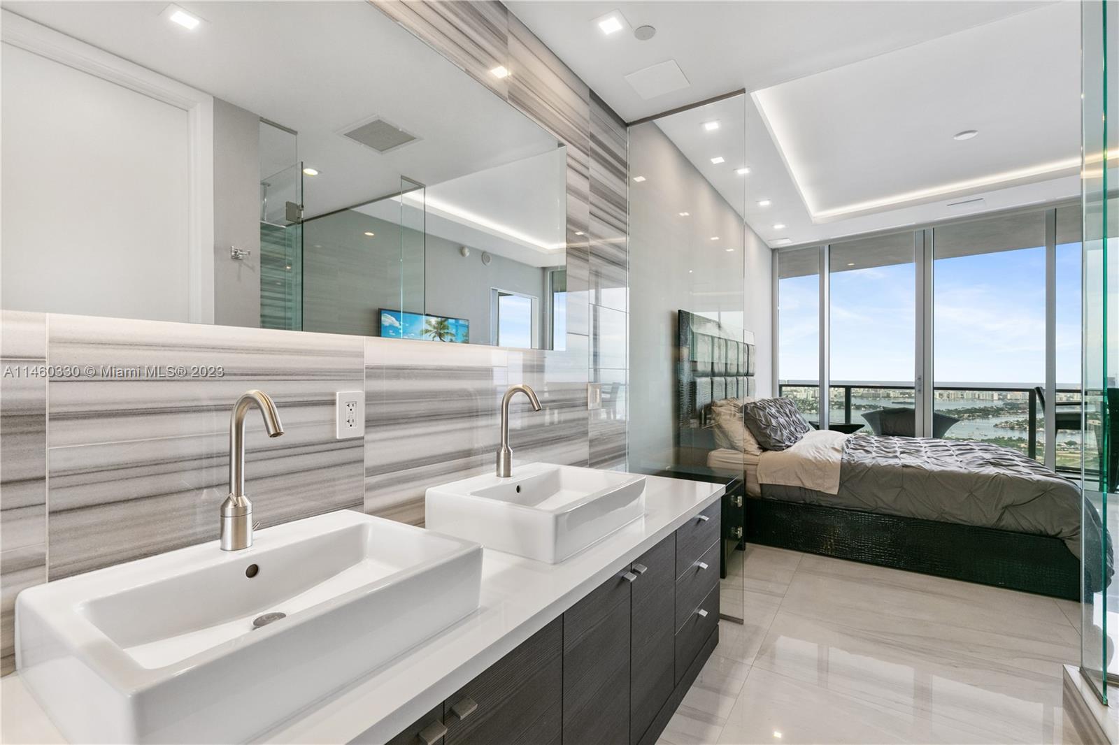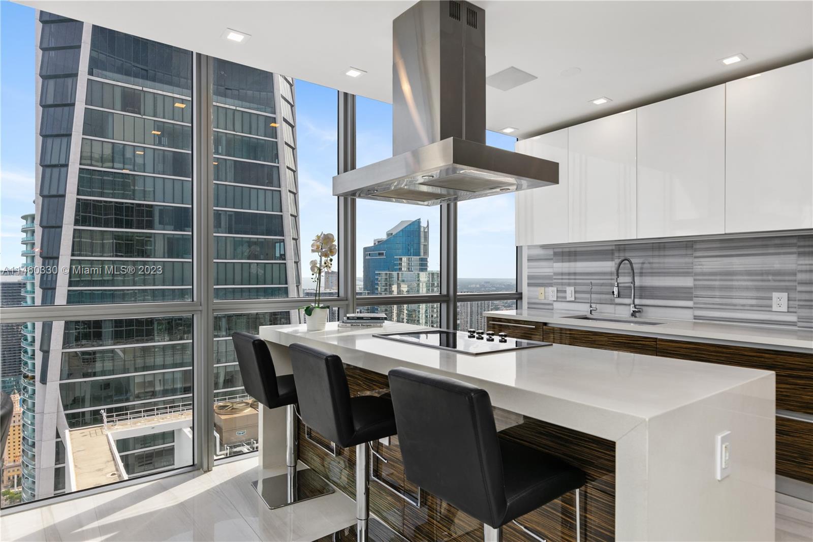 This stunning residence in the heart of Miami has three spacious bedrooms and two and a half custom bathrooms and showers with Duravit fixtures.Sleek and modern design with custom porcelain flooring,custom ceilings adorned with direct and indirect lighting.Modern kitchen with Viking appliances and custom cabinetry.Equipped with a whole home sound system by Creston automation,security cameras,custom wireless blinds all throughout.Convenience six state-of-the-art high-speed elevators opening directly into your unit.Amenities include concierge,two pools,jacuzzis,fitness center,and much more. Residents have the privilege of enjoying the Marquis beach access with free valet parking at Bentley Beach Club. Don't miss out on the opportunity to own this exceptional condo in Miami. Easy to show !
