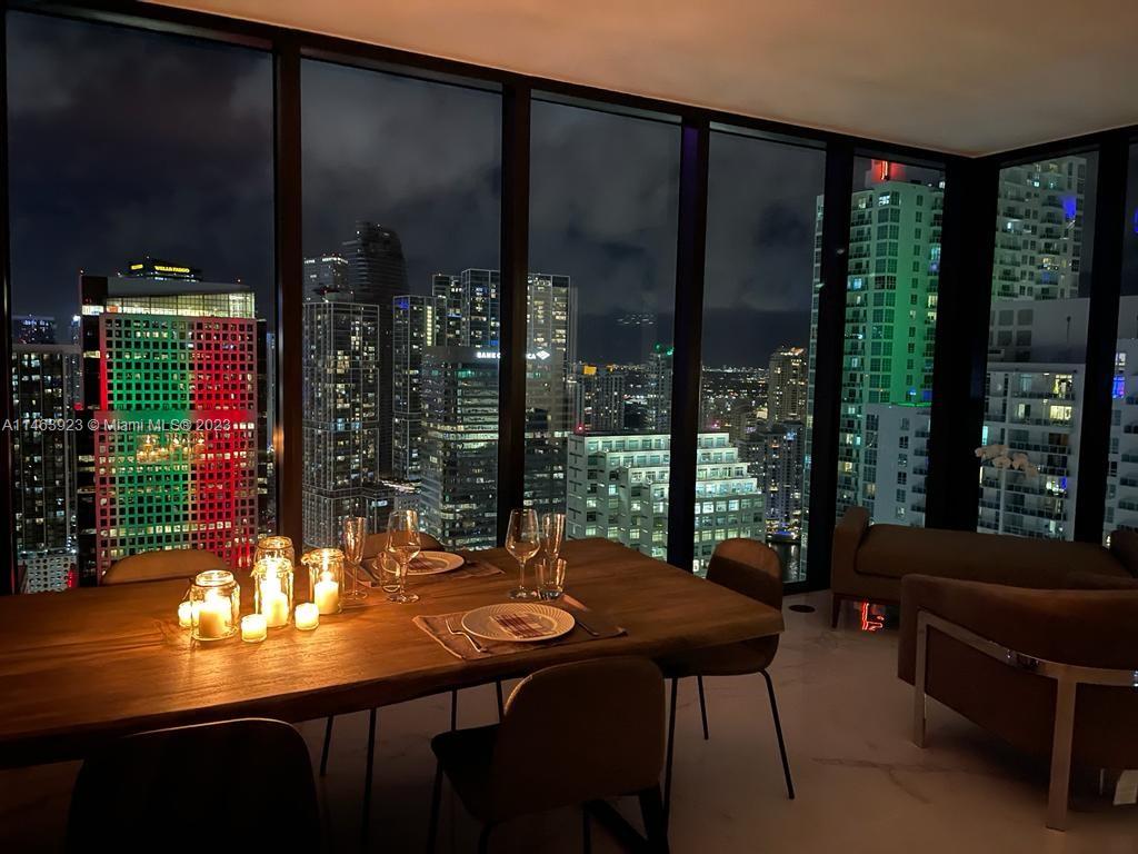 Amazing upgraded panoramic corner unit at 1010 Brickell Condo, the best line in the building overlooking the bay. Private elevator with 3 beds, 3 baths, + den, 9-foot ceiling heights, balcony with barbecue/summer kitchen. Porcelain floors throughout the unit including a balcony, new custom-made closets, top of the line appliances! Great building with fantastic amenities for families: outdoor movie theatre, restaurant & swimming pool at 50th-floor roof top; spa with jacuzzi, massage & treatment rooms, sauna & steam room; basketball courts, mini soccer & racquetball courts, kids indoor playground, indoor heated swimming pool, fitness center, party room, arcade room, bowling, virtual golf, and more! Luxury condominium built in 2017.
