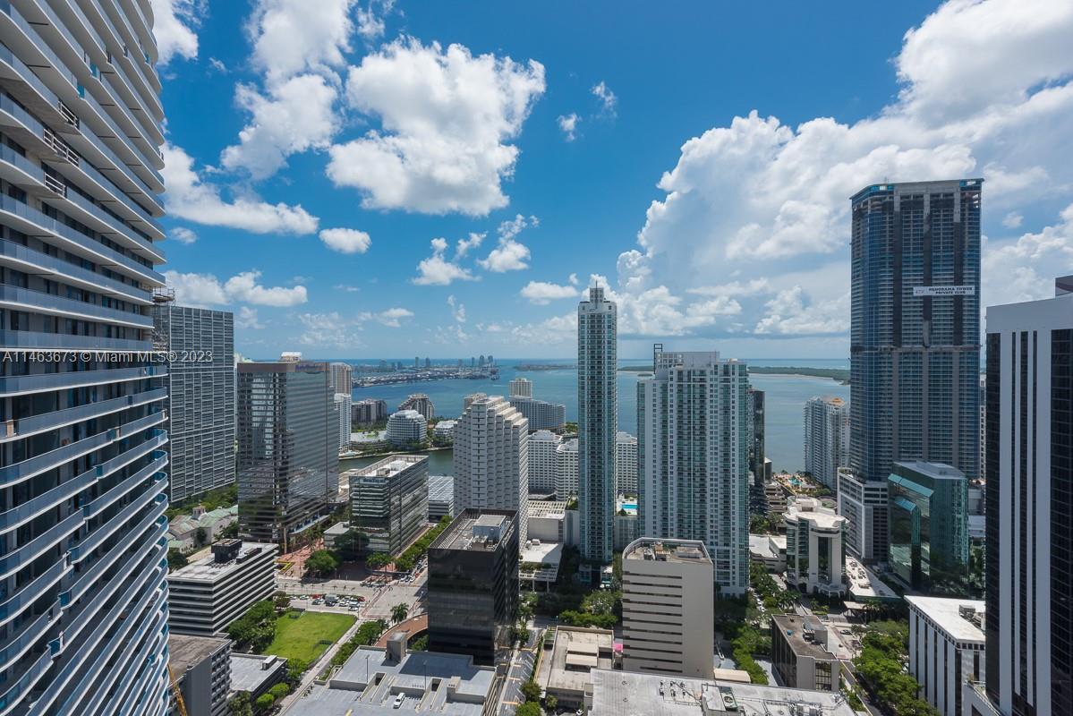 Spectacular City and Ocean views from the moment you walk into this 3 BR /3BH. This corner unit, with stunning water views, features a wrap- around terrace accessible from every room. Interior features include floor to ceiling windows, modern cabinetry, porcelain tile floor, integrated appliances, blinds and blackouts. Located just steps away from Brickell City Centre, with world class dining, shopping nightlife, and more. Amenities include gym, rooftop pools on top each tower. TEXT LISTING AGENT FOR APPT OR USE SHOWING ASSIST.