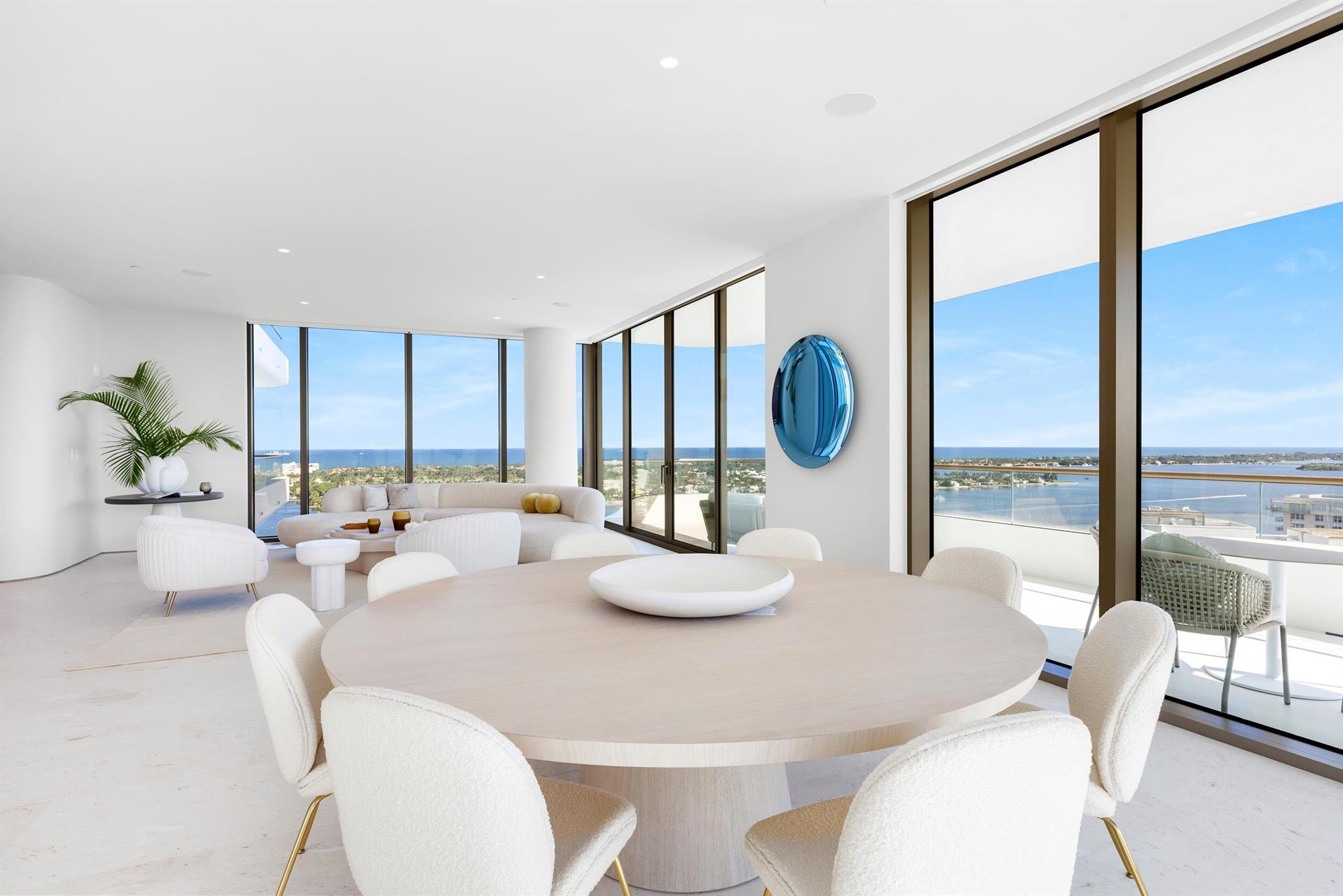 Welcome to residence 2001 at Palm Beach's newest luxury condominium, La Clara. This high-floor, premier 01-line residence spans over 4,200 total square feet and features breathtaking, panoramic views from every perspective. The 1,053 square foot terrace wraps the entire length of the unit, providing for effortless indoor/outdoor living. High-end finishes include large format limestone flooring, top-of-the-line Snaidero kitchen cabinetry, a suite of Miele appliances, polished nickel fixtures and more. This residence is packed with upgrades, including a Crestron smart home system, built-in speakers, motorized window treatments and high-end closet systems. Be the first to enjoy this brand-new, never before lived in unit for the 2023/2024 season.