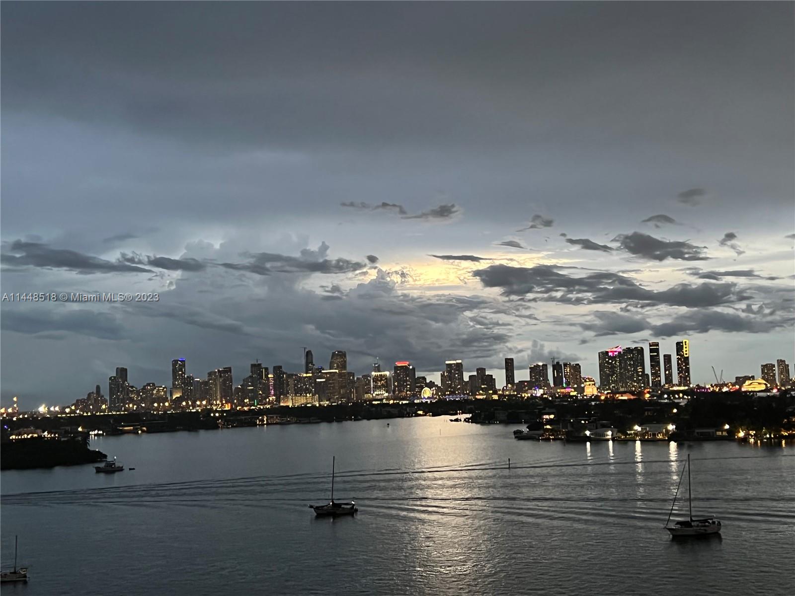 Mesmerizing views day or night. It's what you've been waiting for! Super-sized 1 bedroom with Downtown Miami and Bay views. Open kitchen, laminate & tile floors, 1.5 bathrooms with generous storage. Move on in and plan your future renovation. Great building with many recent updates including: new gym, elevators, hallways, fire sprinkler system, rewired with high speed internet, EV charging stations and more coming soon! All exterior concrete work has been completed-BRAND NEW lobby underway! Don't miss out on the gorgeous sunset views! Pet friendly, and washer/dryer installation allowed in the unit.