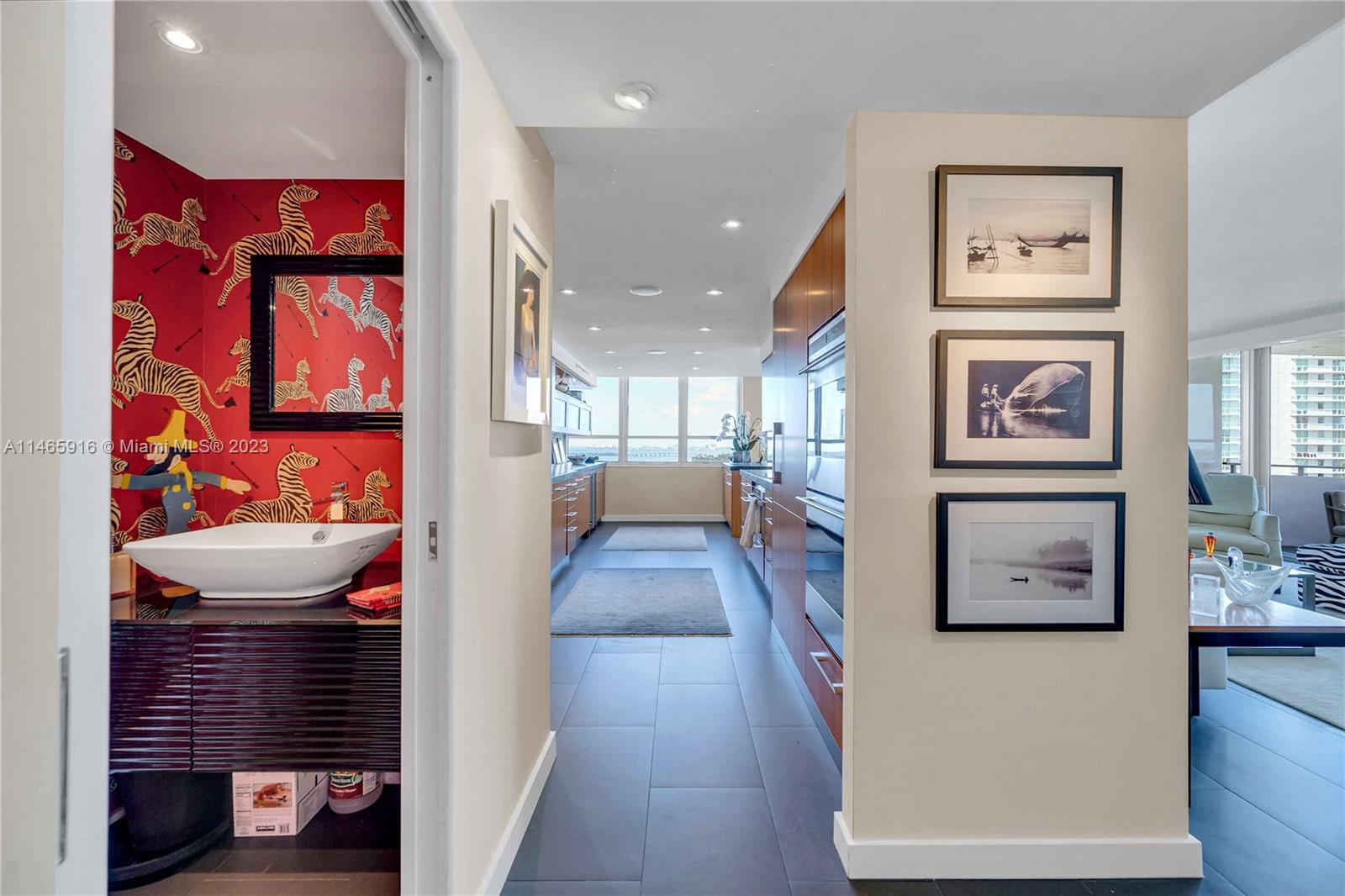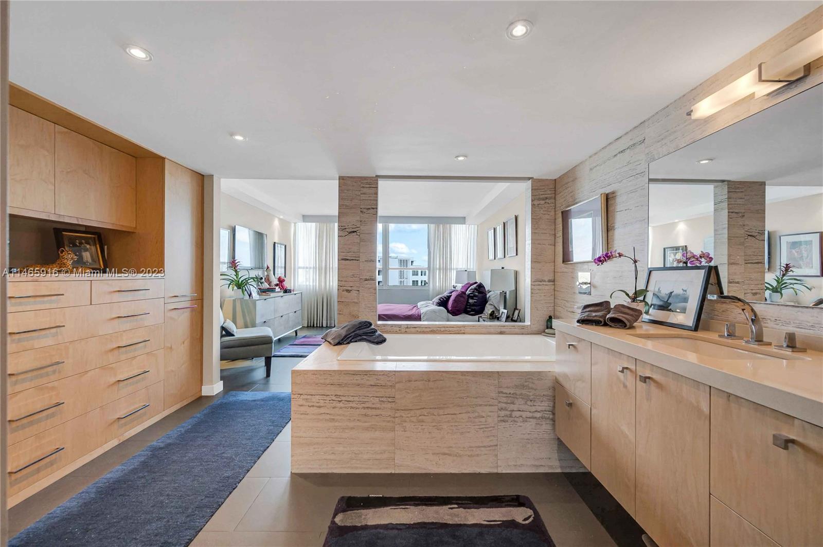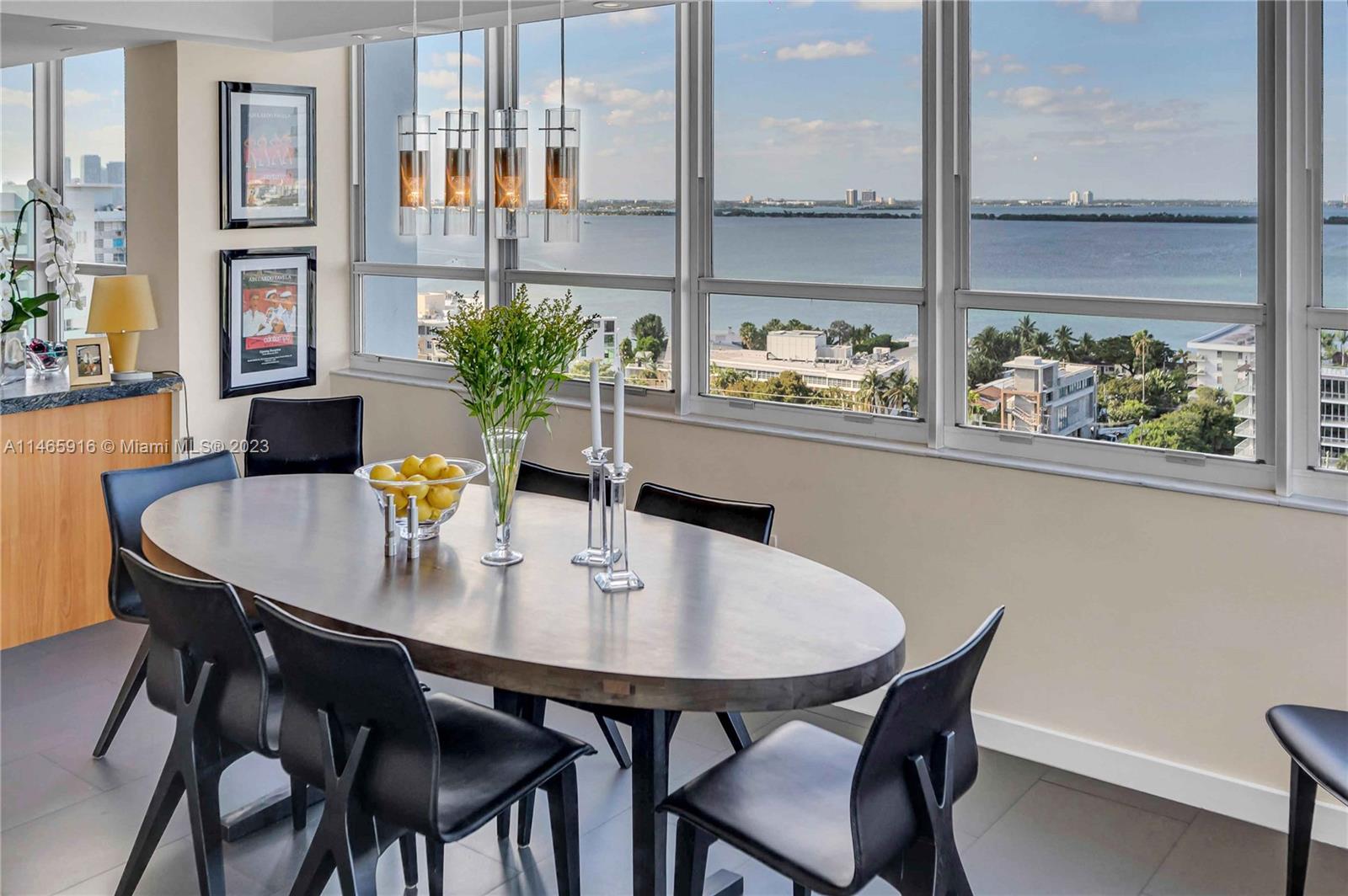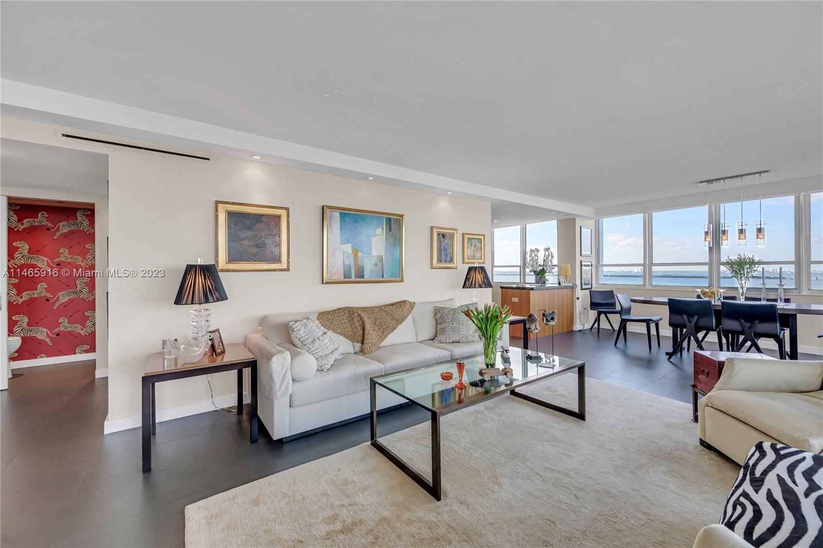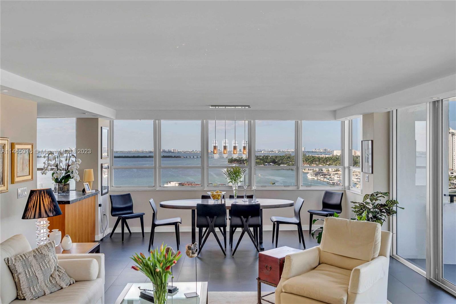 What a...View! Price! Location! NE corner with expansive views of Bay, Marina, Belle Isle Park, & SoBe skyline. Thoughtfully renovated with quality materials & finishes. Custom kitchen equipped with Sub Zero refrigerator, Wolf double ovens/induction cooktop, microwave drawer, & wine cooler. Large matt grey porcelain tiles throughout, impact windows/doors with powered shades, PLUS hardwired internet & speakers for uninterrupted work & play. Both bedrooms have ensuite bathrooms with ample storage. Main has separate soaking tub & oversized shower. Large open balcony adjacent to living room perfect for sunrises, afternoon cocktails, or just enjoy the breeze & views. Updated building with reserves. Completed updates include hallways, internet, fire sprinklers, EV charging, & gym. Lobby underway