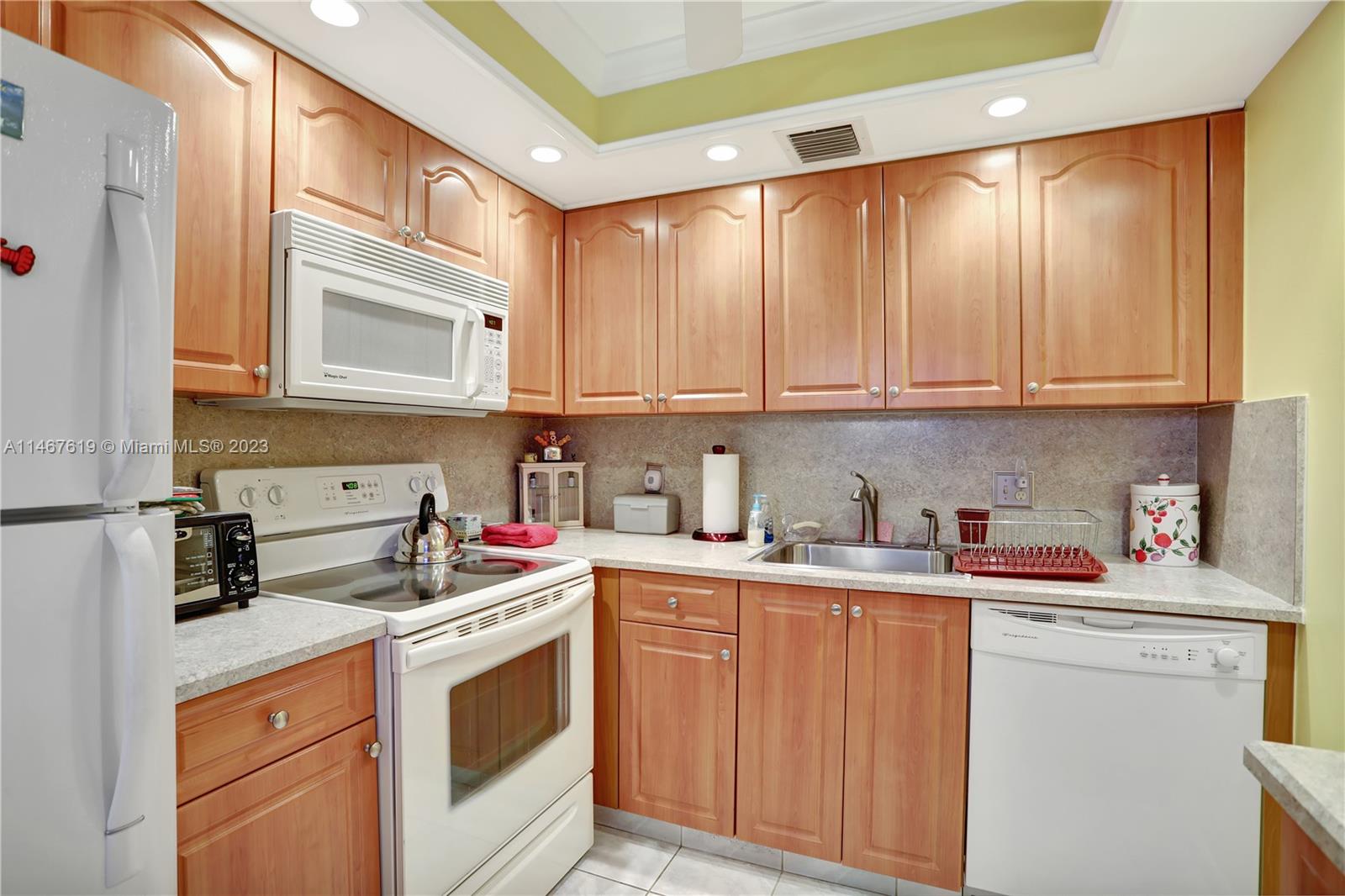 Sought-after 2 bedroom 2 bathroom unit with high-end laminate flooring in immaculate condition. Which is consistent throughout the entire condo. Upgraded custom kitchen cabinets with recessed lighting. Spacious master bedroom with a walk-in closet. A breathtaking view looking onto the manicured golf course landscaping and a peaceful view of one of the multiple ponds. Feel secluded and at peace with complete privacy. The building is conventionally located within walking distance from the main clubhouse. Centrally located with access to both entrances. "Internet, Basic cable, with all amenities included. ELEVATOR IN THE BUILDING and CENTRAL AIR CONDITIONING. Take pleasure in the resort-style living community in the most exclusive 55-plus community in Pembroke Pines!
