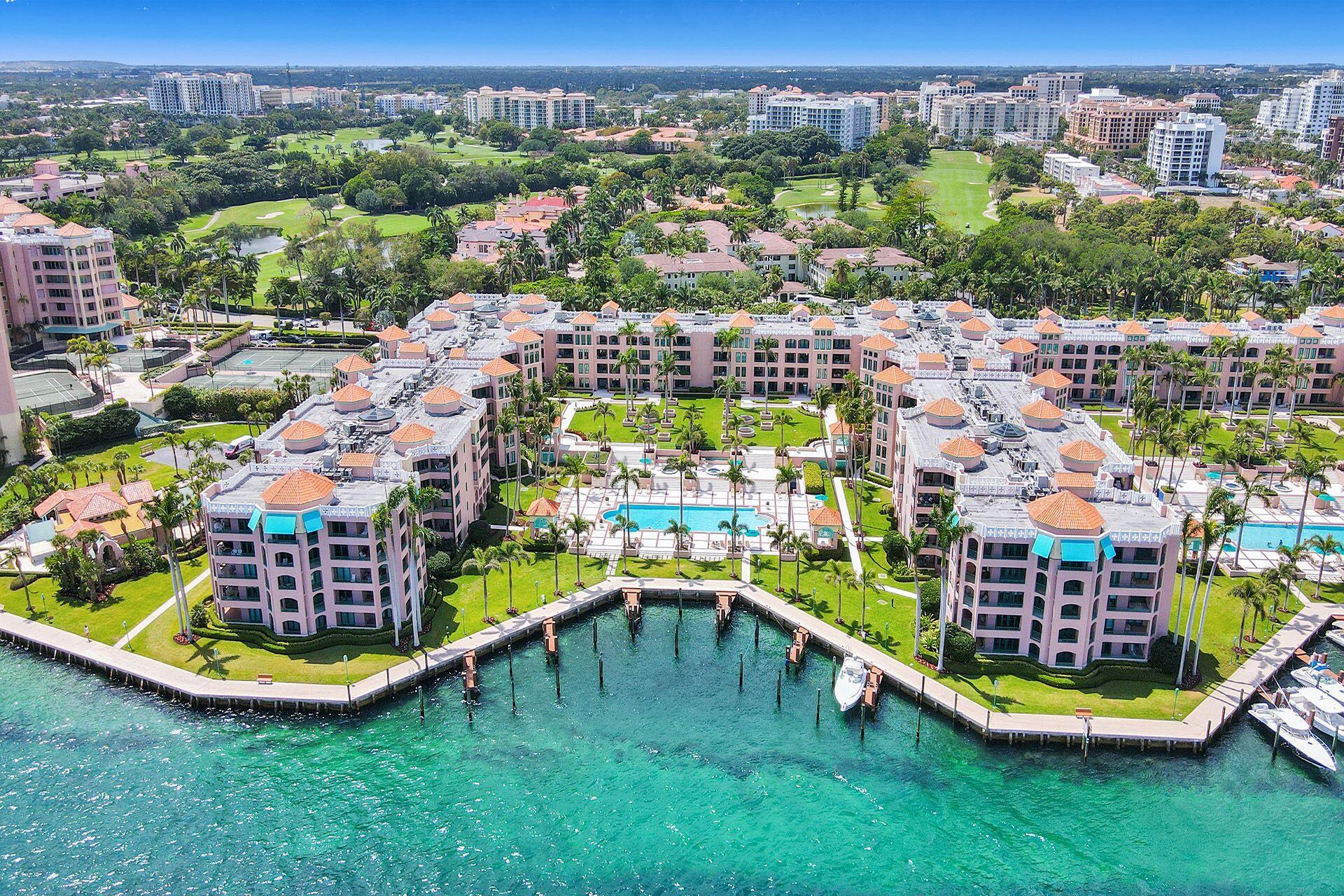 LOCATION, LOCATION, LOCATION!! This convertible two bedroom split floor plan feels like a private enclave with no attached neighbors on the grounds of the Boca Resort! Full service building with 24 hour security, amenities galore and immaculately maintained. This Southwest facing unit with lush, tropical, magnificent sunset views feels spacious and open with access to the large balcony from all rooms. Both Bathrooms have been nicely updated and the primary has an extra large artisanal walk in shower. Specialty stained wood ceiling adds a warm feel with recessed lighting throughout. Short stroll to shopping, entertainment and restaurants, the property is situated on the intracoastal and close to the beach, all in the heart of East Boca.