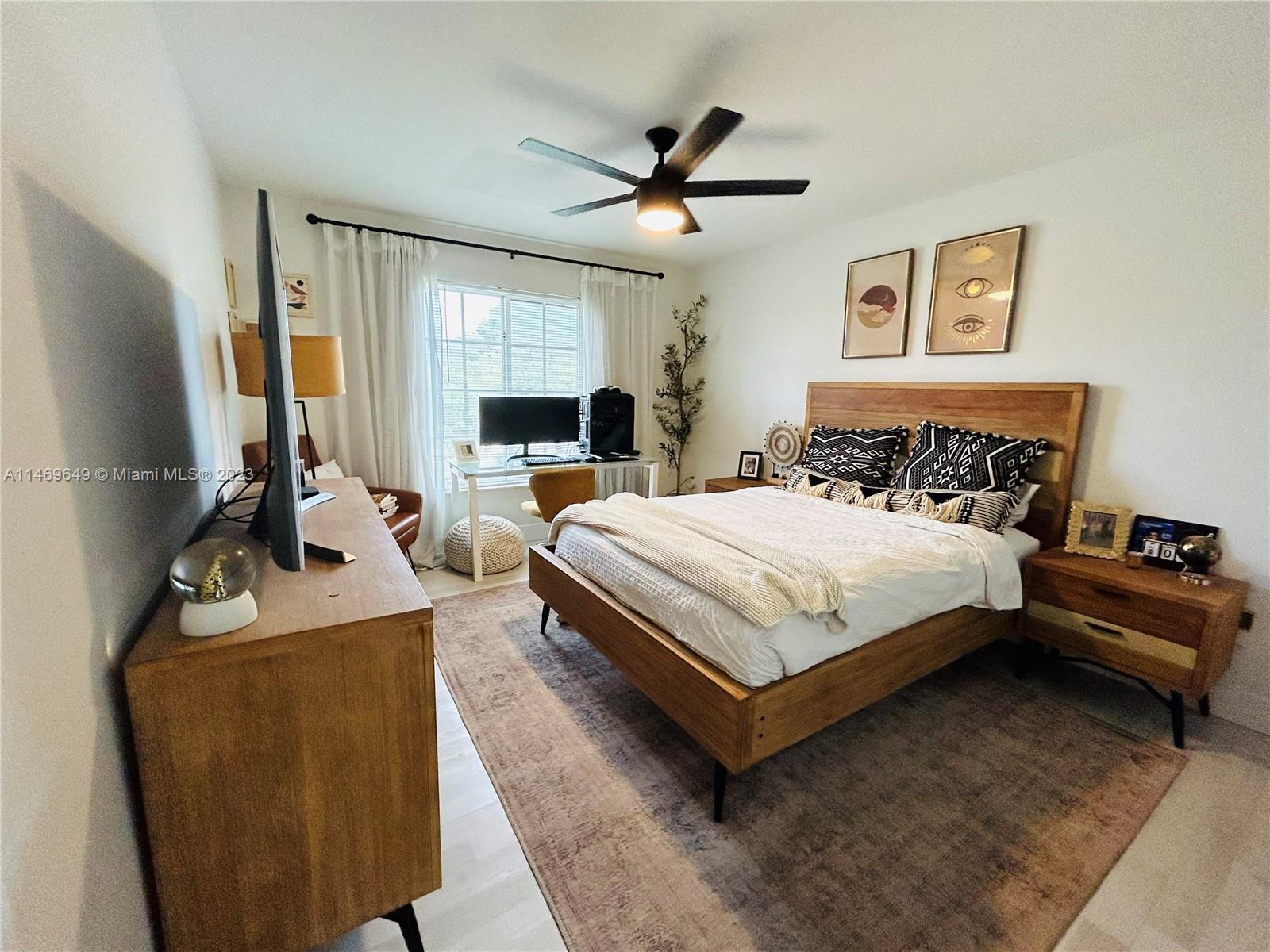 Fantastic Corner Unit in Doral Gardens II Community. This apartment has been tastefully remodeled. The Unit features a new Open Concept kitchen with QUARTZ countertop and stainless-steel appliances. Master bedroom with walk-in closet and bathroom inside, ceiling fans with remote control, and new vertical blinds. Recessed lights are installed inside the entire property and can be controlled by phone or Alexa home pod. New electrical system. New A/C duct. Balcony overlooking the garden, lake, and street view. Community offers clubhouse, fitness center, community pool, playground, and tennis courts.