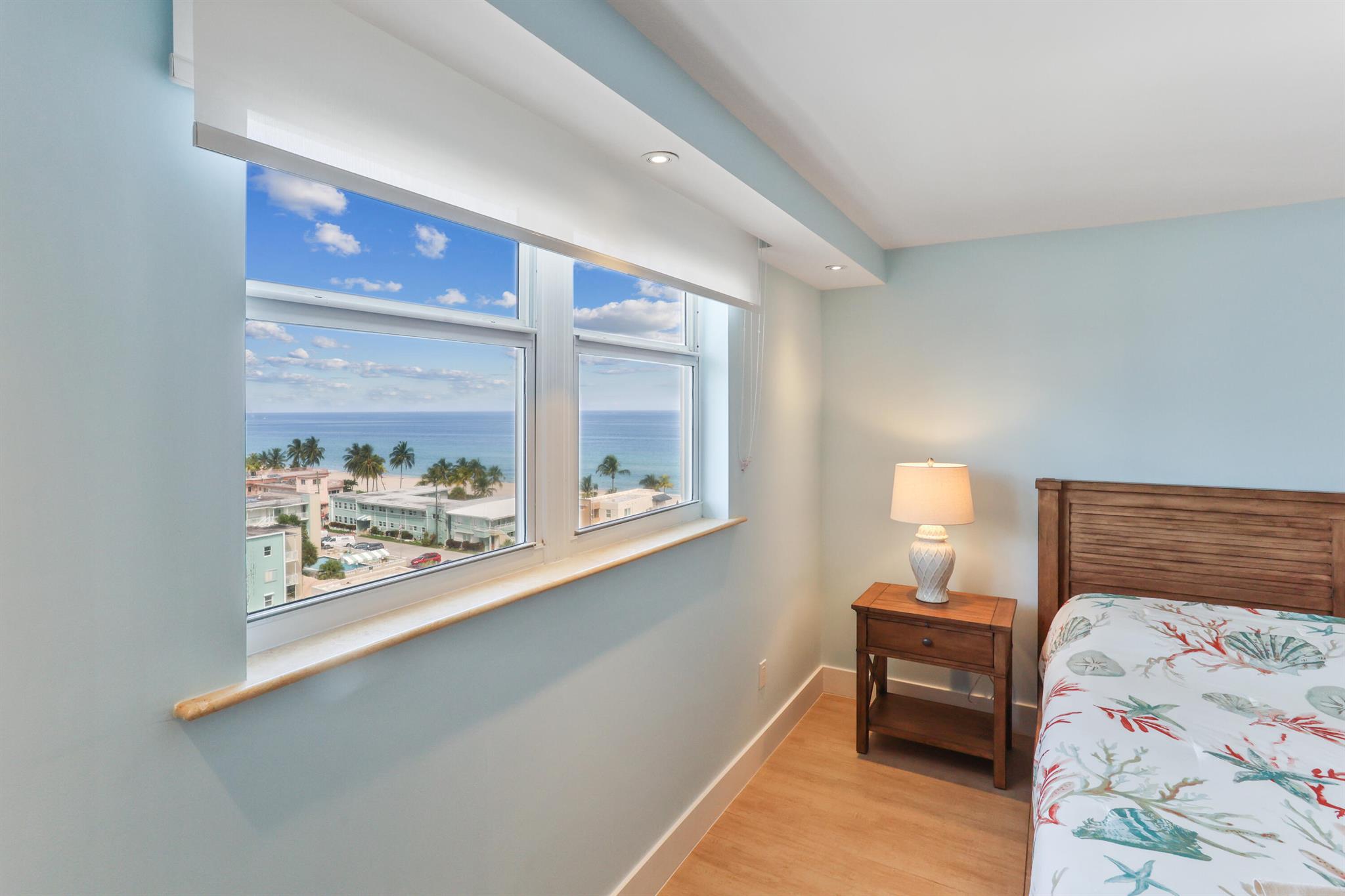 Welcome to your dreamy Florida paradise at Wellington Towers in Hollywood! This boutique building sits steps away from the pristine Hollywood beach & houses this fully renovated, stunning 2-bedroom, 2-bathroom penthouse condo with views of BOTH the intracoastal and the ocean! This condo is perfect for a first-time homebuyer, buyers seeking a fabulous 2nd vacation home, & families that are right sizing, downsizing or upsizing! Inside you'll find modern finishes, including no popcorn ceilings, freshly painted walls, LED dimmer lighting throughout, a fabulous kitchen with updated white shaker cabinets, SS appliances, porcelain tile throughout, newer bathrooms & built-in shelving in the closets. One closet even doubles as a built-in office space! Blackout & light filtering shades
