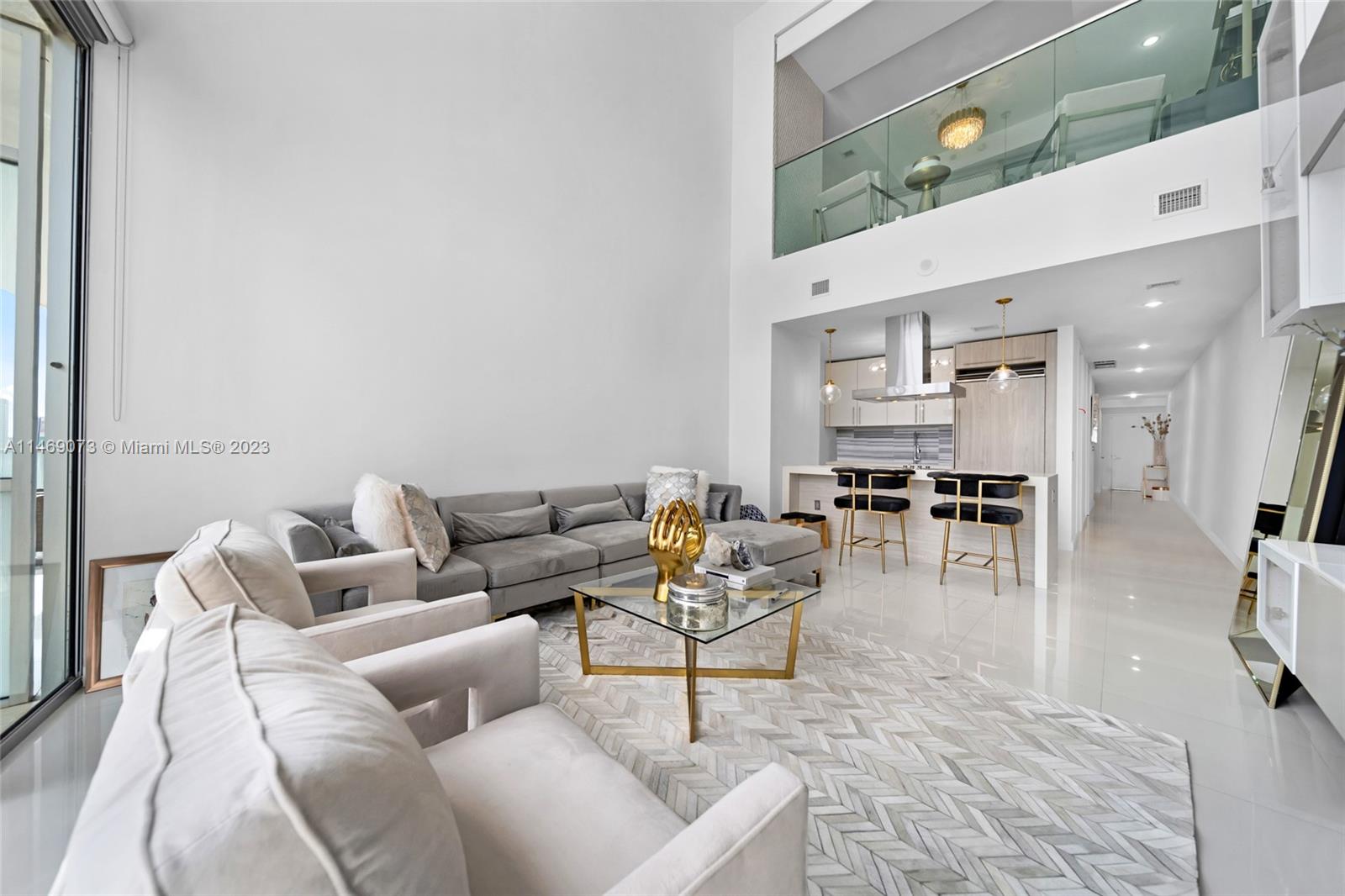 This luxurious 2 story loft style 1Bdr + Den with 2 newly renovated full baths is the perfect place to call "Home". This spacious unit comes with porcelain tile throughout, a completely renovated kitchen and 20" vaulted ceilings. Also enjoy an oversized warm and inviting balcony with views over looking the Biscayne Bay. The Marquis Condominium offers 24hr front desk services, valet and self parking, 2 pools and a gym. Don't miss this opportunity!