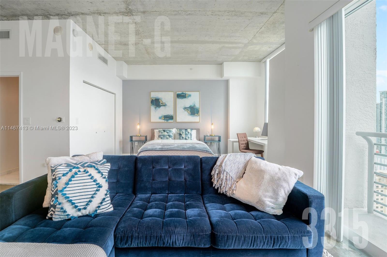 Beautifully Appointed 33rd Floor Loft in Downtown Brickell Miami. Unit is SOLD FURNISHED, has 10 high Ceilings, Nest Thermostat, Expansive Miami Skyline, River and Partial Ocean Views, Stainless Steel Appliances, and Washer and Dryer. Located Within Walking Distance to the New Flagler Dining/Entertainment District, Bayside, Restaurants and Shopping. Amenities Include: Rooftop Pool, Fitness Center, Exercise Lap Pool, Social Room. Wifi and Basic Cable are Included in Maintenance. A New HVAC Unit for the Building is Being Installed. The Property is a Drop off and Pick up Point for the Miami Metromover Tram.