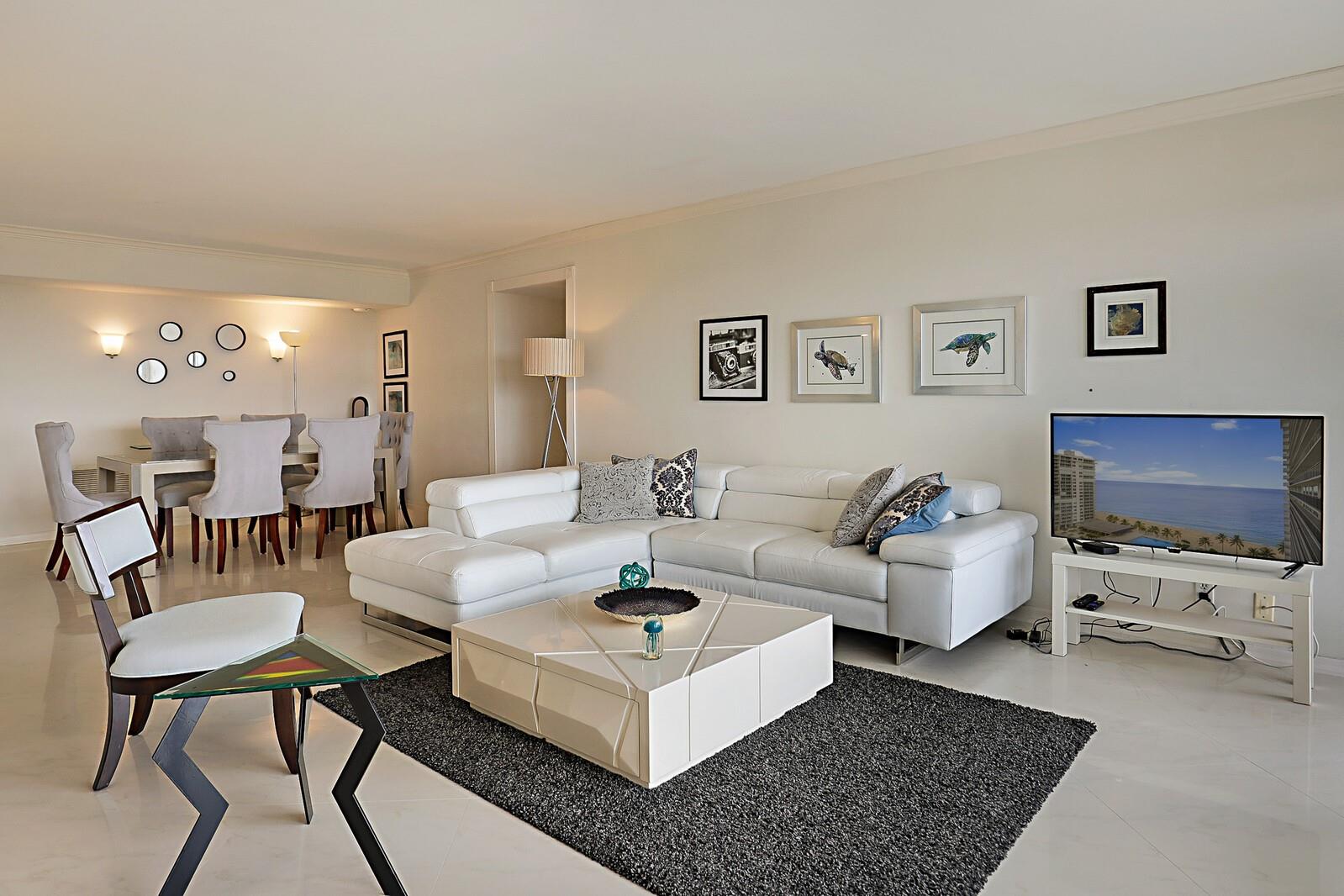 Amazing vibe, view & setting. With nearly 2000 sq ft of elegance this spacious 2/2 high-rise condo will take your breath away. Located in the heart of Ft Lauderdale & right on the Beach. Features incredible sunset & intracoastal views from its enormous private balcony. Right next to semi-private elevator with only two apartments per floor in this "E" tower. Large porcelain tiles throughout with soft premium laminate flooring in the bedrooms. In unit laundry room & washer/dryer. Private & secure storage included. Assigned covered parking & plenty of guest spaces available as well. This well maintained condominium is loaded with all the amenities you would expect from at top notch building. These include pool, gym, sauna, activities room, business center & more. Furniture included.