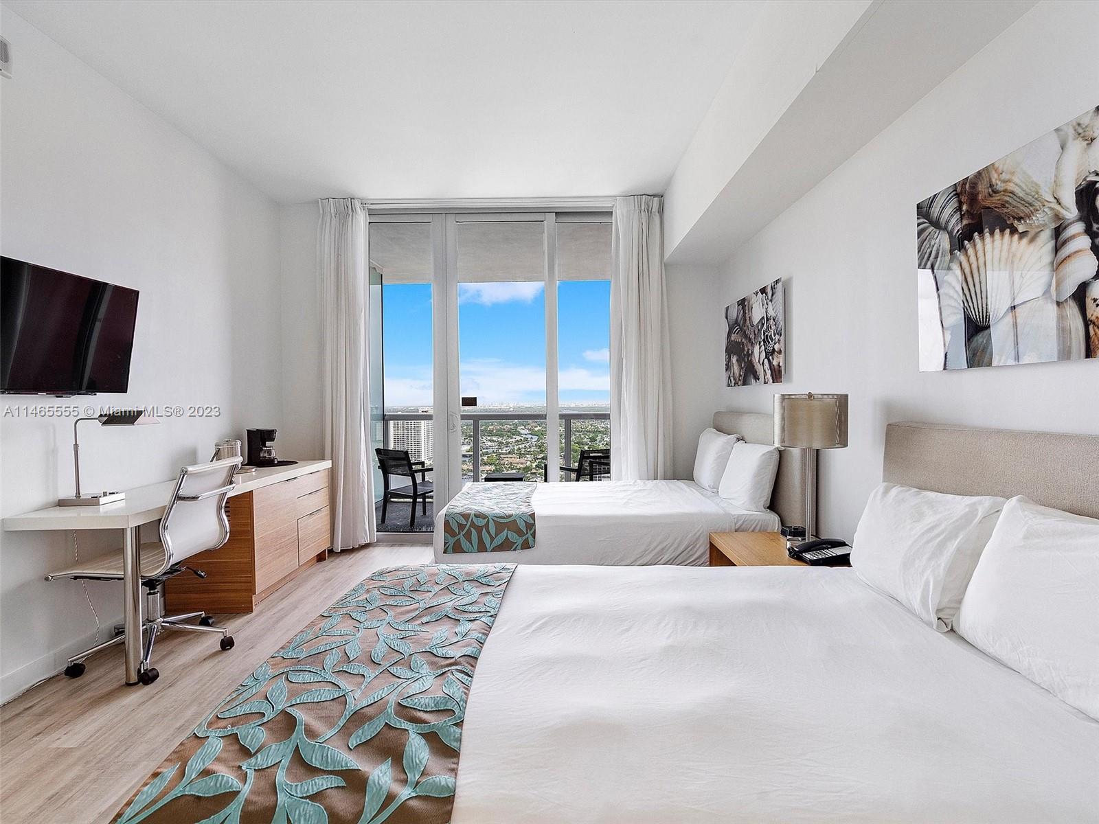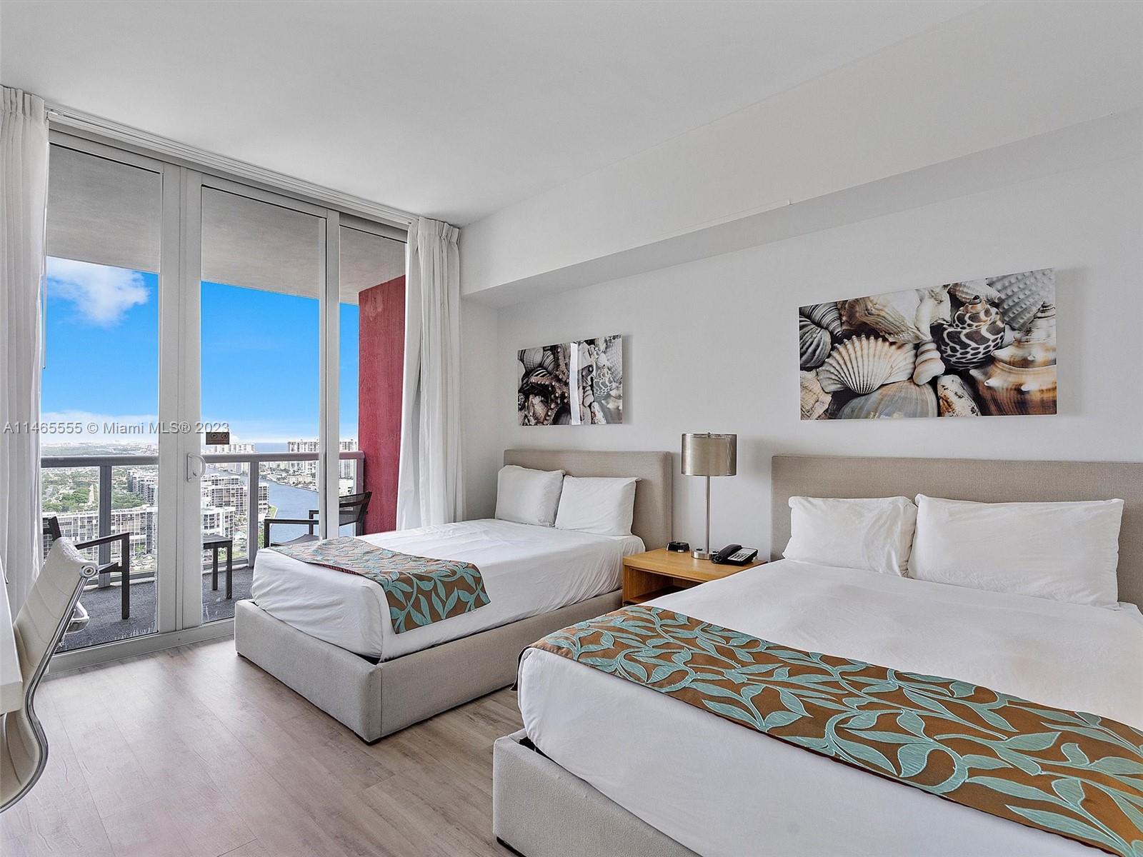 INVESTMENT OPPORTUNITY! Profitable condo-hotel system or self-manage renting through Airbnb. Water view from two spacious balconies on 30th flr, this A+B Units can be rented as a 2 bd/2bath suite, or separately as 1 bd/1bath suite and 1 bd/1bath studio, with separate entrances and high-performing insulation linking doors. A fully furnished kitchen, washer and dryer are installed. Resort style amenities: Rooftop infinity pool with lounge, lower pool, gym, restaurant, valet parking, bike rental, and complimentary shuttle to the beach. Close to the beach, Walmart, daycare, restaurants, and many other community amenities. Short distance to Hollywood Beach Boardwalk, Hardrock Stadium, Sawgrass, Aventura Mall, Hard Rock Hotel & Restaurant, Gulfstream Park & Casino, and much more.