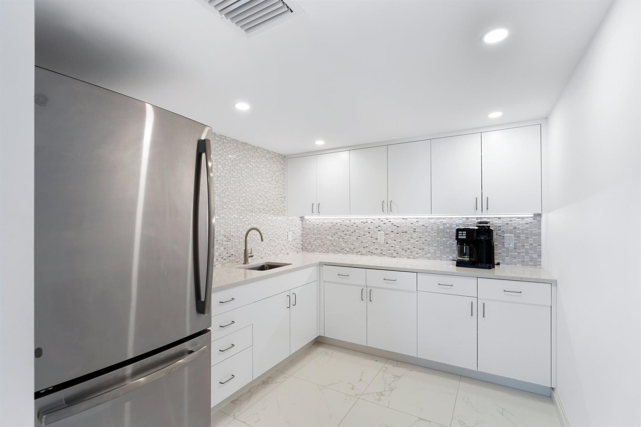 EASY TO SHOW! 1671 square foot 2-bedroom 2.5 bath (300 to 350 sq ft larger than most 2 BRs) at the highly desirable Sun & Surf is a must-see! This residence is renovated and very light and bright. The unit boasts a large wrap around terrace (almost 3X larger than other floor terraces) marble floors, a renovated kitchen, master bedroom walk-in closet, in-unit washer and dryer, and ample storage. The home comes with coveted access to the newly remodeled pool at 130 Sunrise and beach entry at 100 Sunrise. The building has undergone a recent renovation and boasts new common areas such as the lobby, gym, and conference rooms on the lower level.