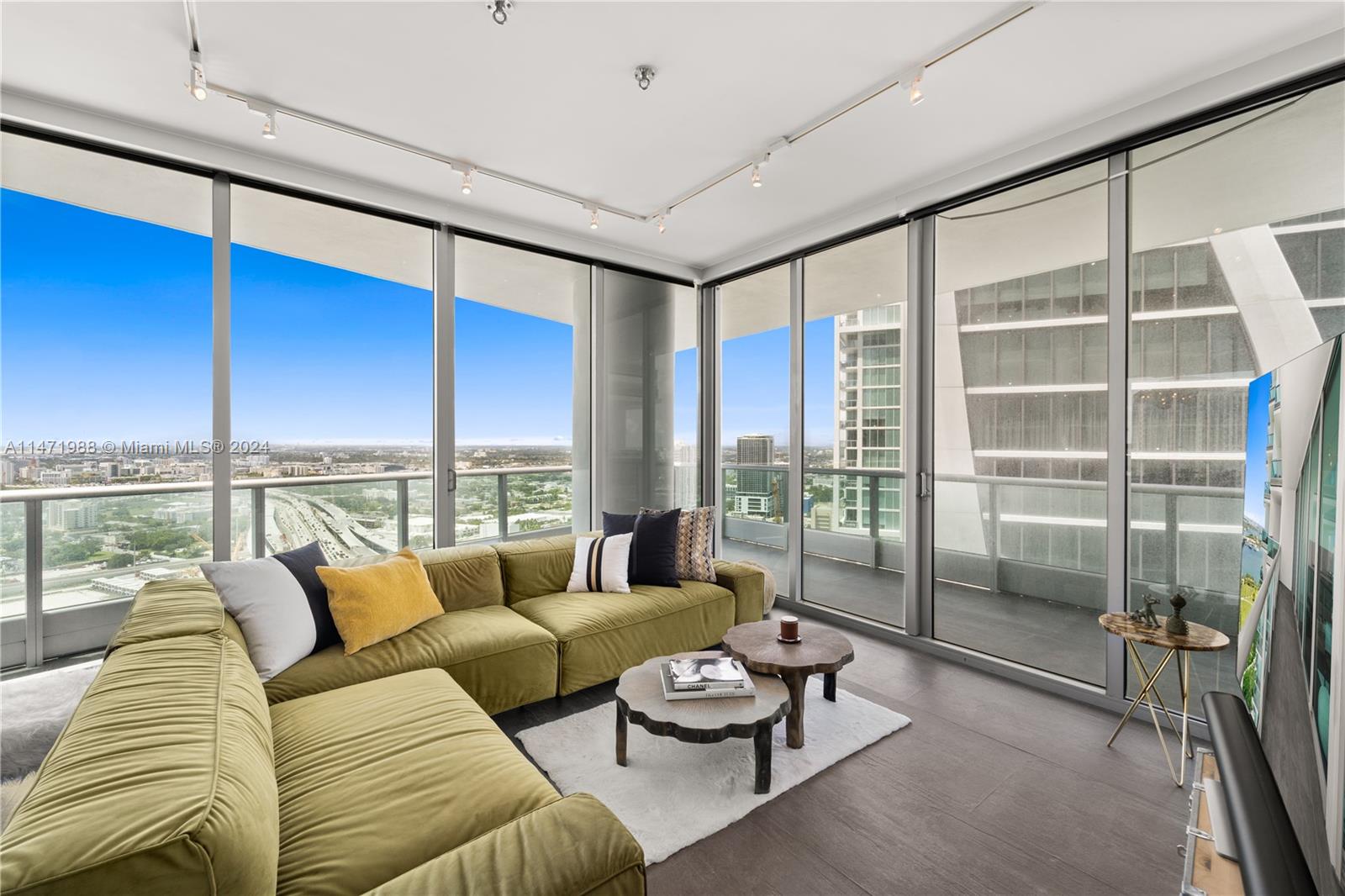 Your new sky home at 900 Biscayne! This 2 bed, 2 bath corner residence boasts bay & skyline views. 1300 Sq Ft of high-end living on Biscayne Blvd with airy open-plan living & dining, floor-to-ceiling windows with new motorized blinds, modern kitchen with new alkaline filter & new Miele washer/dryer, spacious bedrooms & stylish bathrooms. Take in the stunning scenery from the wrap-around balcony. The building offers top-notch amenities: gym, pool & 24-hour security. Prime location with easy access to Miami's best dining, shopping & entertainment.