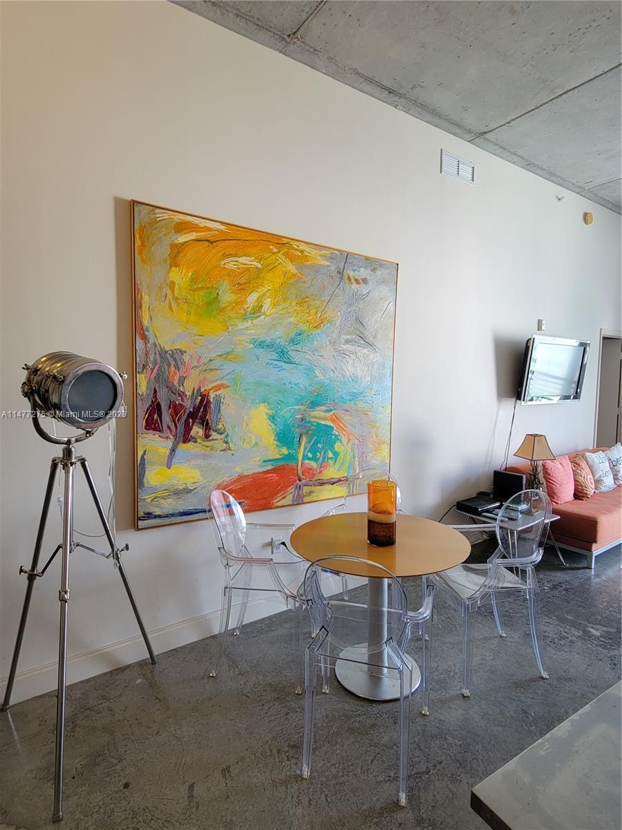 Stunning loft style 1/1.5 condo unit inside this prestigious boutique condo with dramatic 14 ceilings, concrete floors, 2 closets including a walk-in with custom California closet space, W/D, and views of Golf Course from the balcony. The building is nestled around a spectacular lush landscape with tons of privacy and peace of mind with a 24-hour doorman. Amenities include a rooftop pool with city, water, and golf course views as well as a gym and it is pet-friendly. Prime location across from Miami Beach Golf Course, Botanical Garden & Convention Center. Steps to Lincoln Road and the beach. 1 assigned covered parking space.
