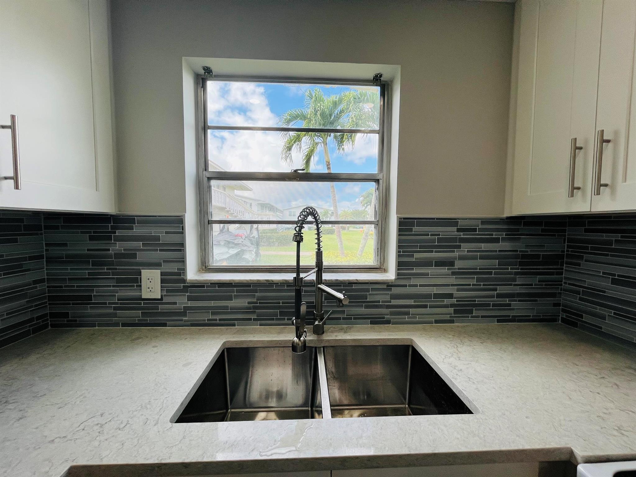 STUNNING UPDATED GROUNDFLOOR CORNER 1 BED 1 1/2 BATH WITH BEAUTIFUL WATER VIEW.. CENTRAL AIR WELL MANAGED ASSOCIATION. Laundry room, assigned parking spot plus visitor parking available; local bus for errands/shopping both within & outside The Village; will sell furnished or unfurnished. COME AND ENJOY RESORT STYLE LIVING IN THIS GATED COMMUNITY FOR ADULTS 55+. Clubhouse with theater, shows, movies, craft and card rooms, billiards, aerobics, yoga, and dance classes. GREAT LOCATION: close to shops, restaurants, PBI airport and beaches.