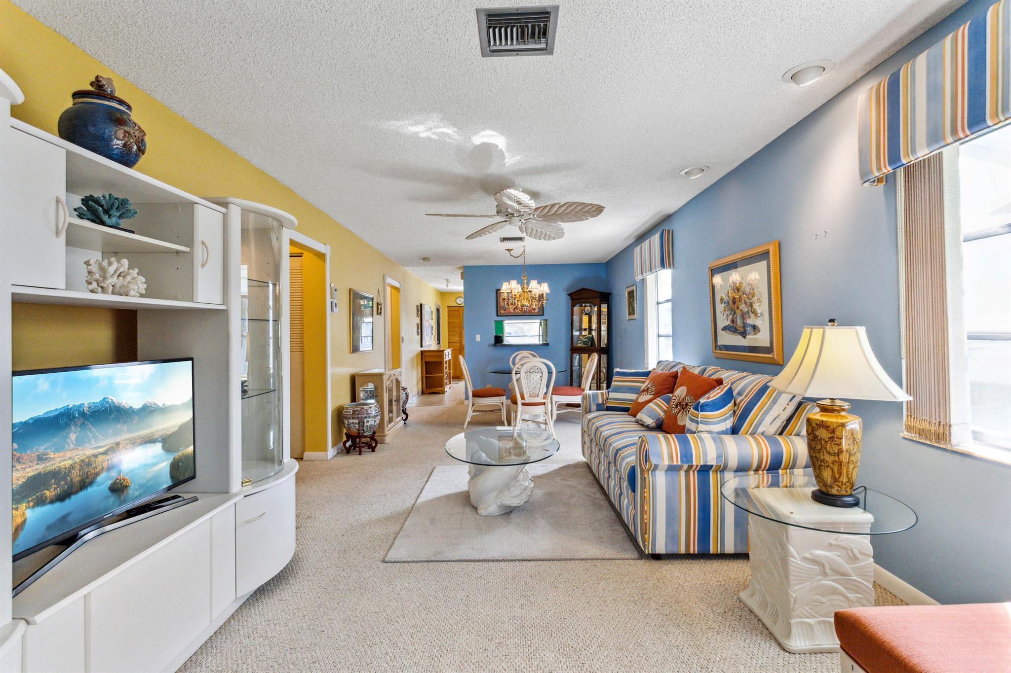 This home can be your key to longevity as you take advantage of all the walking trails surrounding the property. This sunny Florida 2 /2 home has been lovingly maintained inside and out, boasting a large eat in kitchen with a deep pantry, LR and DR lead off to a sun room and back patio to enjoy! Generous bedrooms have ample closet space with impeccable bathrooms! Pets less than 20 lbs are welcome! Please, come see for yourself enjoying this centrally located community near Tangeer outlet mall, the beaches, airport and great dining around downtown west palm beach and start living your best life!This gated community has stunning amenities from the 18 Hole Golf Course, Clubhouse, Pool, Jacuzzi, Gym ,Sauna, Billiards, Ping Pong, Library, Card Room, Tennis, Shuffleboard and so much more.