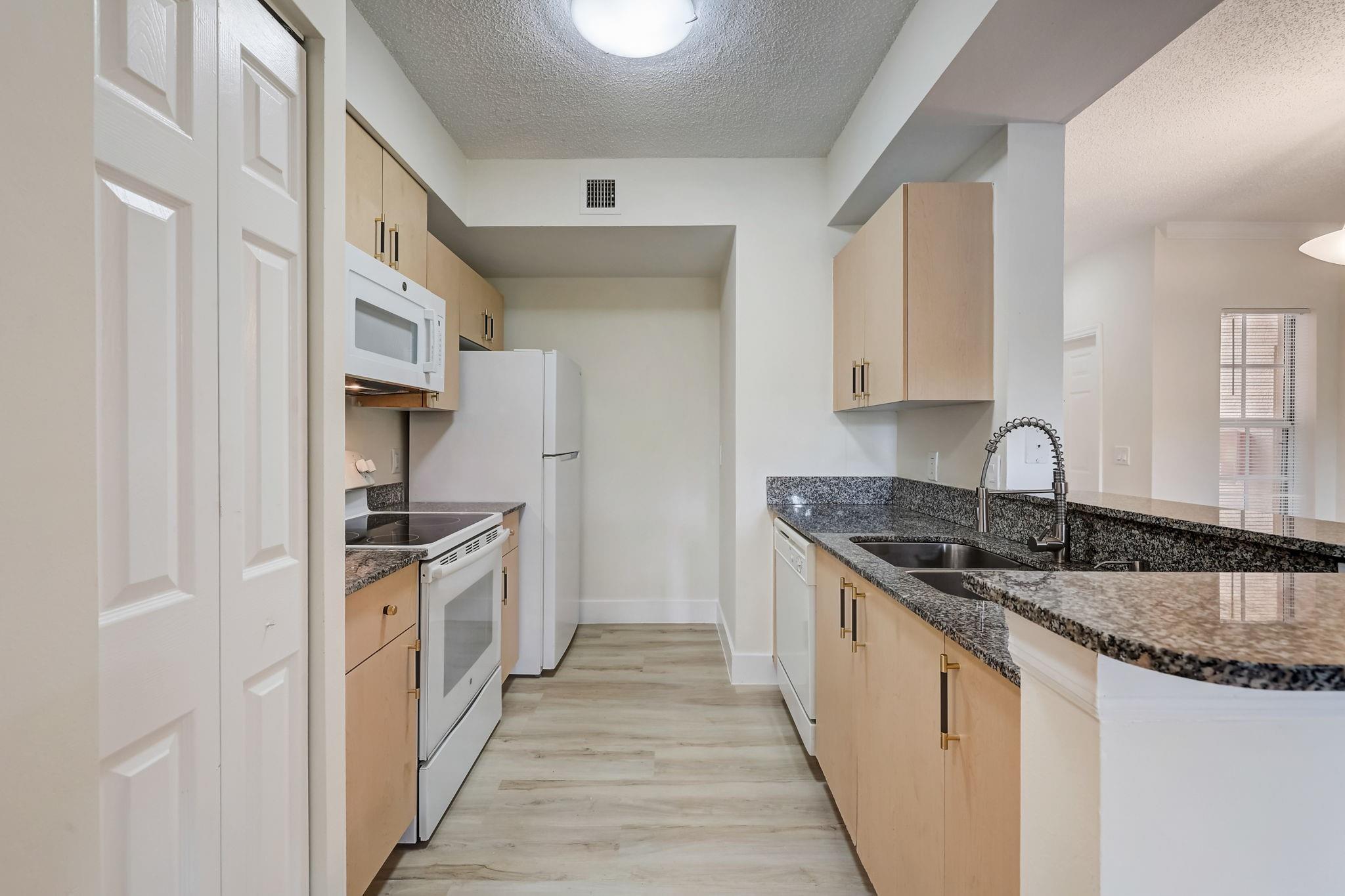 Gorgeous renovated ground floor condo in the ultra-desirable gated community of Aventine! This newly-updated unit features light beachwood-style vinyl flooring, fresh paint throughout, brand new A/C and much more. The condo is very spacious, has lots of natural light and has a private 1 car garage and an open porch with a lake view. Aventine is a resort-style community with two pools, a club house, gym, tennis courts, BBQ area, playground & walking trails. The fantastic location boasts easy access to major highways, grocery stores, restaurants & entertainment. This is a perfect opportunity for investors who want to rent right away or end users.
