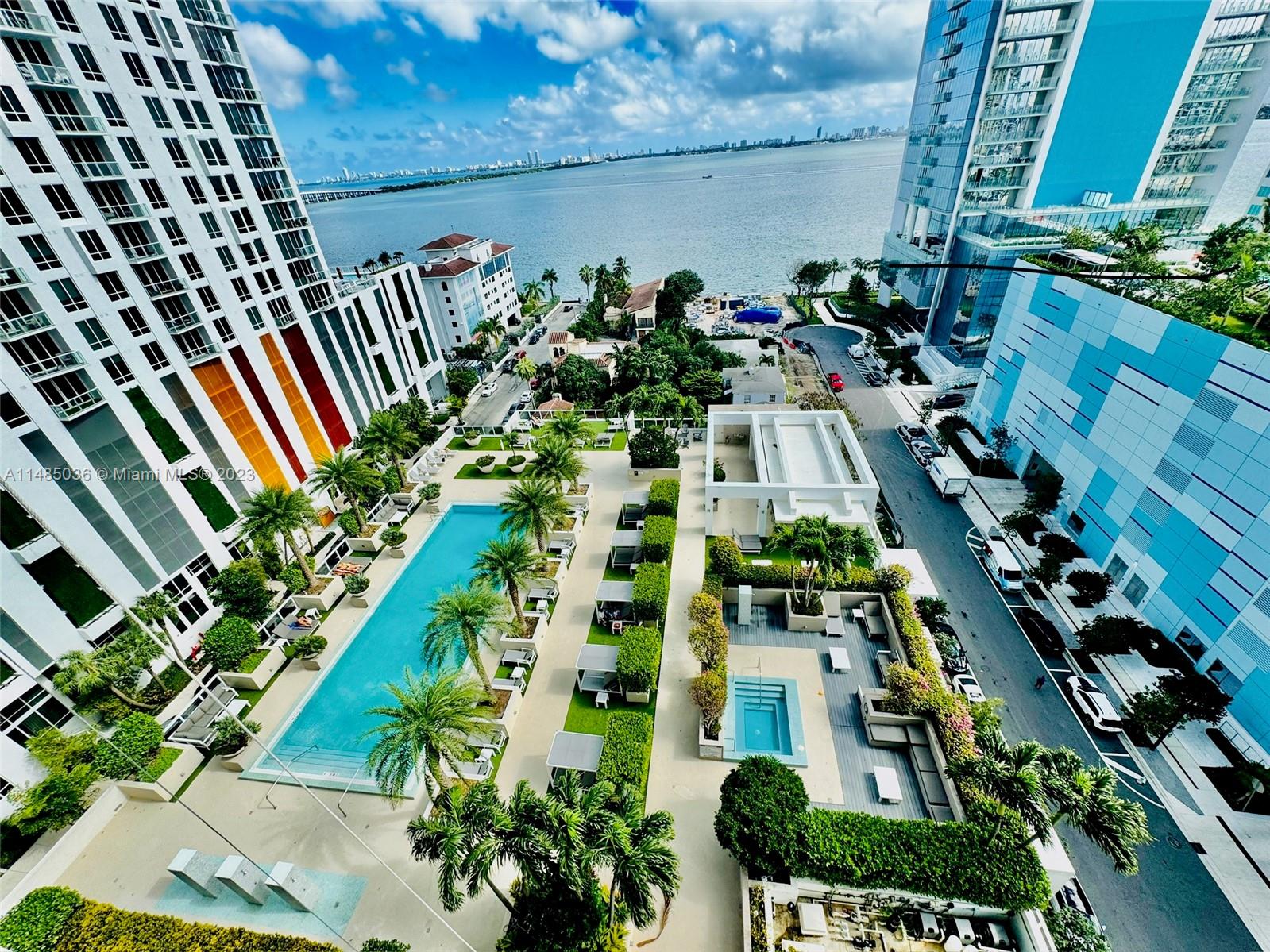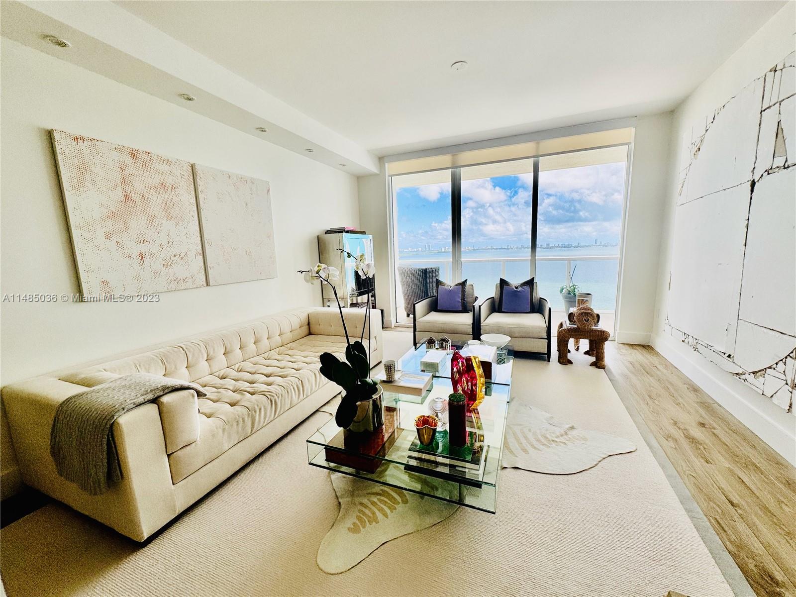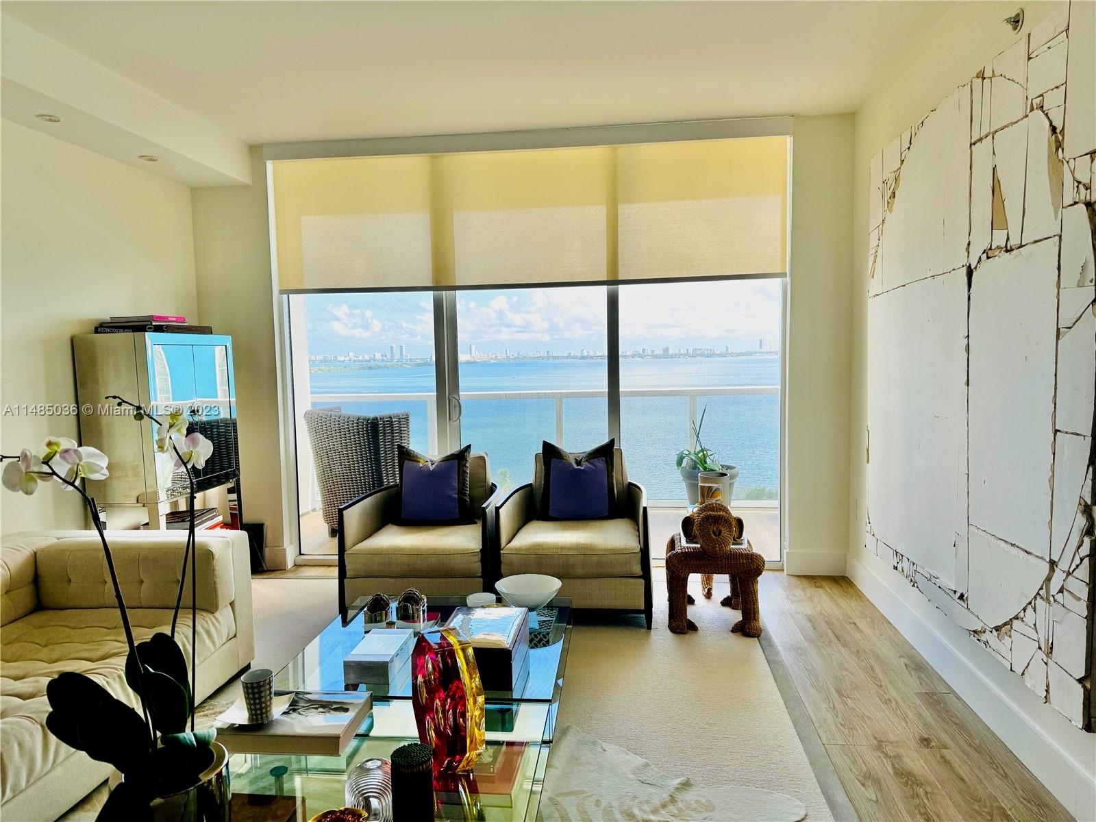 Introducing a stunning 3-bed residence in Bay House, East Edgewater. Captivating Biscayne Bay views greet you in the living room and primary bedroom, while guest rooms provide beautiful sunset scenes. A private 7-foot terrace offers outdoor relaxation with panoramic bay views. High ceilings and abundant natural light create a spacious feel. The kitchen boasts Italian cabinetry, stone countertops, and top-tier appliances and comes with two parking spaces. Amenities include an infinity pool, summer kitchen, day beds, outdoor lounge, kids play area, yoga room, and fitness center. Only 160 units and semi-private elevator. Close to the Design District, Brickell, and Miami Beach. Immerse yourself in the vibrant dining scene, boutique shops, and cultural offerings of the area.