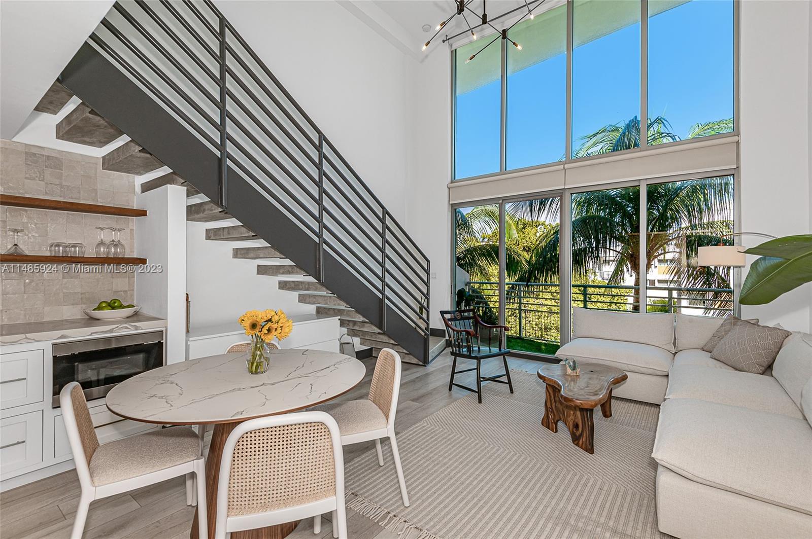 Stunning penthouse with a private rooftop deck at the Absolute Loft designed by Kobi Karp. The 18-foot ceilings make the space feel incredibly open and luxurious. The attention to details in the remodeling, from the custom kitchen to the handmade Moroccan tile backsplash to the smart oven, reverse osmosis water filter, custom reclaimed wood shelves over quartz counters, custom milled bathroom vanities and custom doors show a sophisticated touch. Both the newly added large pantry and storage closet downstairs allow for ample storage. Large master bedroom and bath now with two custom closets located on the second floor. The private rooftop with 360-degree views with water, electric, artificial turf is a major standout, perfect spot to enjoy the Miami Beach scenery.