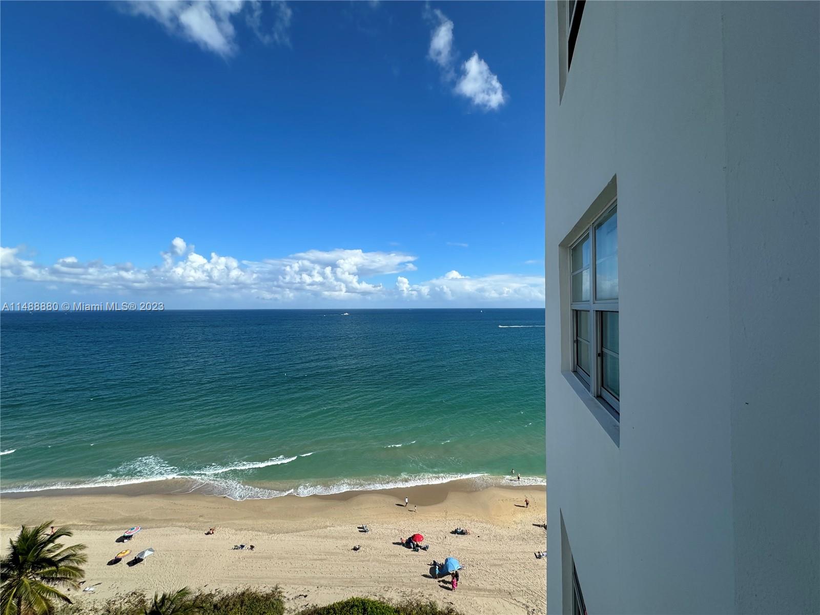 Views views views!!! Stunning ocean views from every room! This spectacular corner unit, Pompano Beach condo, currently configured as a spacious one-bedroom plus den, is a beach lover's dream come true. Nestled along the pristine shores, this property offers breathtaking panoramic views of the ocean and direct access to the sandy beaches just steps away from your front door. The condo features a thoughtfully designed layout with spacious bedrooms, allowing for a comfortable and cozy living experience. Enjoy the soothing sounds of the waves from your balcony and deeded beach access. One of the unique advantages of this listing is the remarkably low HOA fees, providing exceptional value for coastal living. Enjoy the convenience of in-unit laundry with the BRAND new LG washer/dryer.