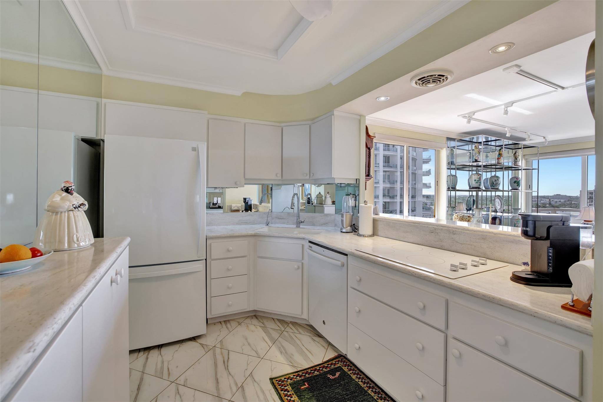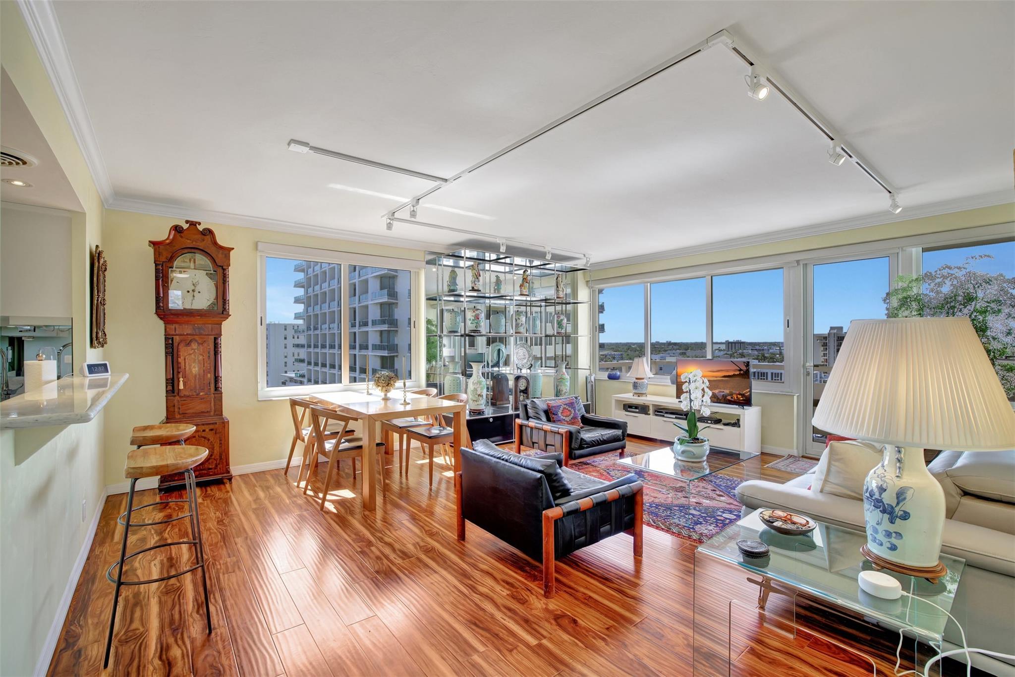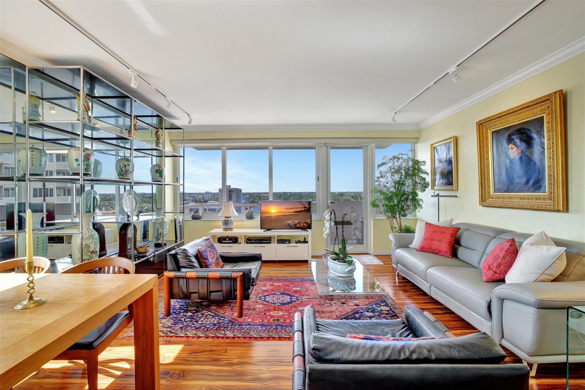 Step into this beautifully decorated FURNISHED corner unit with the most spectacular views of direct Intracoastal and downtown waterways/skyline and you will see why this is a very unique and desireable unit. This upgraded unit features a stackable washer/dryer, corian countertops with a brand new stove top,a built in murphy bed, hurricane impact windows, new a/c unit June 2023, just to name a few. The building is under restoration, will be completely re-painted with new glass balconies. The building offers a large heated pool, a newly renovated gym, a community room, and additional storage. With 24 hour security, on site management. This 55+ community is a short walk to our beautiful beach, great restaurants and an abundance of wonderful entertainment and nightlife.