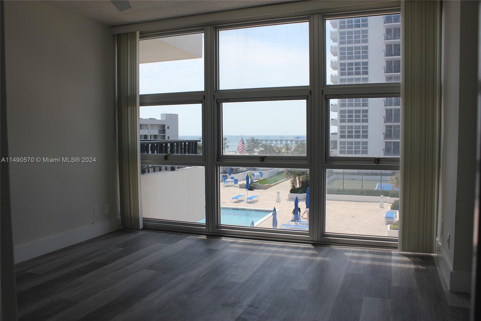 Amazing panoramic views of the ocean and pier with breathtaking sunrises and sunsets from this 6th floor unit. Enjoy a morning coffee at sunrise or a sunset unwinding from its balcony. Stunning views from all the rooms! It includes two assigned garage parking spaces. Direct access to the beach. Dues include water, sewer, trash, roof, exterior, building insurance, cable/wifi. Completely Renovated in 2020, new water heater, impact windows. It features kitchen with quartz countertops and stainless-steel appliances, 2 primary bedrooms, walk-in closets, vinyl floors throughout. Resort style amenities including: 2 Olympic size heated pools, Tennis, Pickle ball and Bocce courts, grills, gyms, sauna, bike and storage rooms, party room, library, car wash area and more.