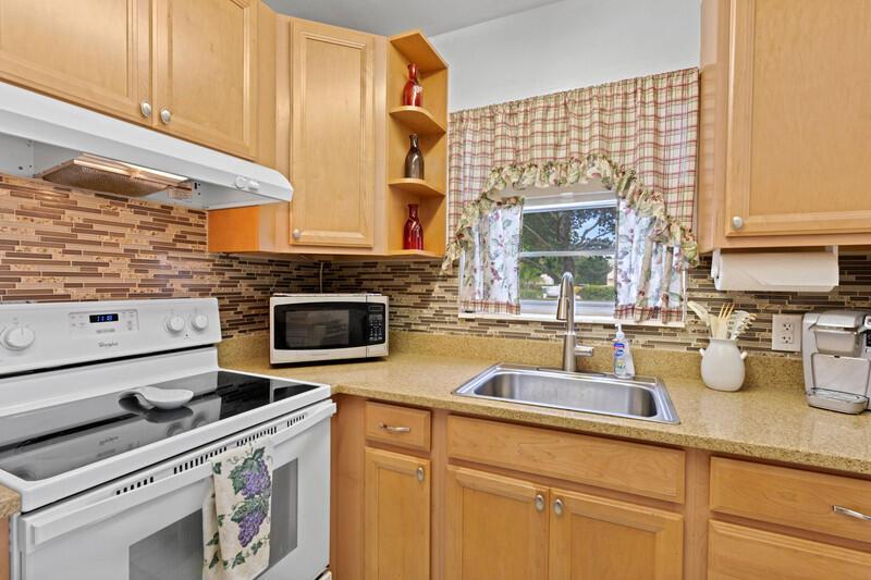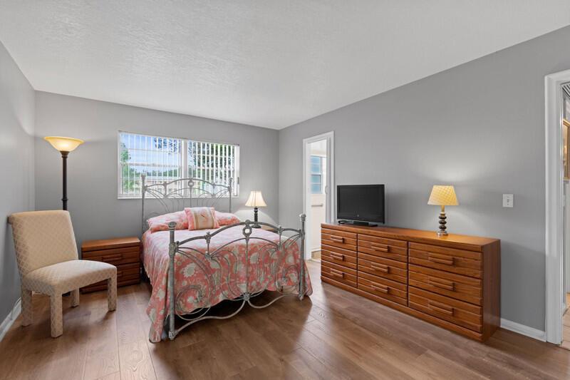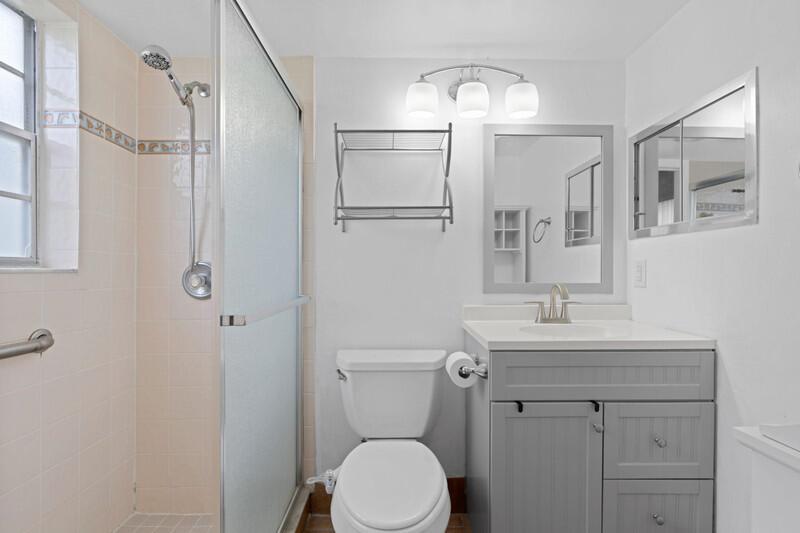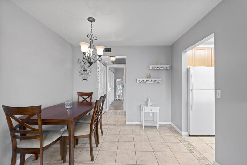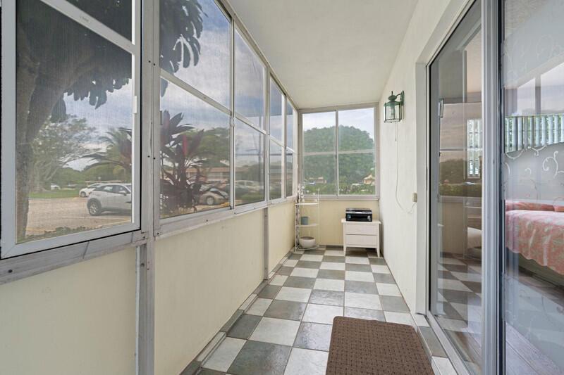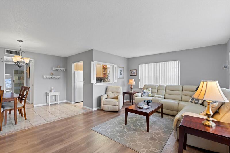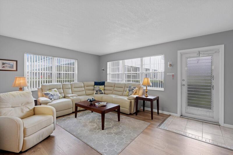 This lovely 1 bedroom & 1 1/2 bath corner first floor condo with central air is located in a gated Active 55+ Century Village West Palm Beach. Its nicely furnished with many upgrades such as a kitchen with granite counter tops, pantry/linen, laminate and tile flooring. The Master Bedroom has its own bathroom with shower and sliders which lead to an enclosed patio with walkway to the close by assigned parking space. Dorchester has its own area pool which is nearby.