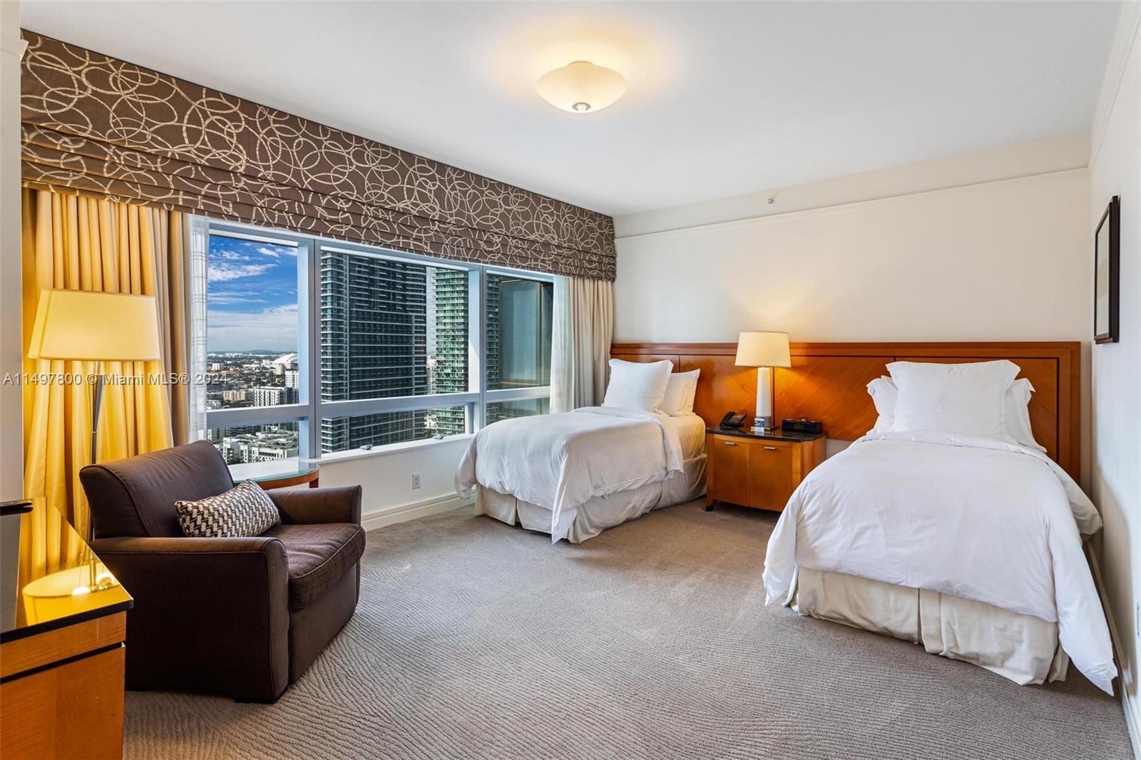 Escape to timeless luxury at the exclusive Four Seasons Brickell. This furnished 2 bedroom and 2.5 bathroom unit is located on the 36th floor (top floor of residence units) with views of Biscayne Bay, Key Biscayne bridge, and City views of Brickell & Marlins Park. Full kitchen with wood paneled appliances, office nook area, plenty of closet space and washer & dryer. One assigned parking space with access to valet parking and in addition one assigned private storage unit. Access to all first class amenities that the Four Season has to offer including 24/7 Equinox gym, pools, restaurants and spa. This is the epitome of luxury in Brickell. Great investment vehicle as it can be included in the hotel rental pool, or rented privately through Airbnb, VRBO, or reserved for family and friends.