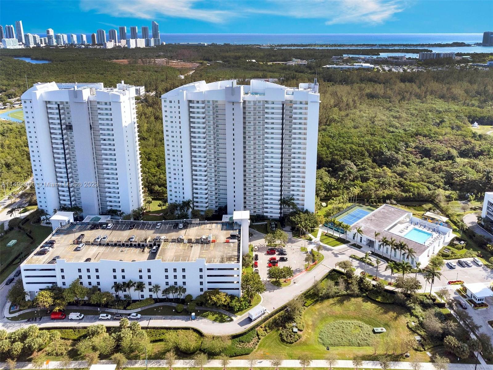 Location, location, location! Beautifully remodeled condo 2 bed/ 2.5 bath, located in a desirable area with panoramic skyline, bay, ocean and Oleta State Park views. High ceilings, modern open concept. Upgraded kitchen with SS appliances & formal dining room. Master bedroom & bathroom features two spacious walk-in closets, a spa tub & double vanities. The 2nd bedroom includes a walk-in closet & private bathroom. New porcelain white floors. New washer/ dryer. Amenities include: gym, tennis courts, clubhouse & dog park. Pet friendly. One assigned parking. Across the street from Costco, 5 min drive to Aventura Mall, close to the beach & restaurants. A+ Schools nearby. Area w/ great appreciation projection.