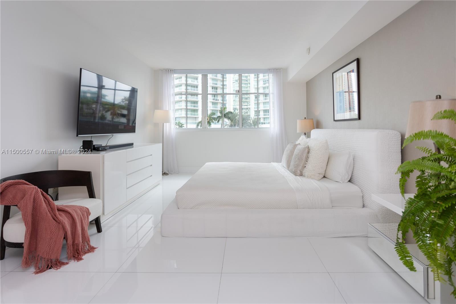 WATERVIEW 3BD/3.5BA CONDO. UNIQUE LAYOUT and SPACIOUS CONDO! One of the largest units in the Building (1785 sq ft). Elegantly furnished, white tile flooring and white kitchen. 2 MASTER BEDROOMS! Parking: Assigned spot on the same floor (don't need to use elevator), +1 free valet. Quiet Ambiance: Sole unit in wing, no street noise. Balcony: Exceptionally private balcony with a stunning bay view. Rain-friendly ceiling ledge. Amenities: Heated pool, gym, sauna, jacuzzi, conference room. Location: 3-min walk to the beach, Beach Club service available. Special Advantages: - Spacious main master bedroom. - Hurricane-proof windows. - Spacious closets in every room. - Large, modern white kitchen. - Freshly painted interior. - Brand new washer and dryer.