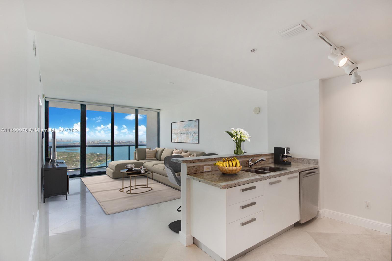BEST 1 bedroom 1.5 bath available at this pristine, bright, and spacious unit on the 32nd floor of east Edgewater. Custom window treatments, custom walk in closets, high-end appliances, spacious living and dinning area with marble floors and natural light everywhere. Large deep balcony in this full service building only minutes from Downtown, Midtown, Wynwood, Design District, Beach and Brickell. 1 parking. MUST-SEE. EASY TO SHOW!