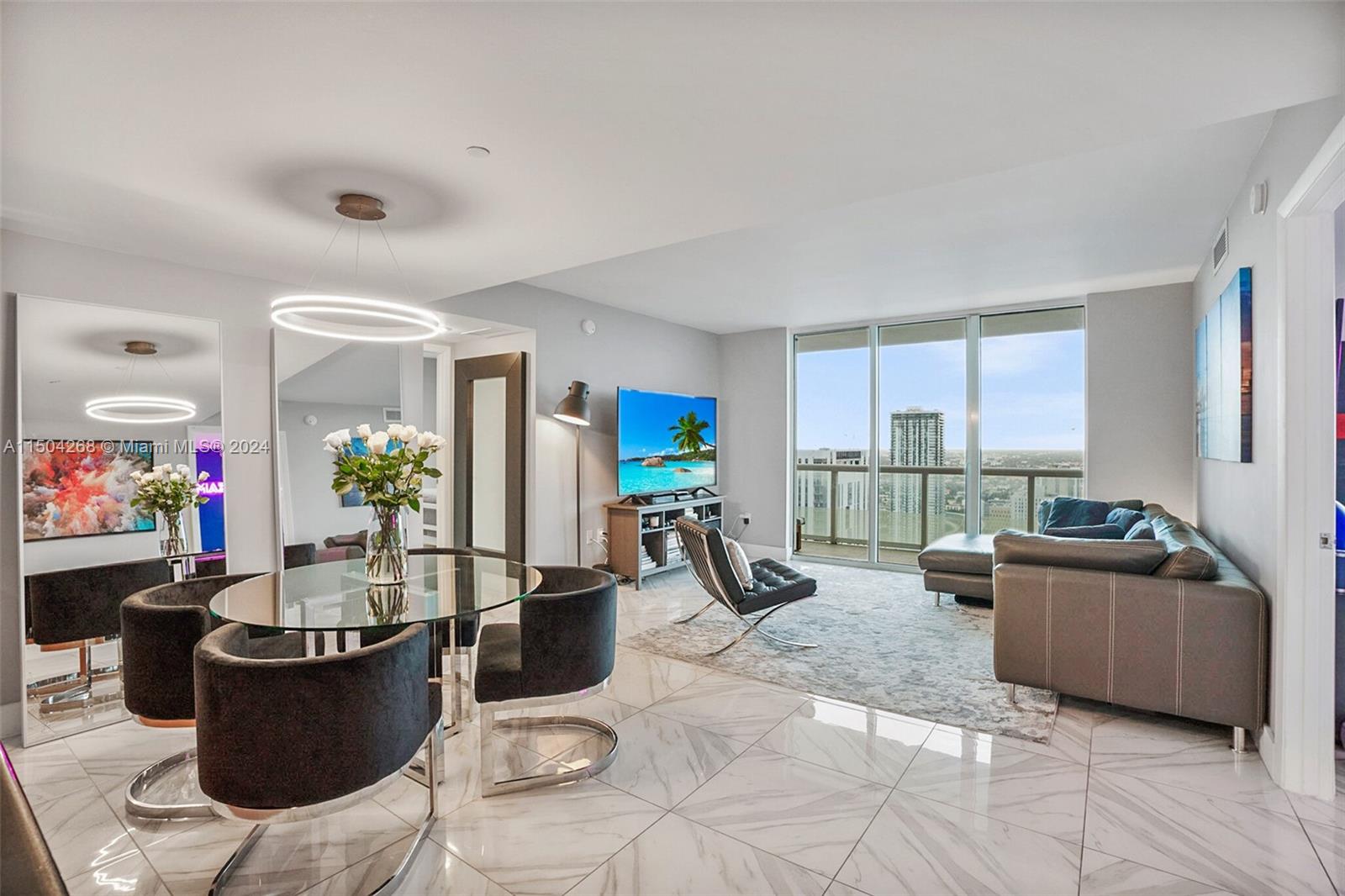 This 46th FL corner unit at 50 Biscayne features 2 Beds, 2 Baths w/ a large wraparound balcony facing South & West. Enjoy the sunset year-round with sweeping unobstructed views of the city on one side & partial bay views on the other. This split floor plan features an open kitchen/living room layout, floor-to-ceiling impact windows, HomeKit/Alexa/Google Home switches/controls, & 1 garage parking. First-class amenities include a 24-hour concierge, fitness center, sauna & spa, infinity pool & jacuzzi w/ cabanas, social room, & valet parking. Located in the heart of Downtown, with easy access to Miami Intl airport & Brightline station. 1 block from Metromover/Metrorail. Close to Arena, Perez Art Museum & Arsht Center, the finest restaurants, Whole Foods, and shops at Brickell City Center.