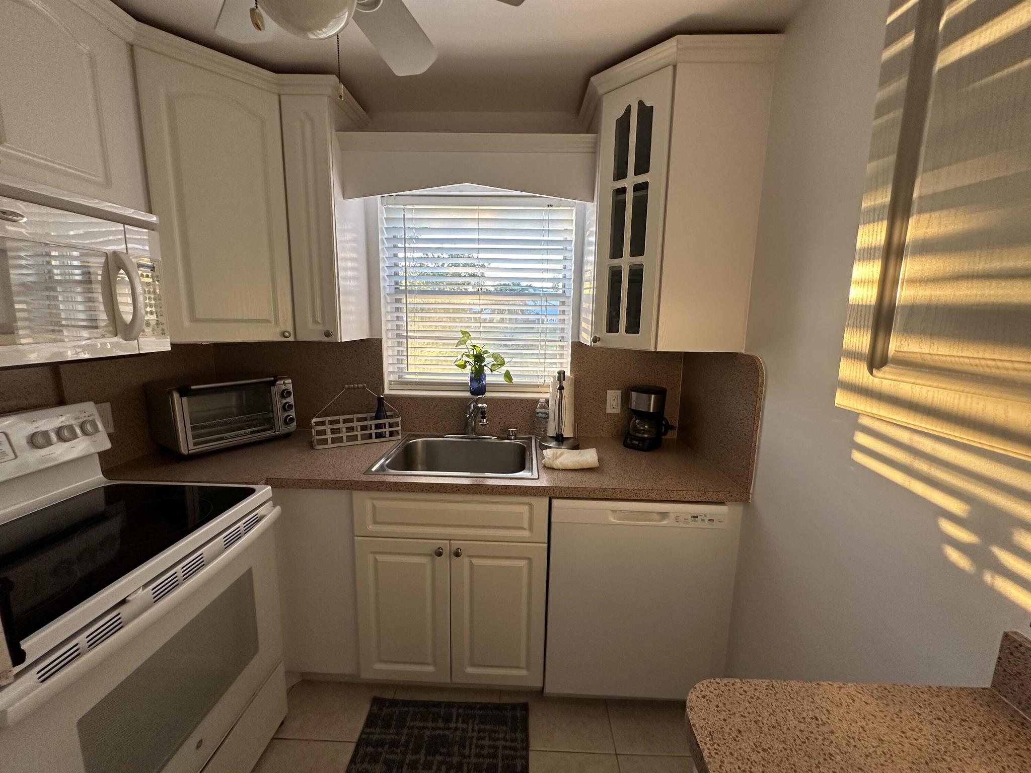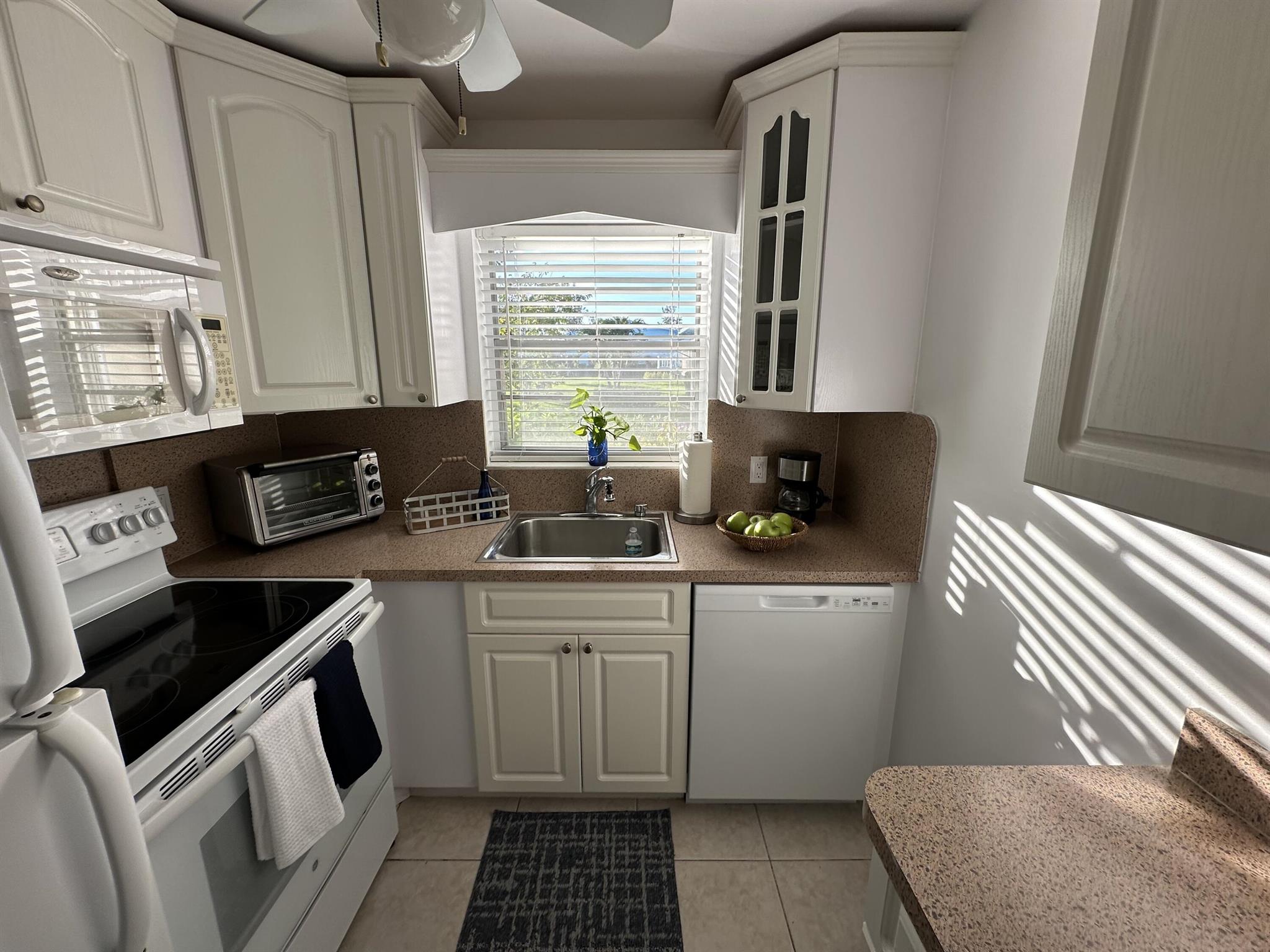 PRICE IMPROVEMENT! One of Lowest Condo Fees & sought after locations in CV ! New Roof & a full-on Concrete Restoration, complete in Feb/24 w/ upcoming painting of bldg. *All assessments for these major upgrades (at $8,000) are being paid by Sellers! Best deal in the long run. This 1st fl, Corner unit w/ Water View is a freshly painted condo w/ ceramic floors throughout. Sunny patio w/ rear entry to the condo, directly from your parking spot. Comes w/ updated cupboards in the kitchen & bath areas & a walk-in shower in the master bathroom. Newer Central A/C, recent Hurricane Shutters, dishwasher & tastefully furnished which is negotiable. *Camden F is a progressive Association w/ future beautification in common patio area. Take advantage & have a Peace of Mind w/ low Camden F mthly fees