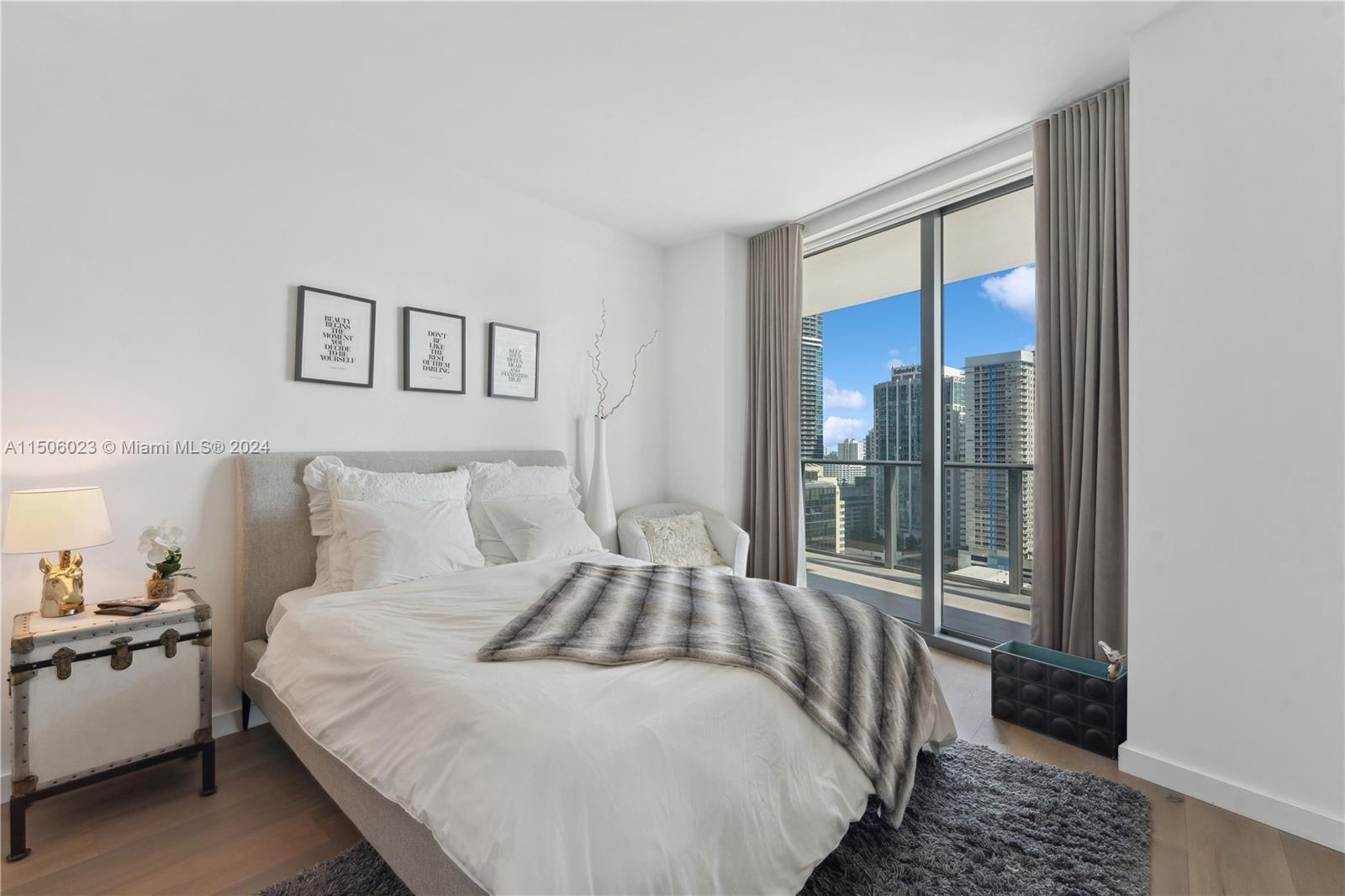 Don’t miss the opportunity to own this FULLY FURNISHED & EQUIPPED 3 BR east facing apt w/stunning city & partial bay views. Original floor plan w/den was converted to create a 3rd BR but could easily be modified. Plenty of bar/counter seating & open floor plan. Primary bath features tub, shower & dual sinks. Stackable washer & dryer in unit. SLS offers first class amenities & the convenience of the SLS Hotel component for your guests. Great location within Brickell area w/ east highway access. Safe & vibrant walking neighborhood with every imaginable convenience around you.
