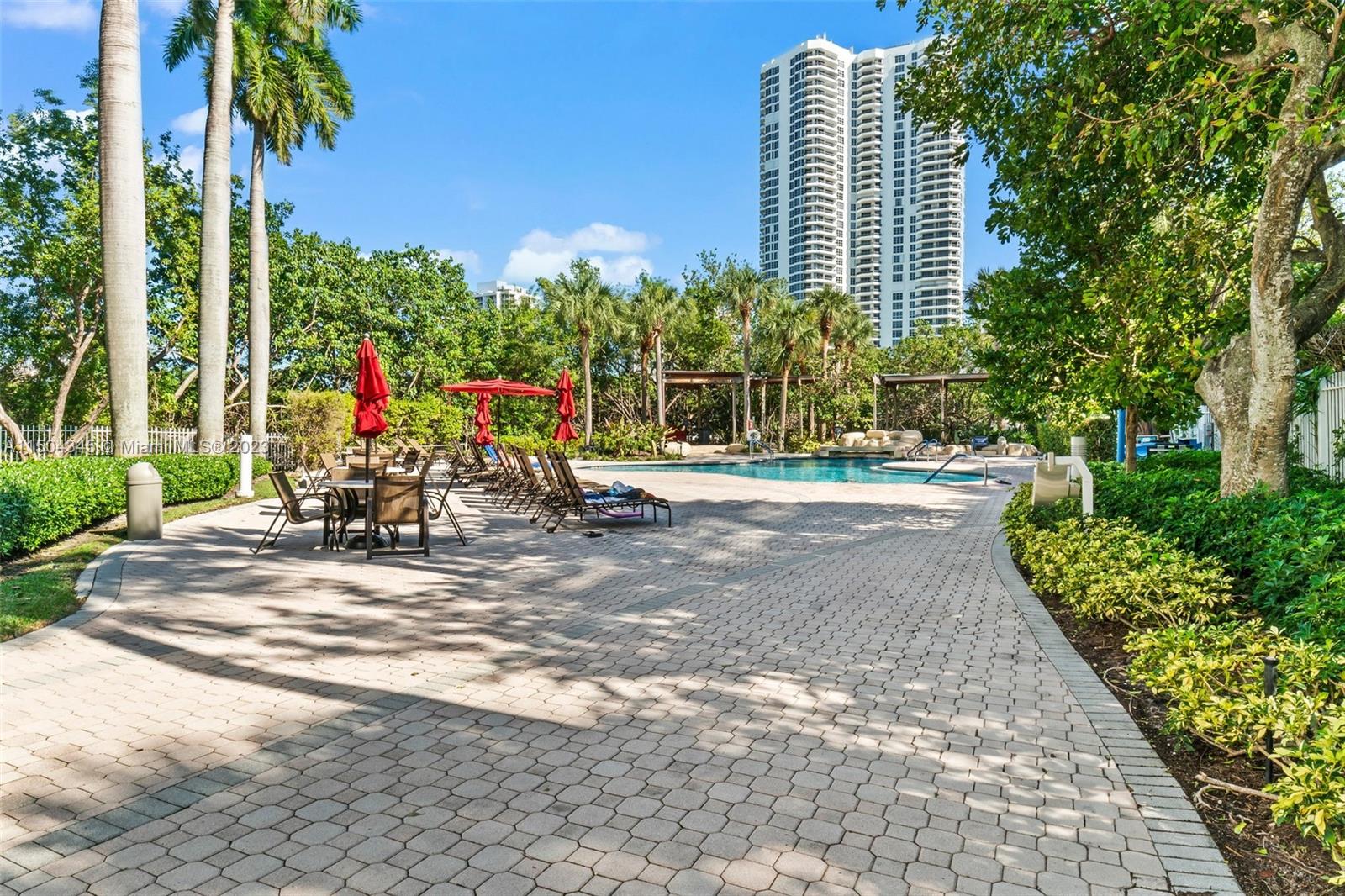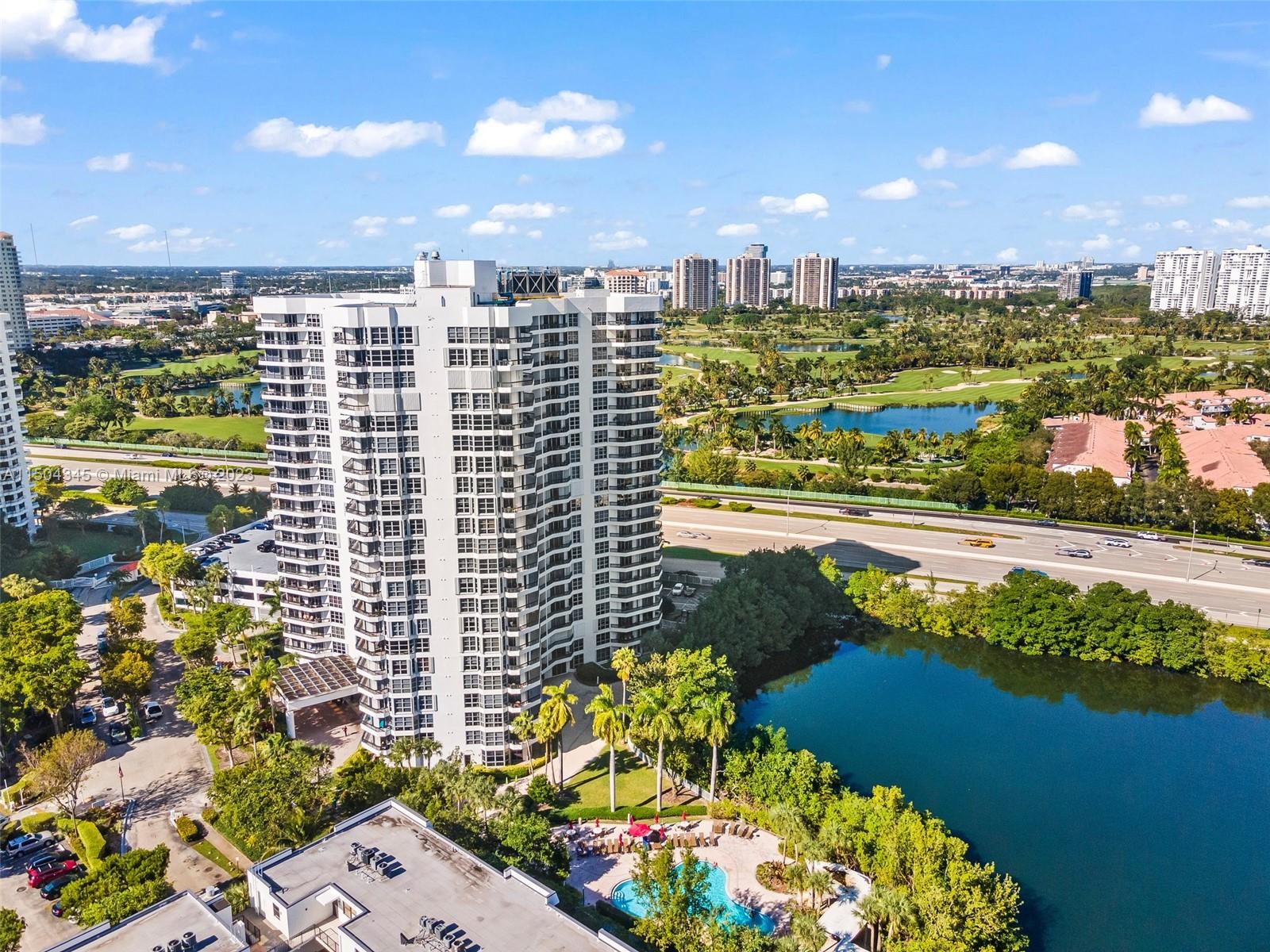 Spacious 2-Bedroom 2-Bathroom at Mystic Pointe Tower 600 condo with Turnberry golf course and skyline front-facing panoramic views. The interior features wood floors, high ceilings, and granite stone countertops. A large open living/ dining area and gourmet kitchen that has every appliance and under-counter lighting. The primary bedroom features an en-suite bathroom with a tub and walk-in shower with wall wall-mounted new fixture. Telescoping sliding doors that open to an outdoor, spacious balcony for seating. The entire property is gated and walled with a full-time doorman at the building. Pool, jacuzzi, BBQ, gym, game room, community room and playground. 7 lighted tennis courts, 4 lighted pickleball courts, dry cleaning, mini market, salon, restaurant, and marina. Close to the beach.