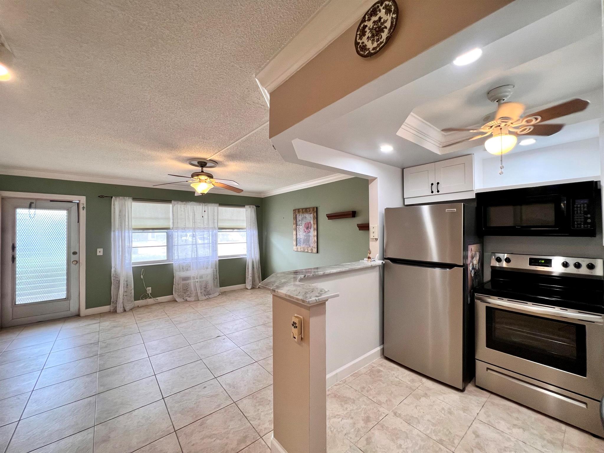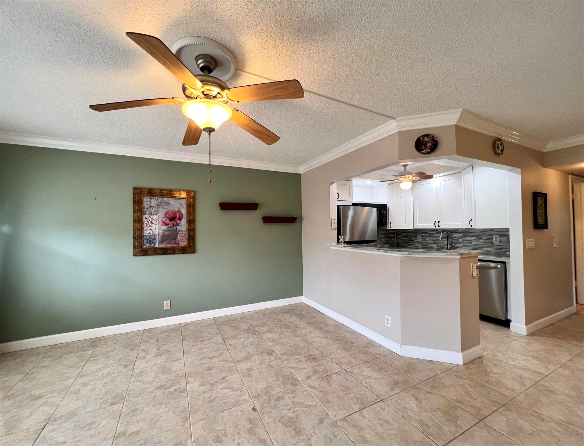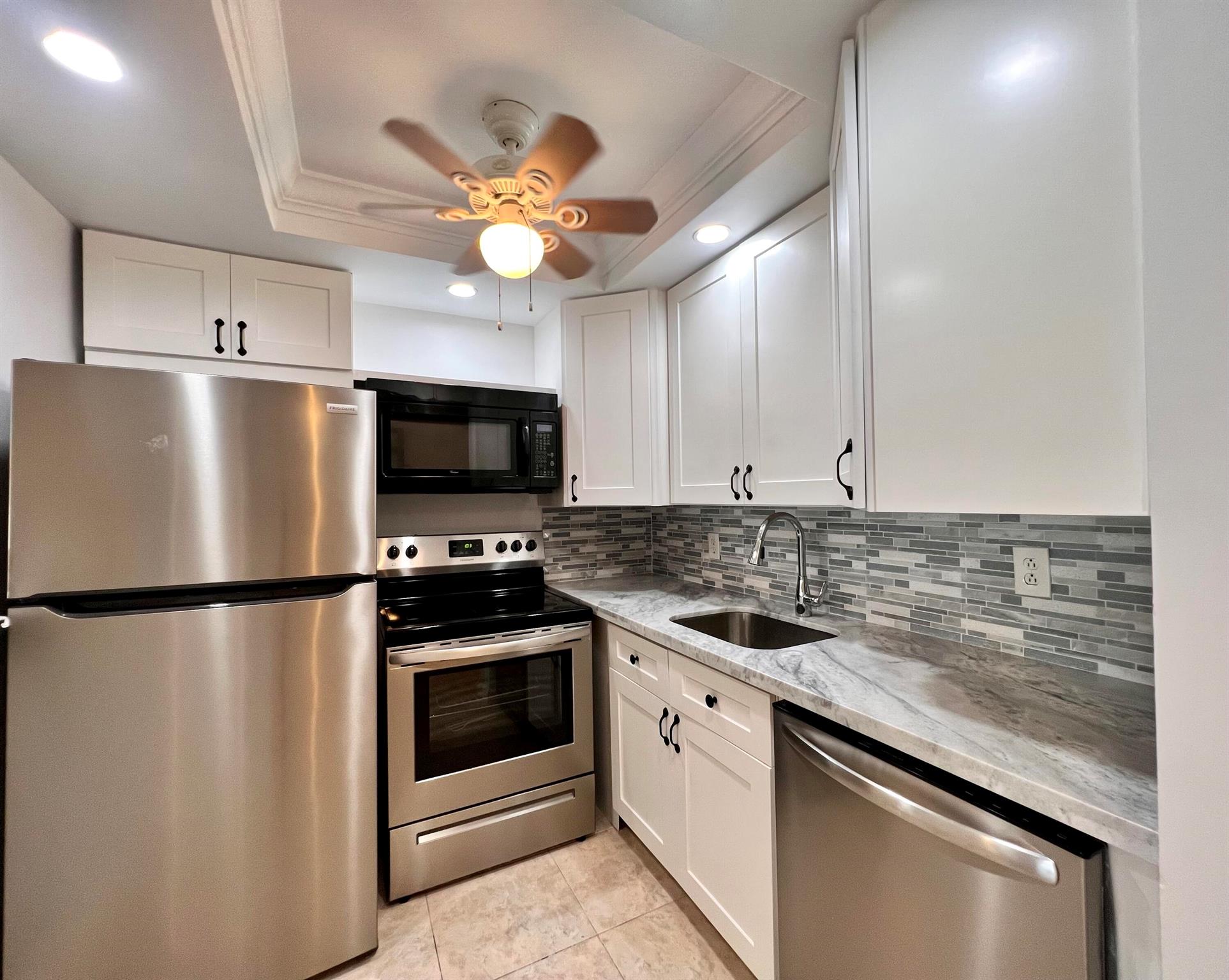 SPECTACULAR WATER VIEWS IN 55+ CENTURY VILLAGE! Lovely & Updated FIRST FLOOR 1/1 With Some Of The Best Water Views In Century Village. Pretty Open & Updated Kitchen With White Shaker Style Cabinets, Granite Counters, Tile Backsplash, High-Hat Lights, and Stainless Appliances - Including A Dishwasher! Updated Bath With Step-in Shower. Decorative Crown Molding In The Living Area & Kitchen. Neutral Tile Flooring In Living Area. Enjoy The Beautiful Water Views From The Bedroom & Lanai. Accordion Shutters Front & Back. Sold AS IS. Wonderful Building With A Water Side Resident Patio. Convenient Location Close to The Kent AND Somerset Pools! Century Village Is a Resort Style 55+ Community With So Much To Offer...