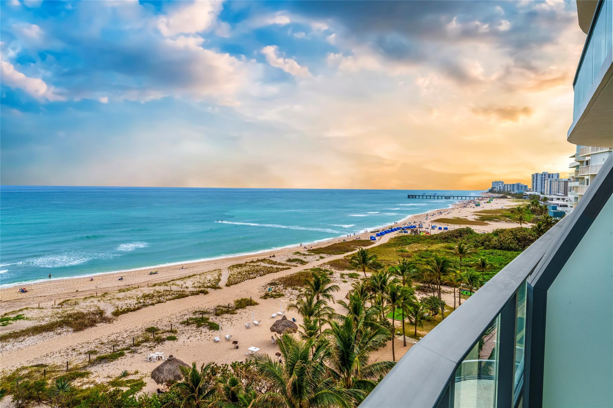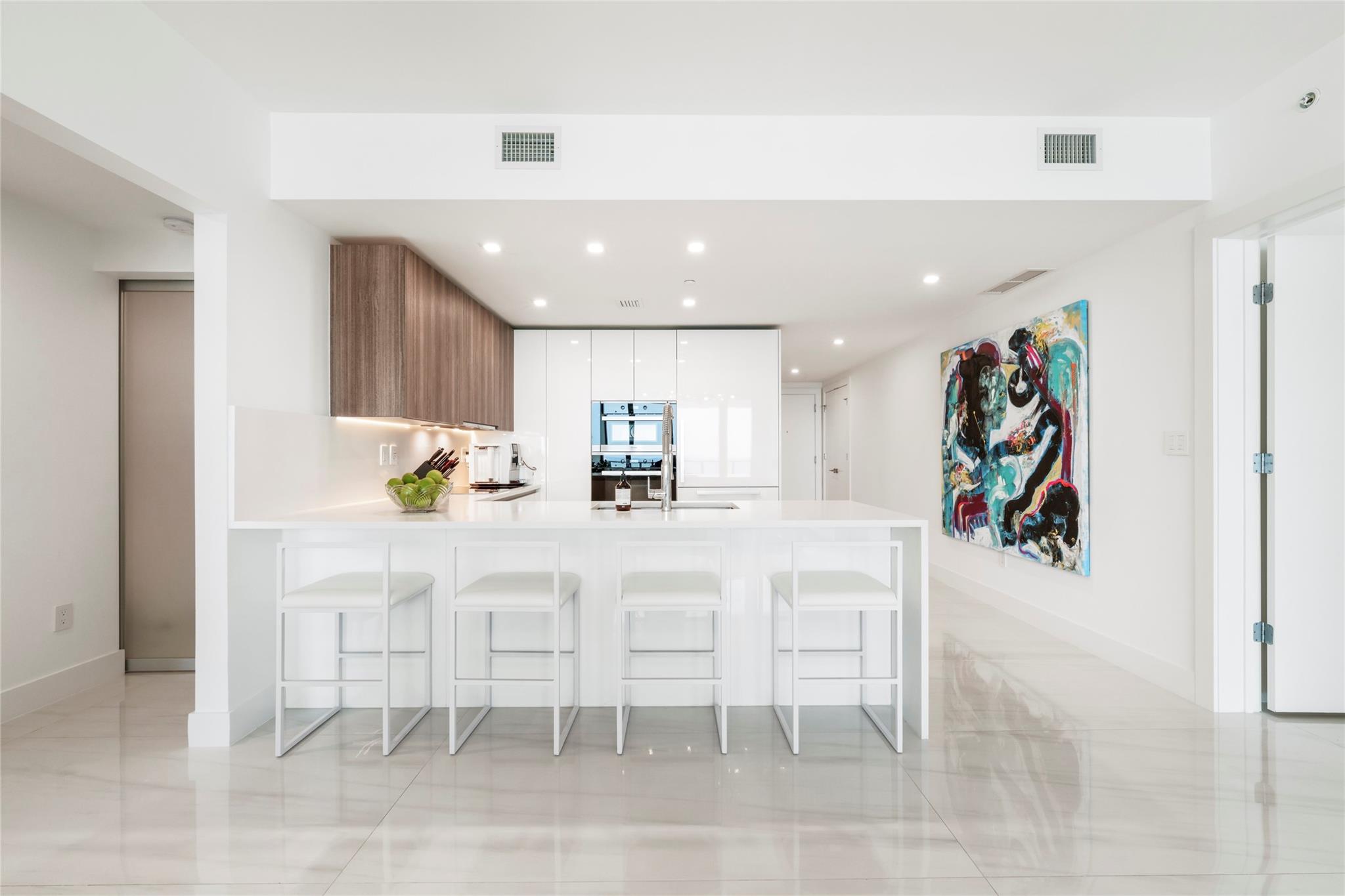 Experience luxury oceanfront living at Sabbia Beach with a private elevator to your stunning 3-bed, 2.5-bath estate. Enjoy gorgeous views from your 440ft balcony & floor to ceiling windows in every room. Upgrades include custom JL walk-in closets, high ceilings, upgraded marble floors, TOTO smart toilet, stand alone tub & custom mirrors. The sleek kitchen boasts Italian cabinets & Miele appliances. Custom smart control blinds & lightning throughout, custom JL Murphy bed & crystal chandeliers from Restoration Hardware. Luxury 5-star building with state-of-the-art amenities including a fitness center, spa, 24/7 valet, pool with cabanas, and beach service. Excellent location at the heart of Pompano Beach, near nightlife, world-class dining, shopping, airports, & easy access to main roads.