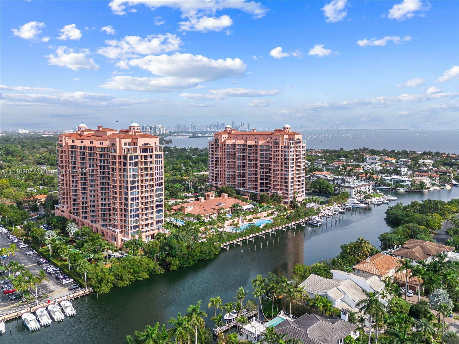 Coral Gables only Luxury Waterfront Tower Living in a Resort style building. Partial canal water and marina views. Lots of light, high ceilings, oversized terraces to enjoy that outside living. Enjoy your private Foyer. Fantastic large kitchen with second dining area and separate laundry and storage rooms complete the kitchen area. Wood and Marble floors. Wood blinds and lots of designer touches. Nice open floor plans. Luxury finishes. Enjoy the private clubhouse which features a restaurant, room service, spa, salon, fitness center ,lighted Tennis courts, lap pool, marina, dog walking path and Great location in South Gables and Coconut Grove. Walk to the park down the street.